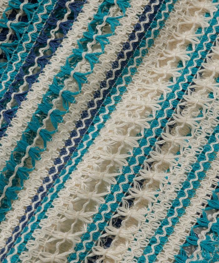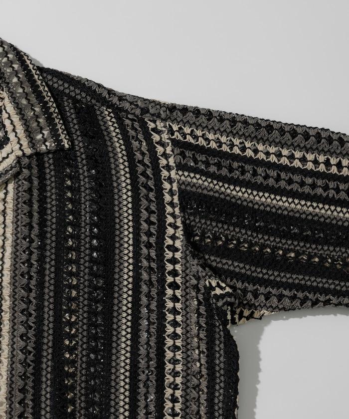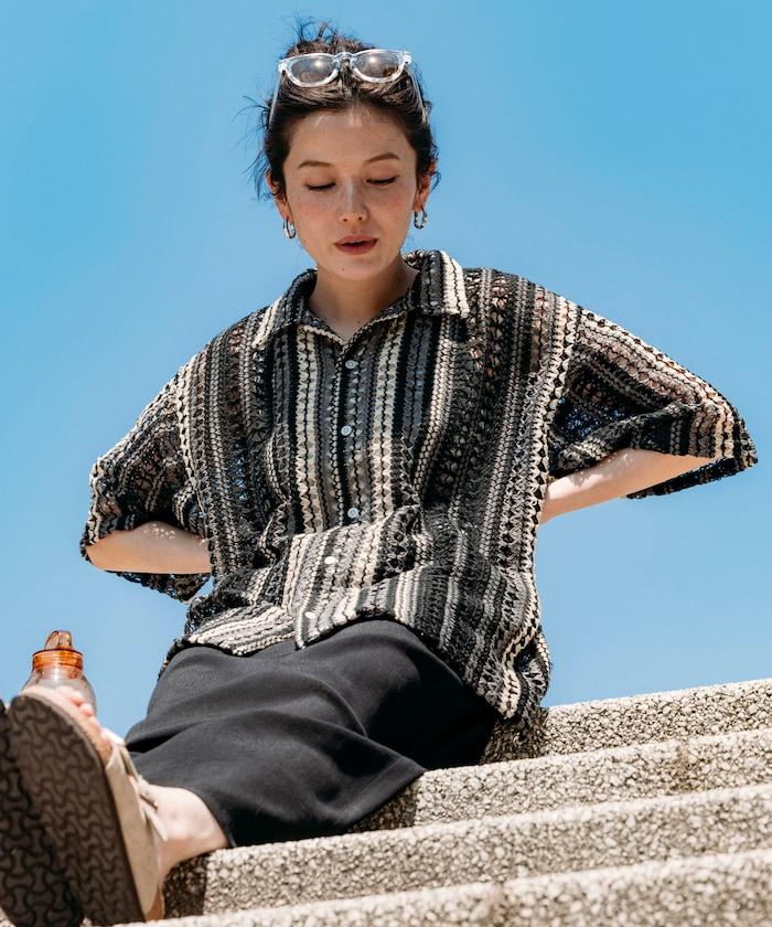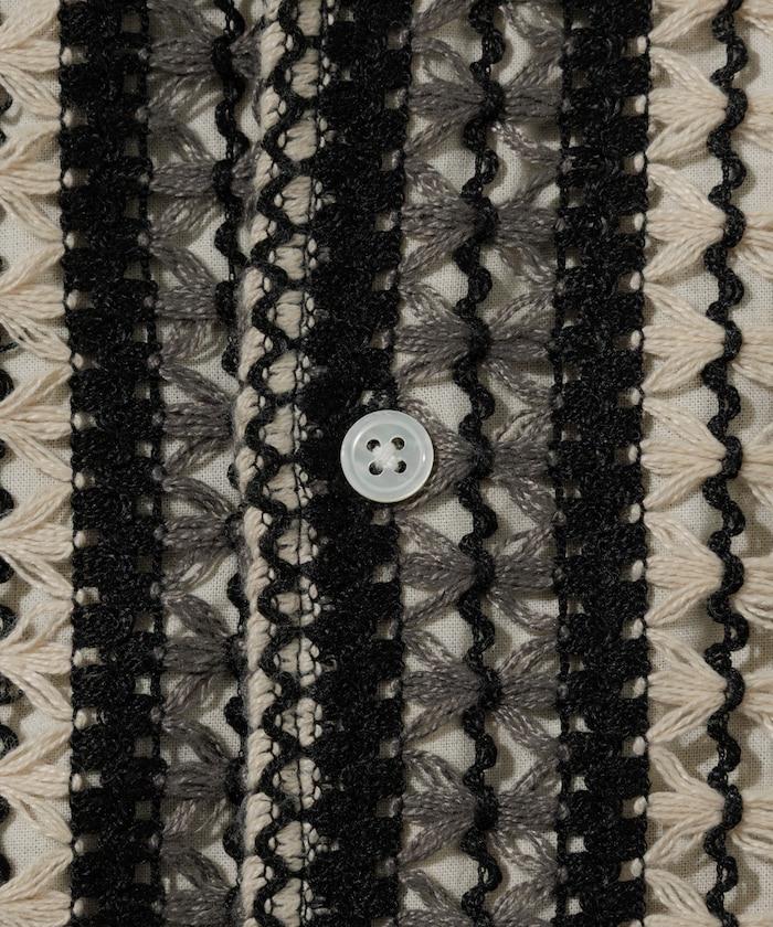 1006248901524: 印度製造寬鬆版型全蕾絲多條紋開領襯衫短袖