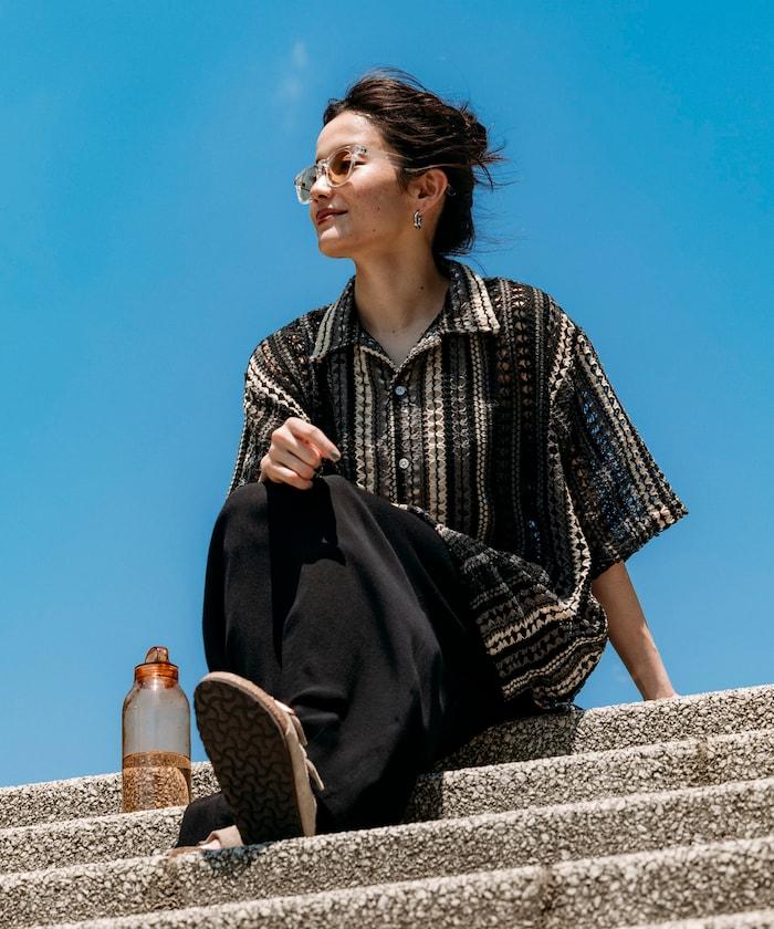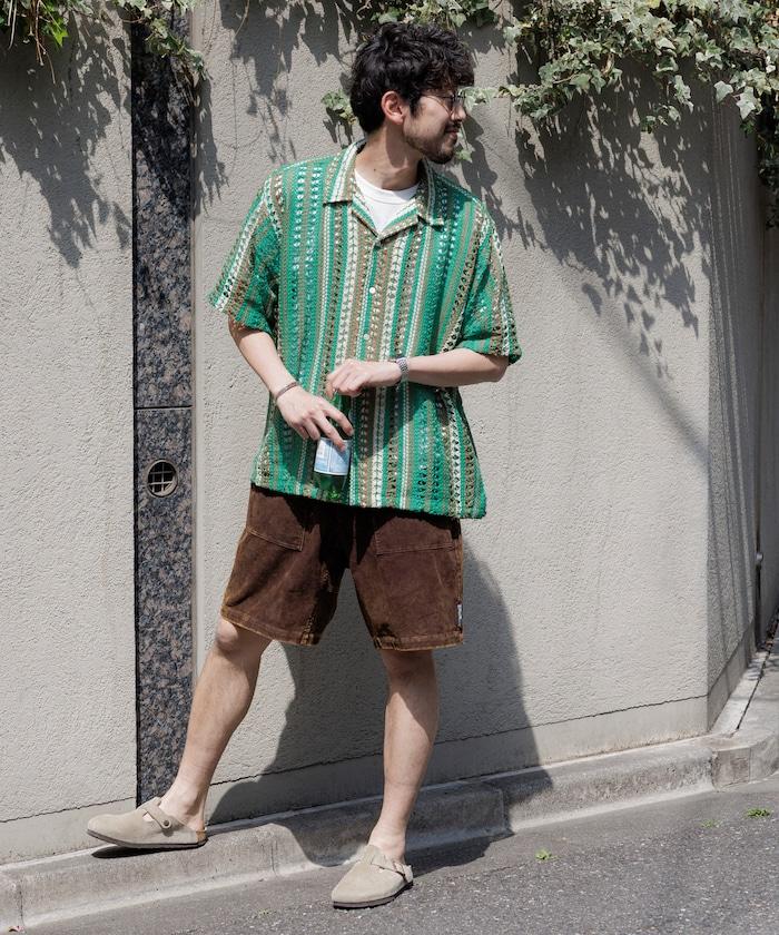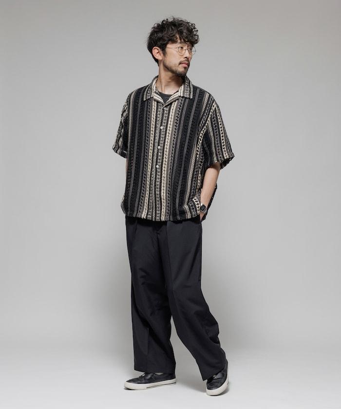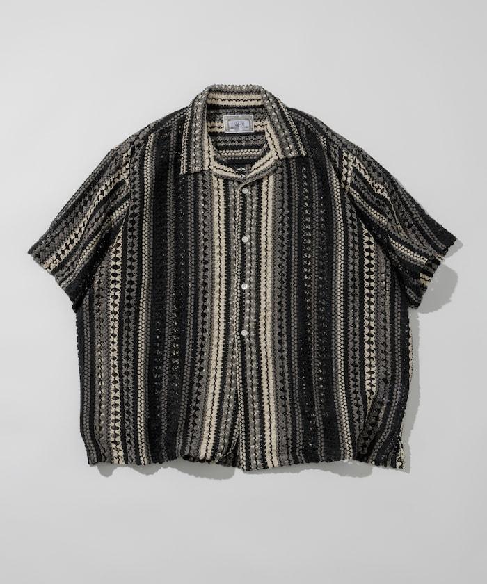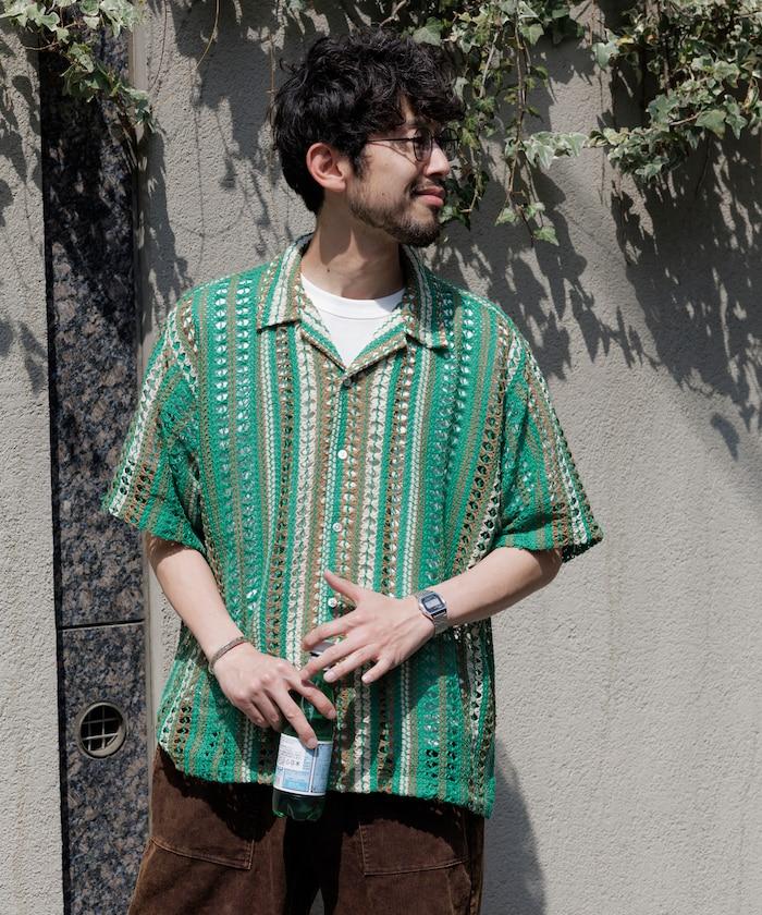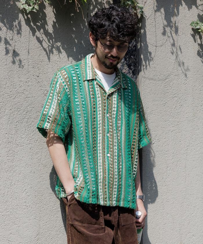 印度制 寬鬆版型 綜合圖案蕾絲 多色條紋 開領襯衫 短袖