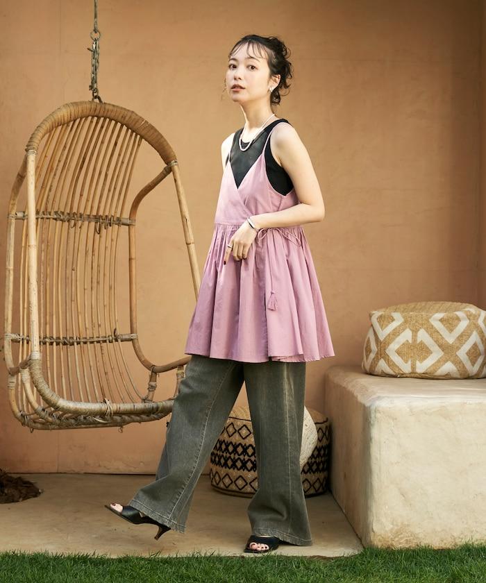 吊帶外衣,搭配休閒長褲款式更顯華麗。
