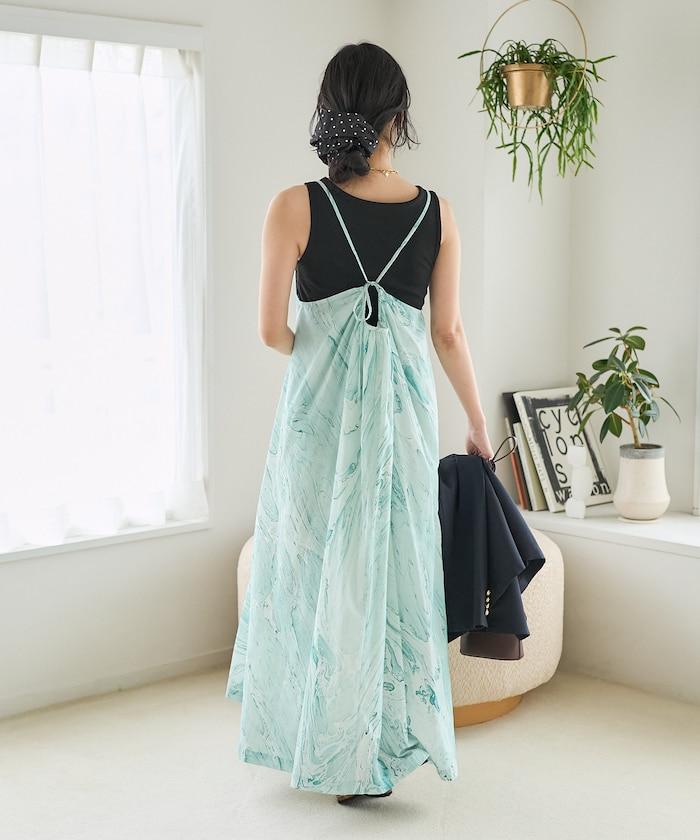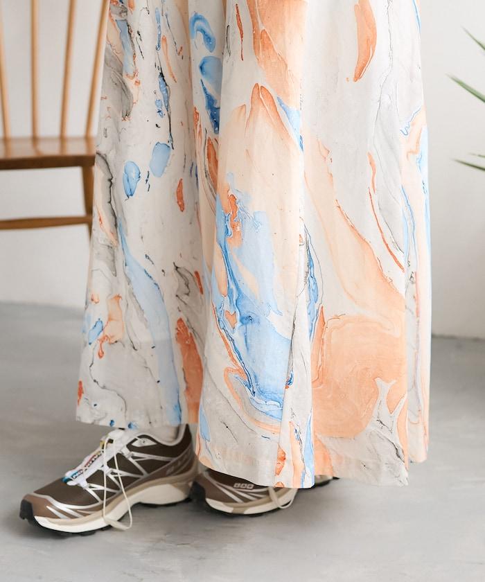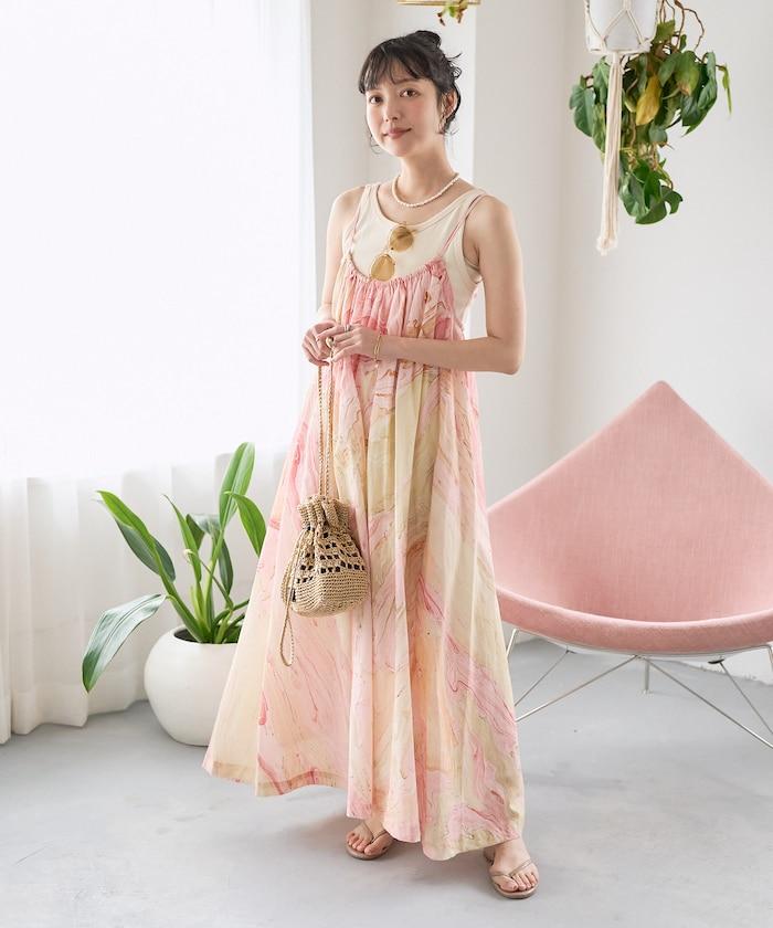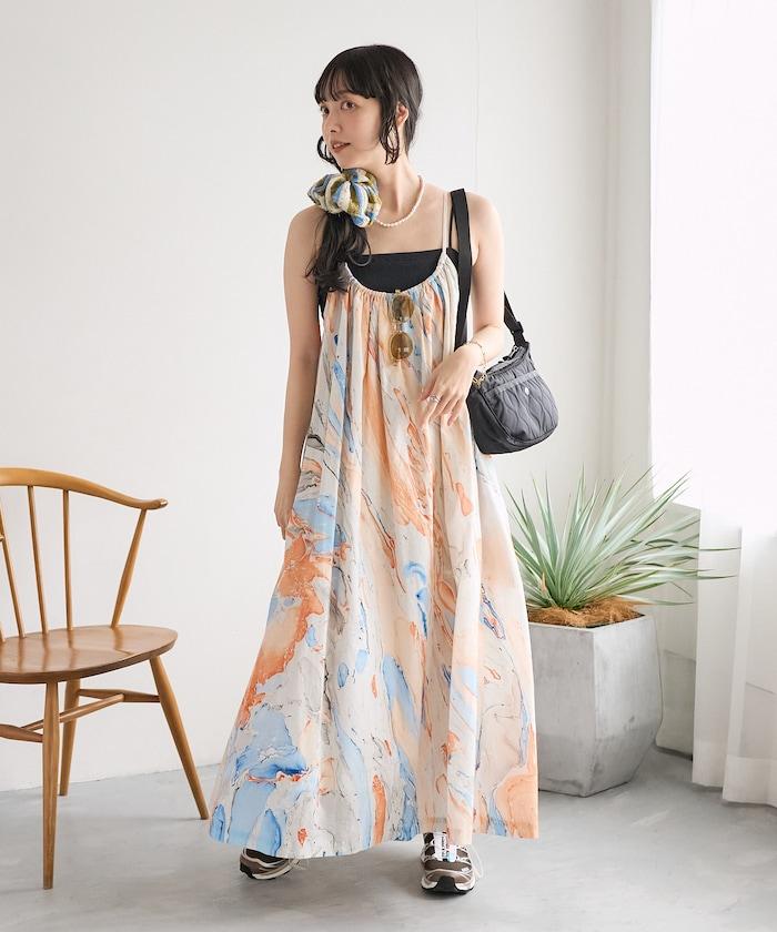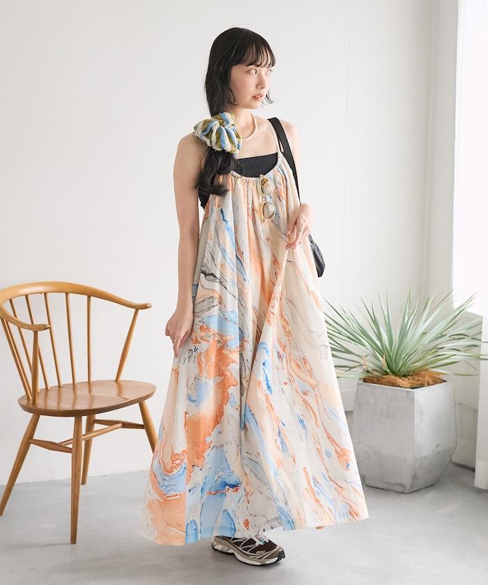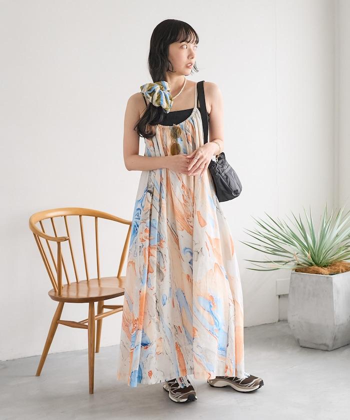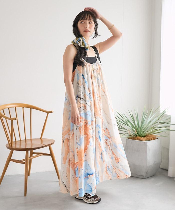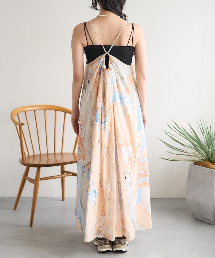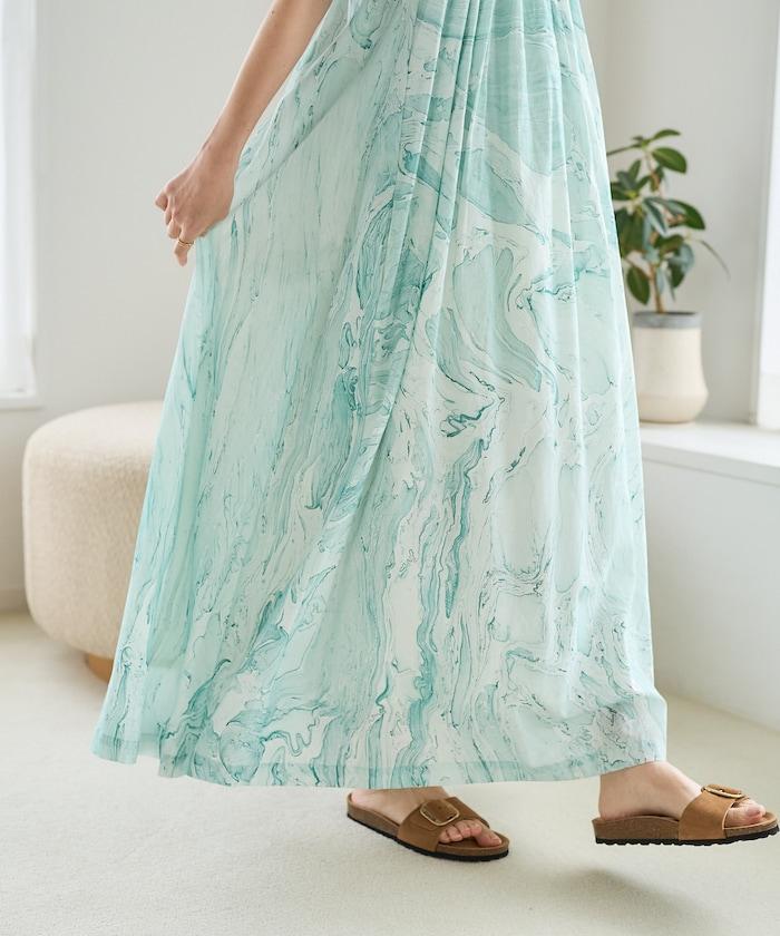 這款印度製造的吊帶裙印有醒目的大理石圖案,充滿夏日氣息。