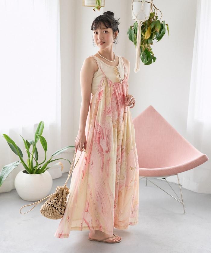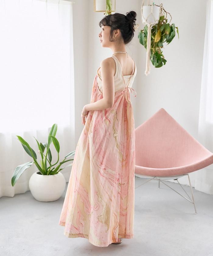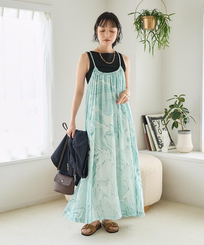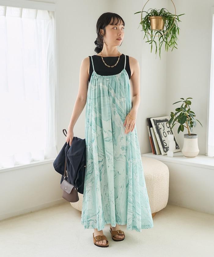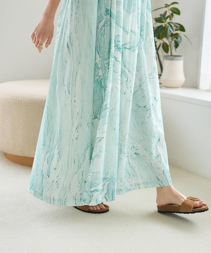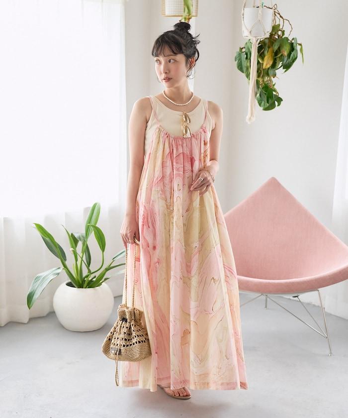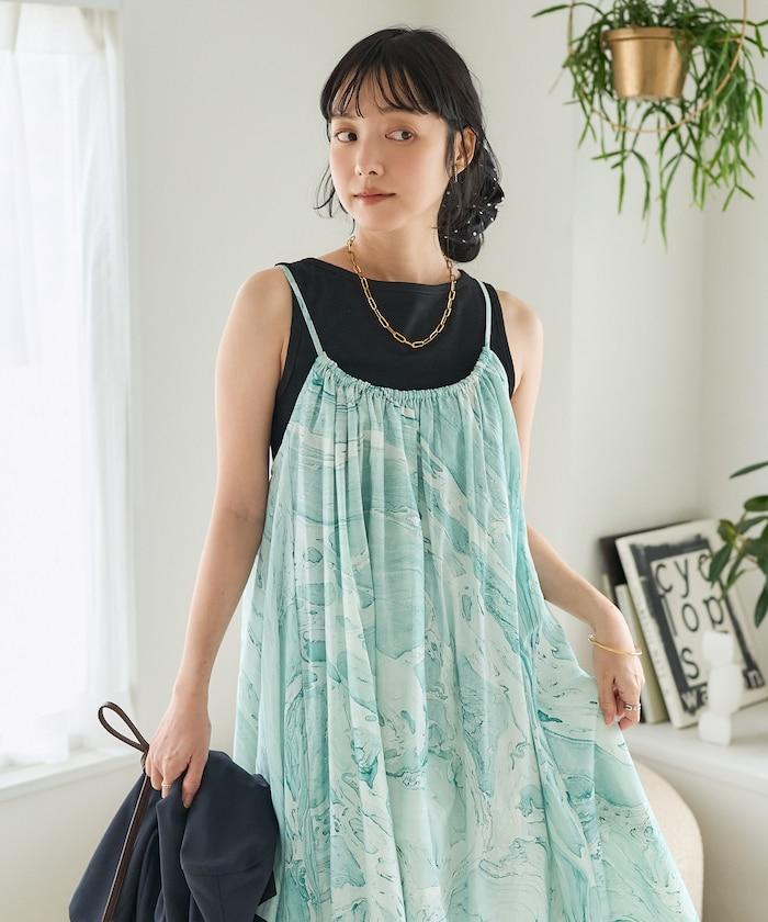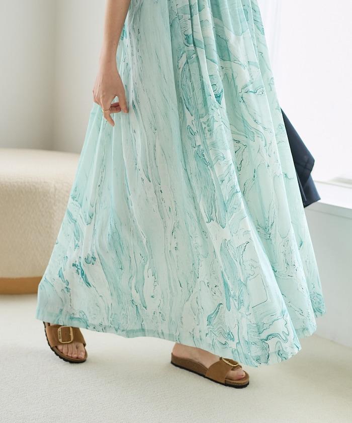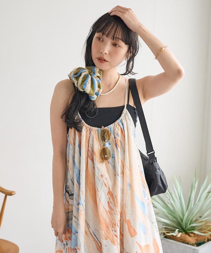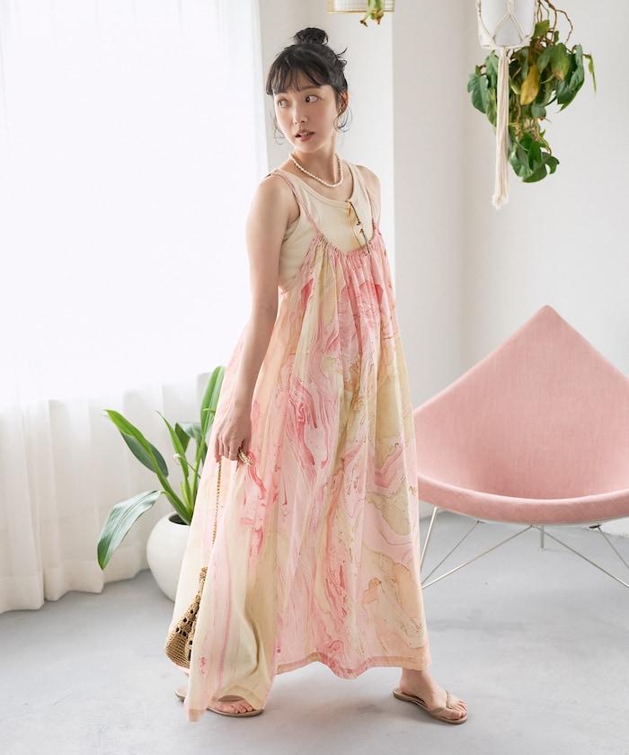 這款印度製造的吊帶裙印有醒目的大理石圖案,充滿夏日氣息。