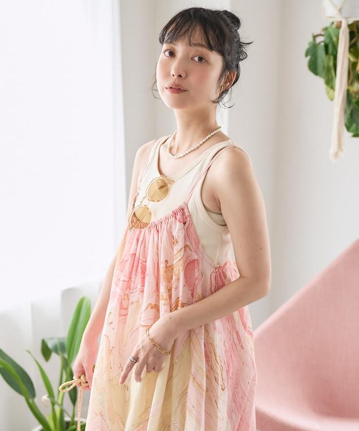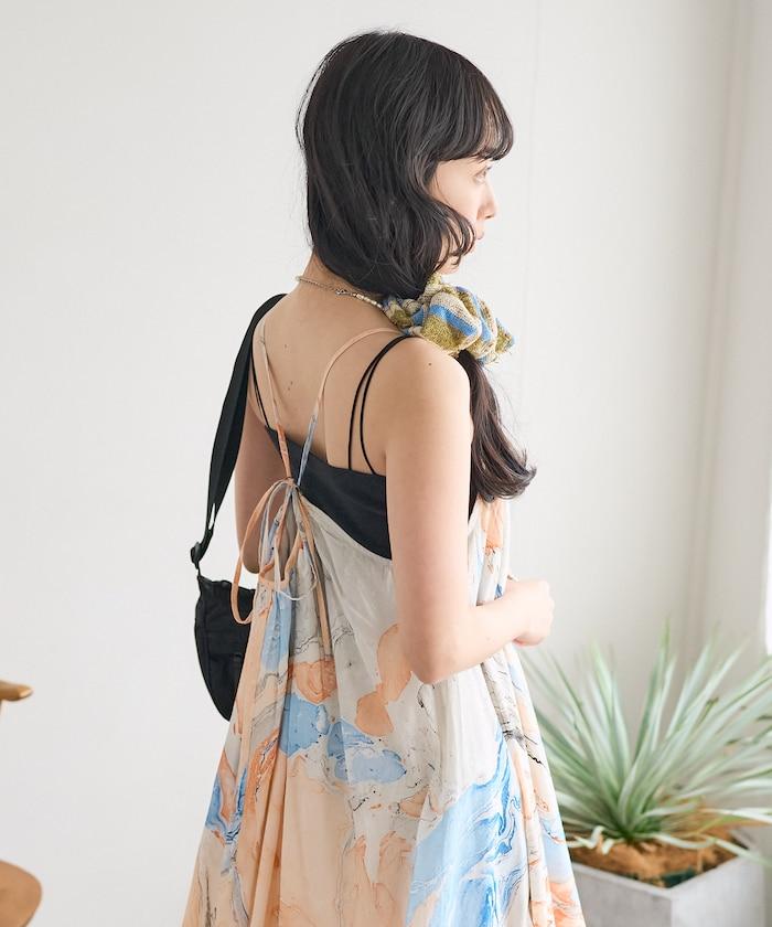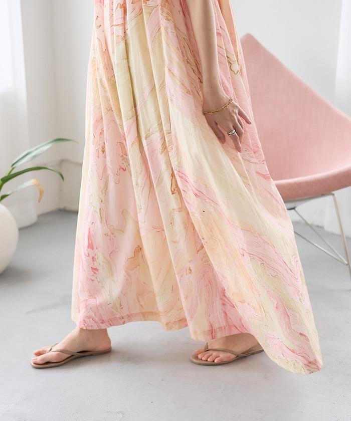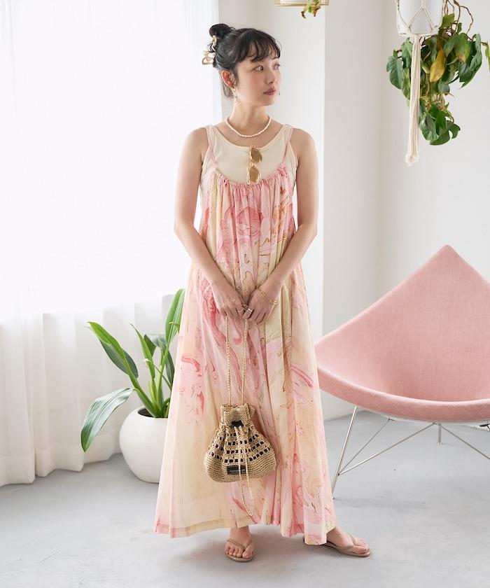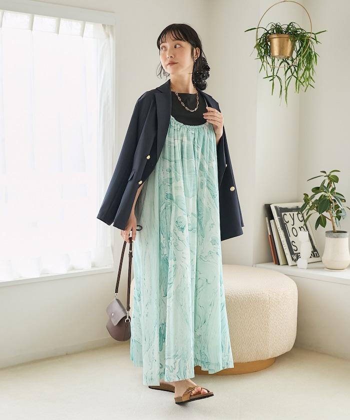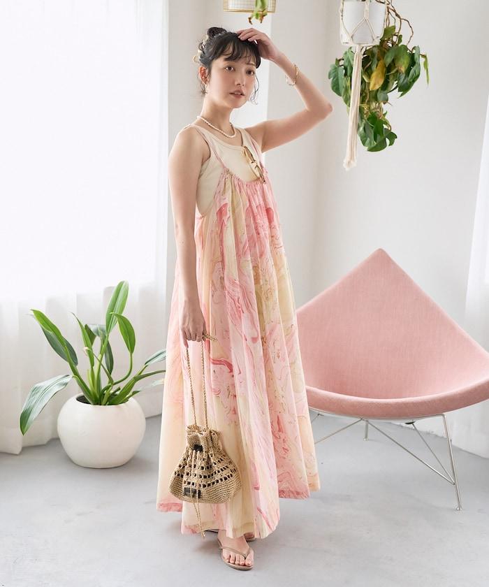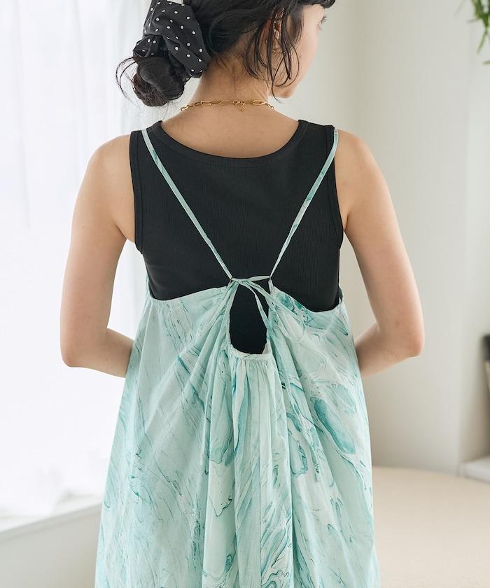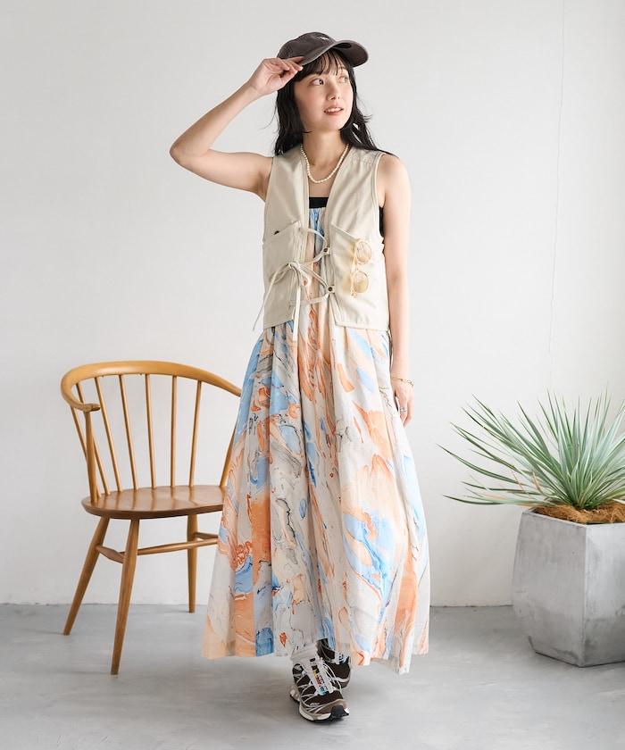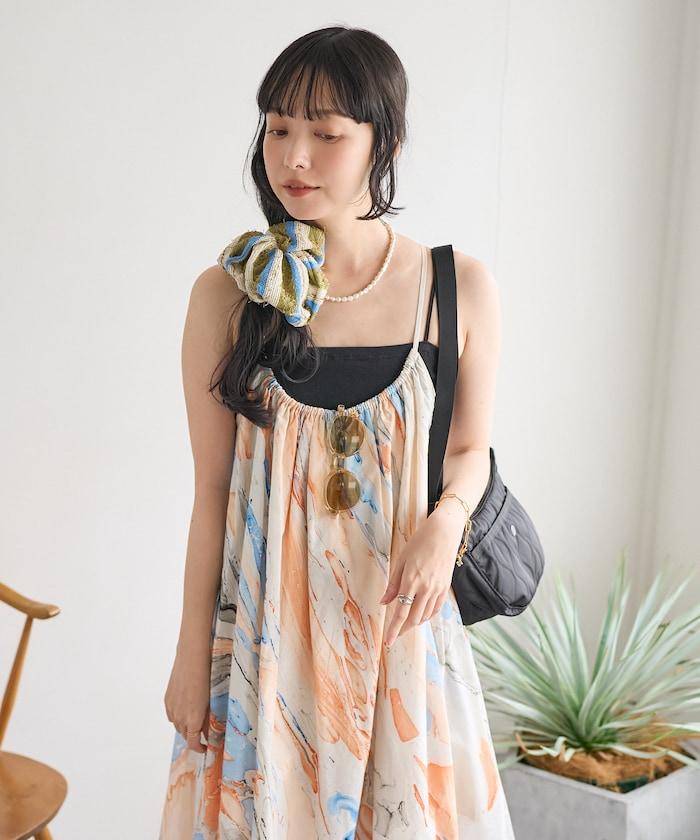 這款印度製造的吊帶裙印有醒目的大理石圖案,充滿夏日氣息。