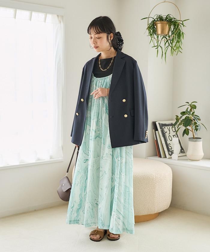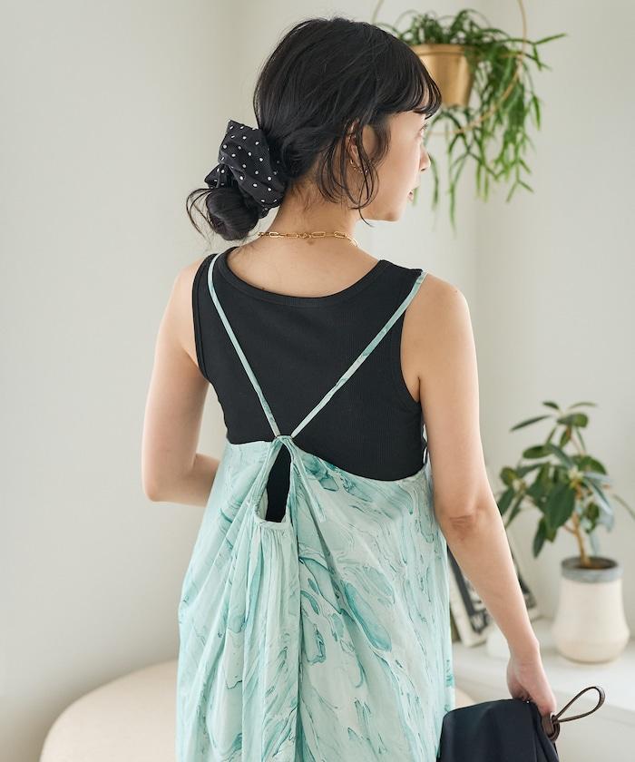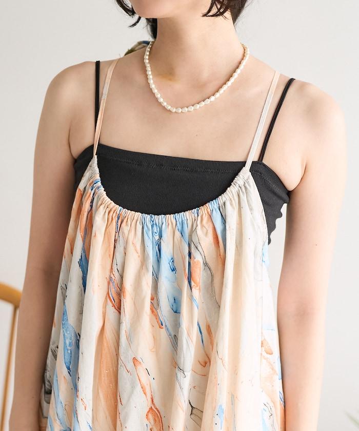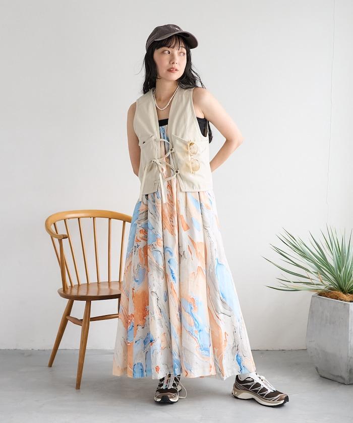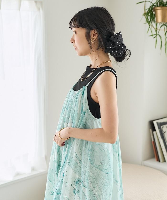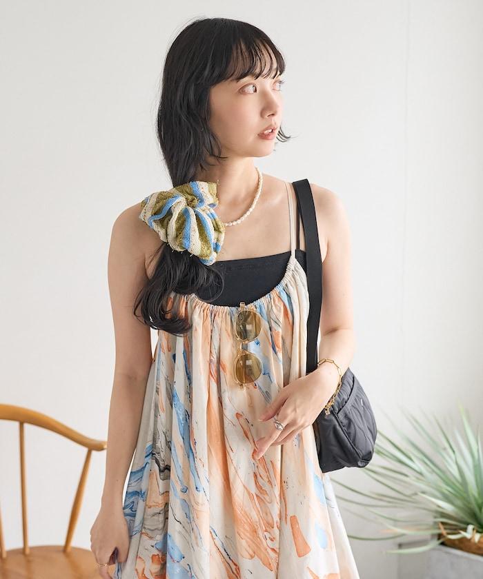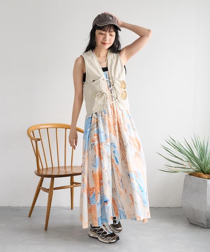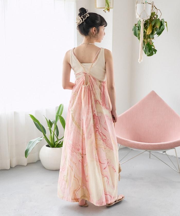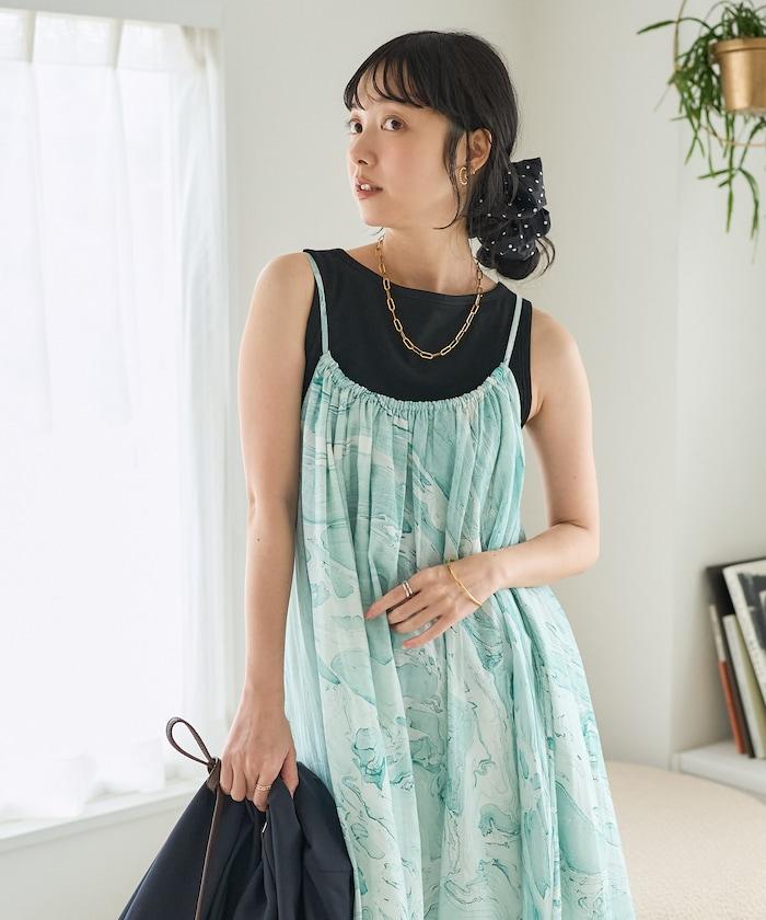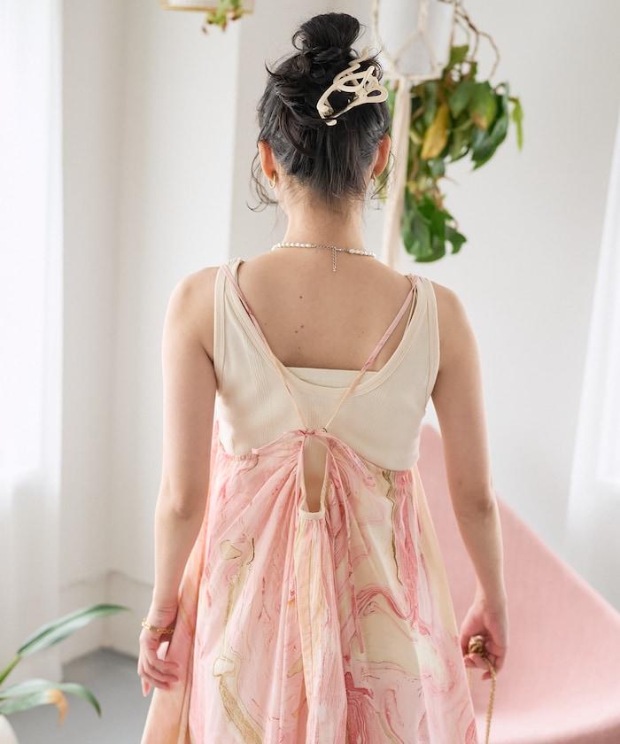 這款印度製造的吊帶裙印有醒目的大理石圖案,充滿夏日氣息。
