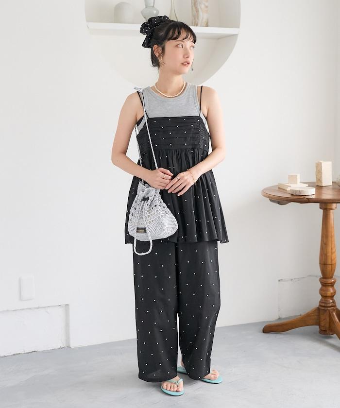 可與同款吊帶衫 [India Lame Dot Embroidery Back Open Camisole/1106248900672]搭配穿戴。