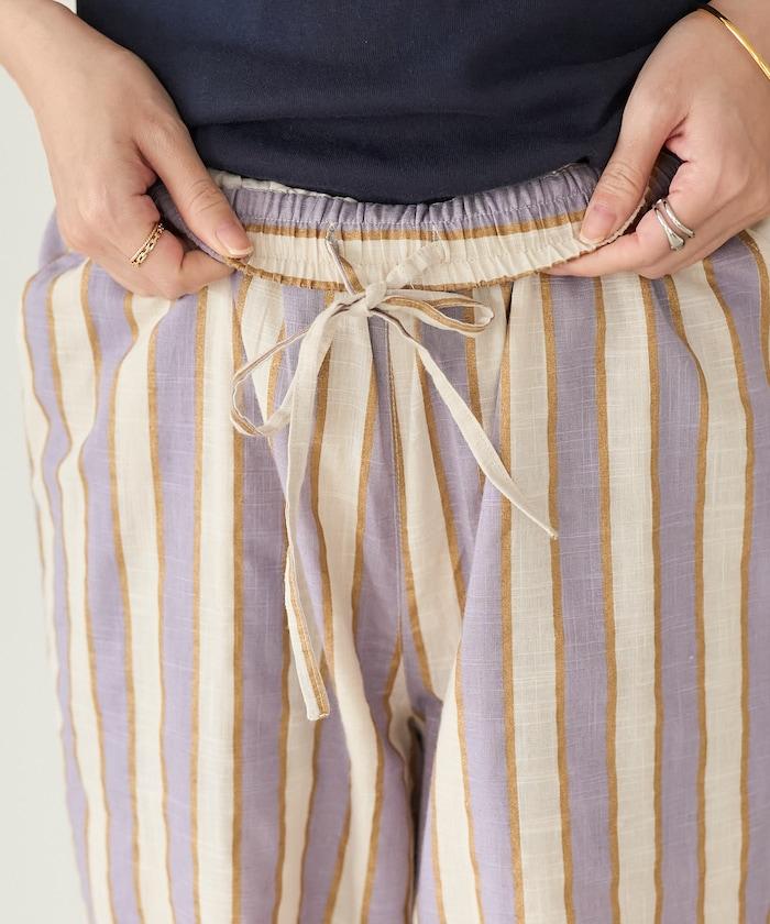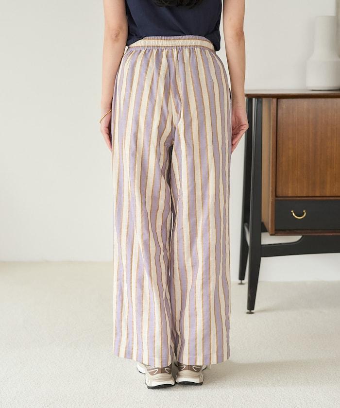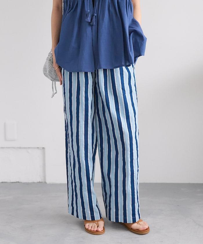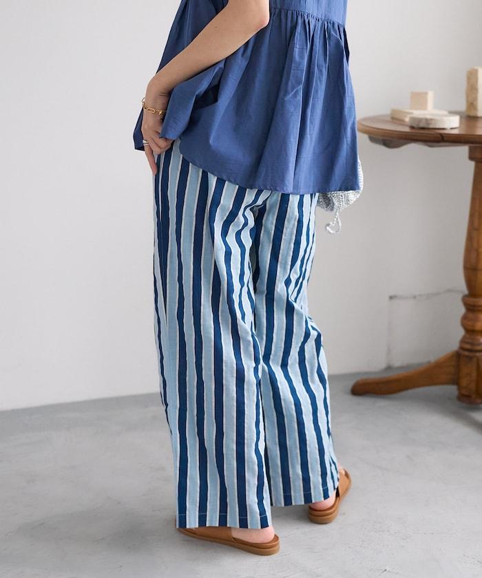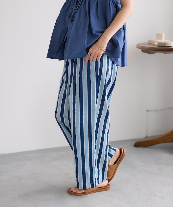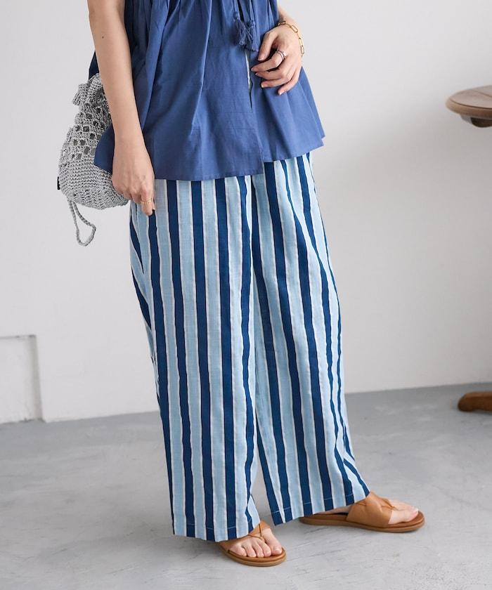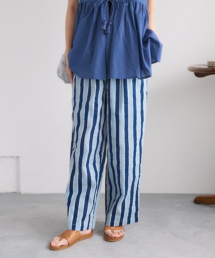 印度製造的簡易長褲,印有醒目的清新夏日條紋圖案。