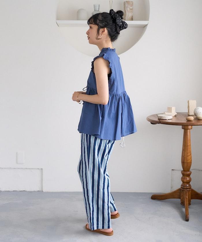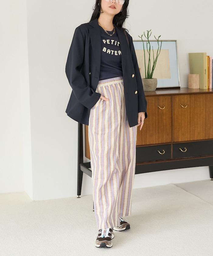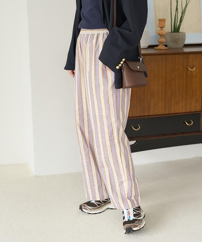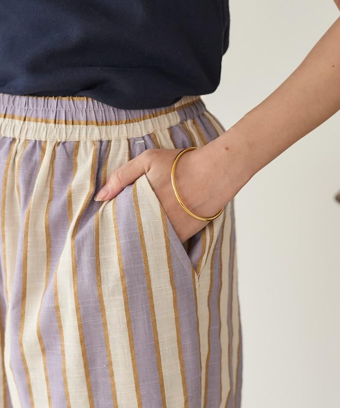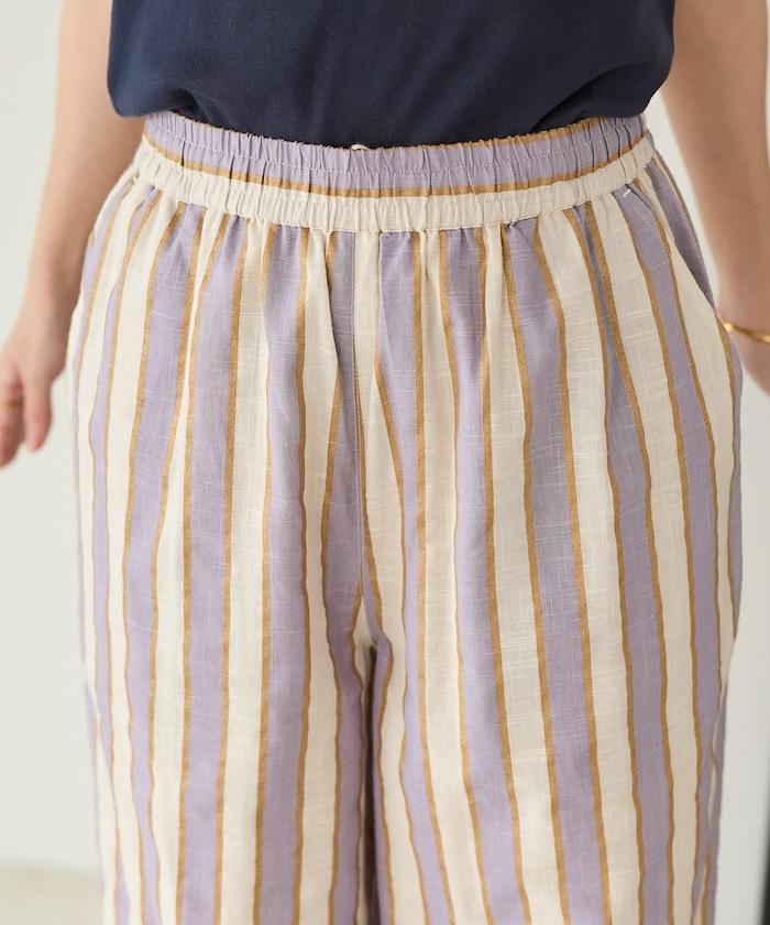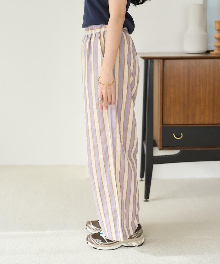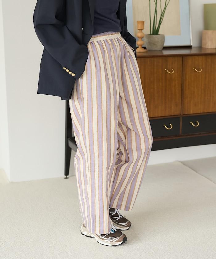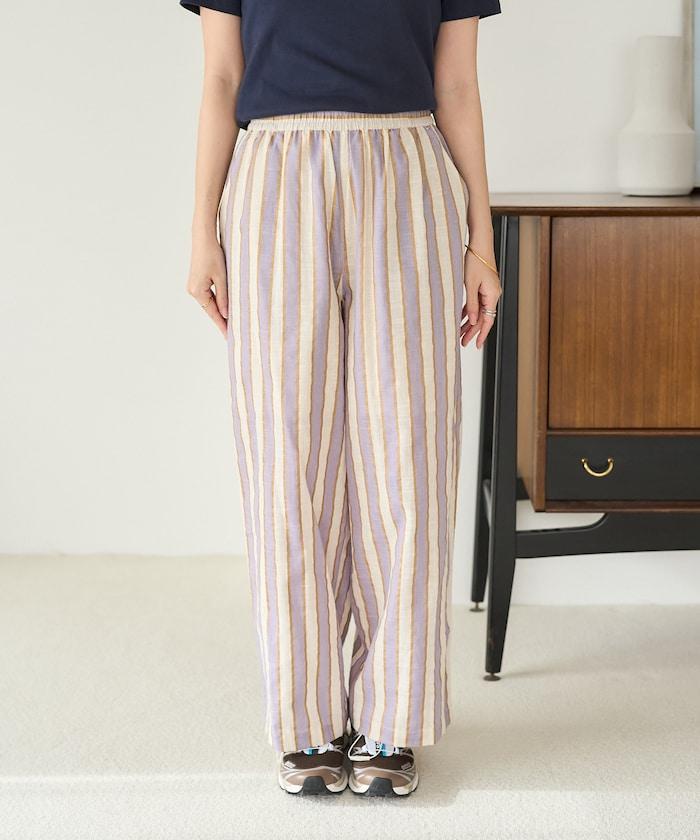 印度製造的簡易長褲,印有醒目的清新夏日條紋圖案。