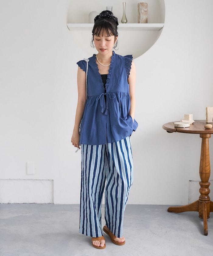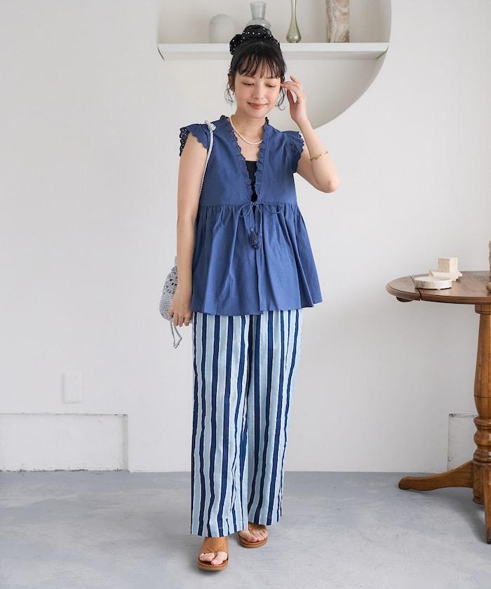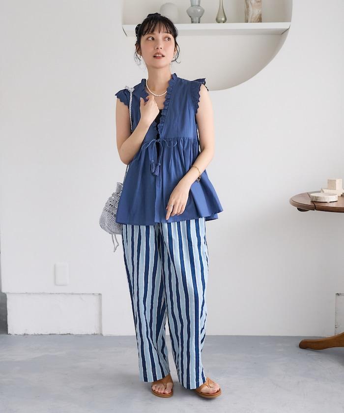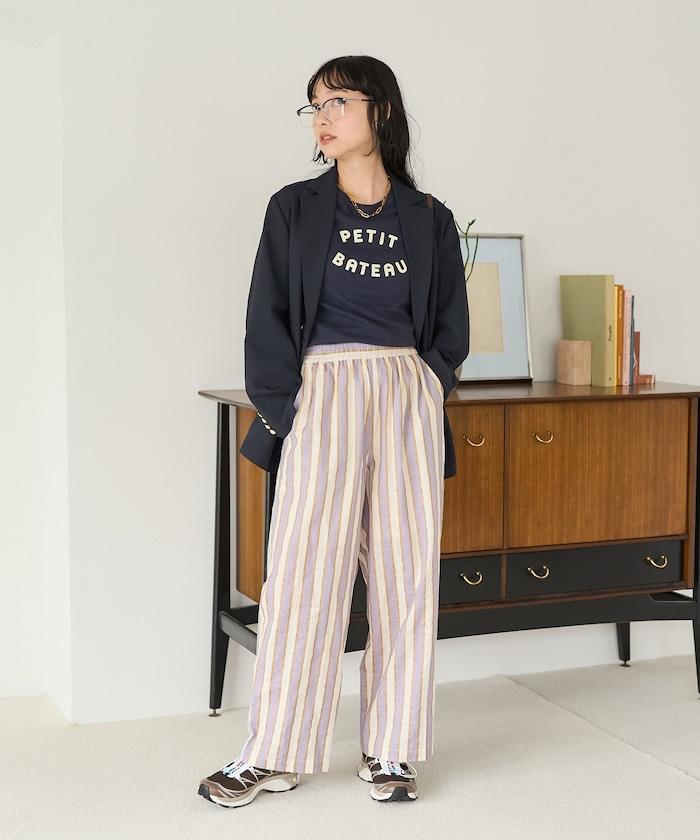 搭配純色 T 恤或背心,以長褲為中心,打造簡單的夏日搭配。
