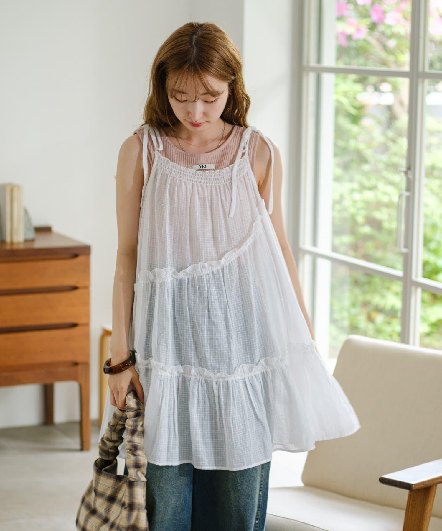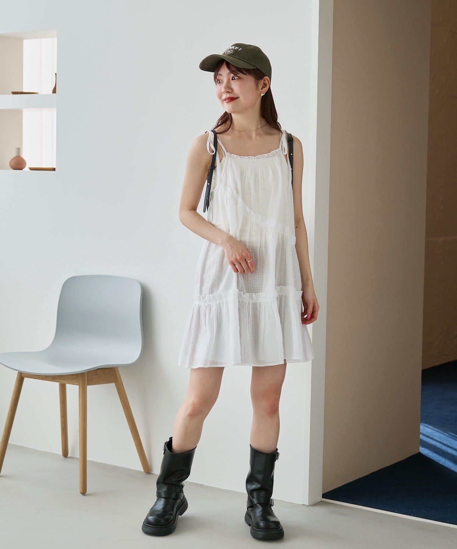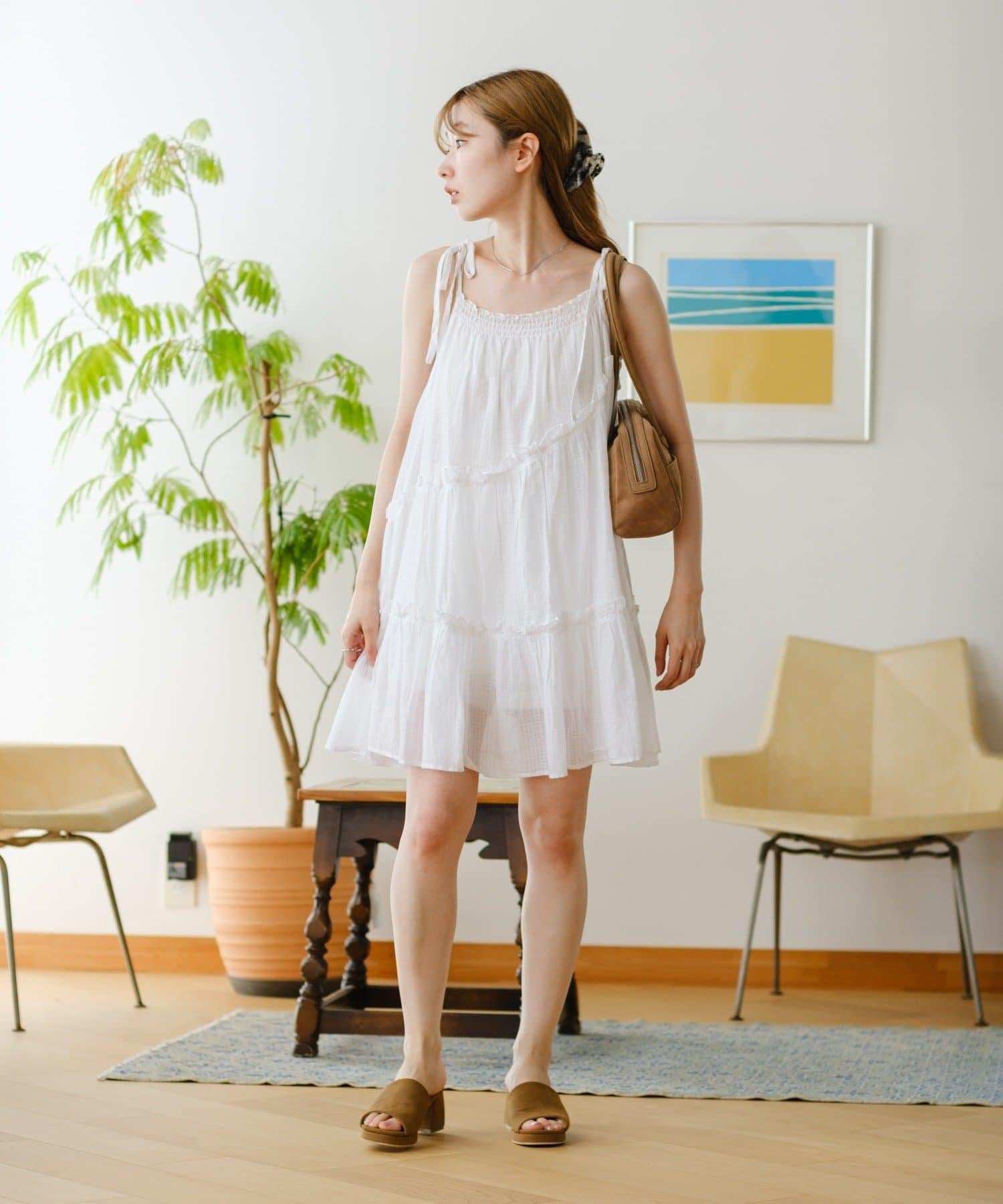 肩帶可以用絲帶繫住,尺寸可以調整。