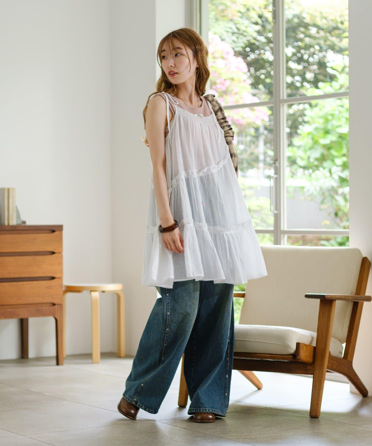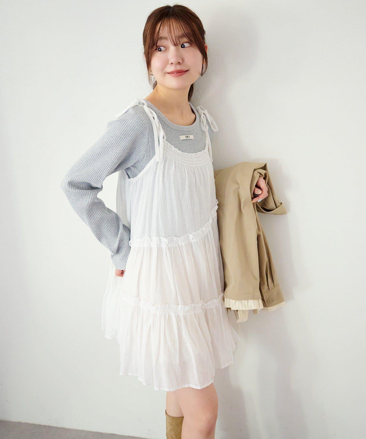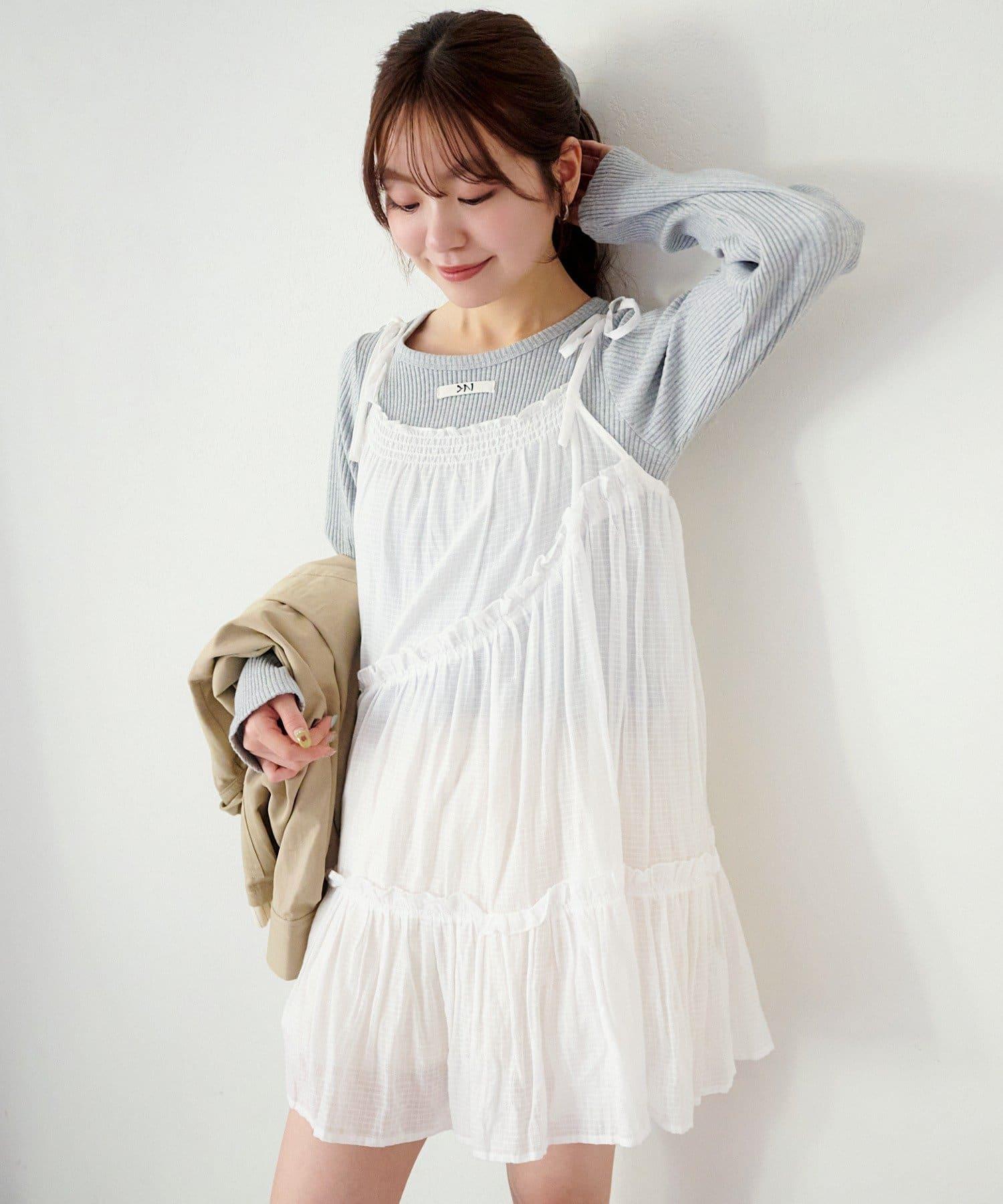肩帶可以用絲帶繫住,尺寸可以調整。