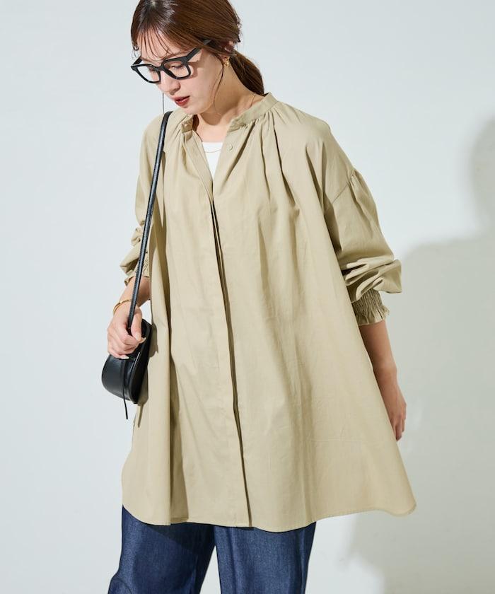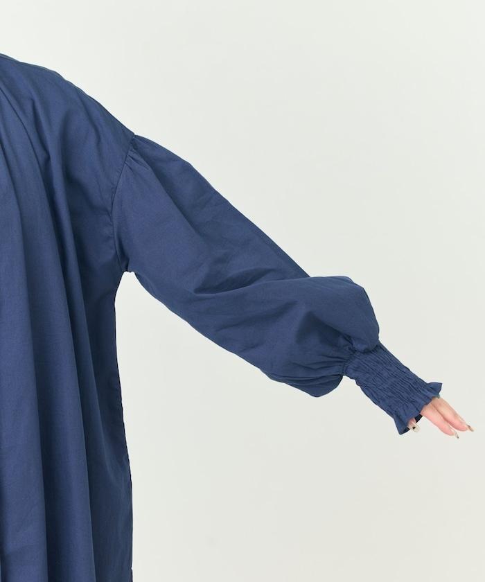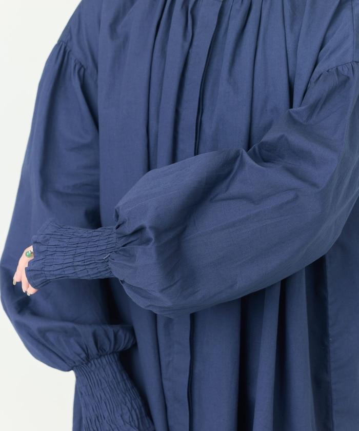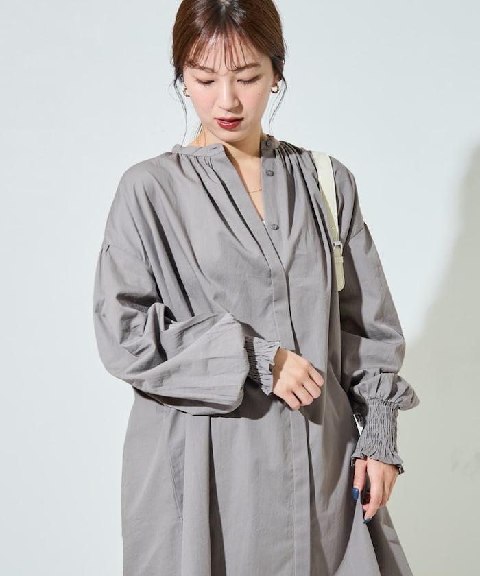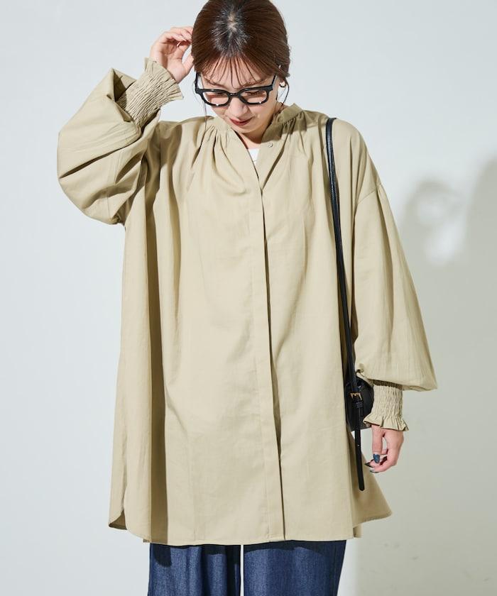 衣領周圍的褶皺設計營造出蓬鬆、立體的輪廓。