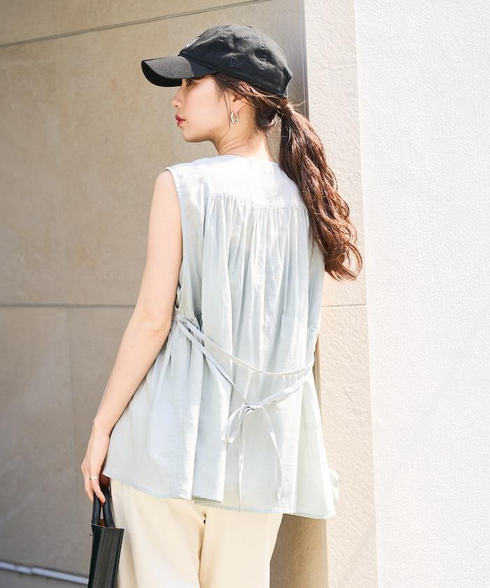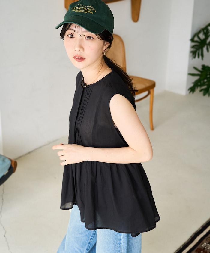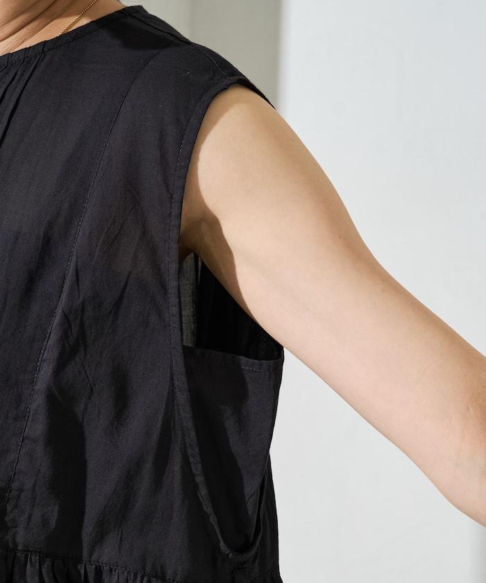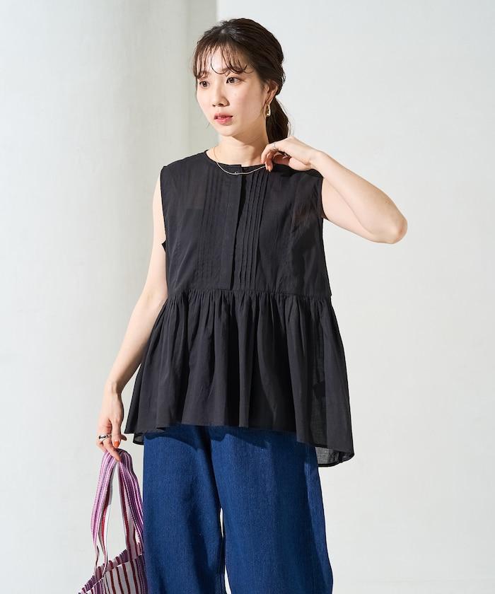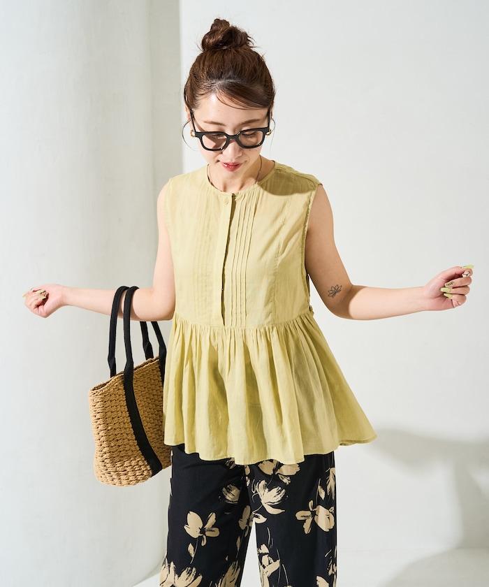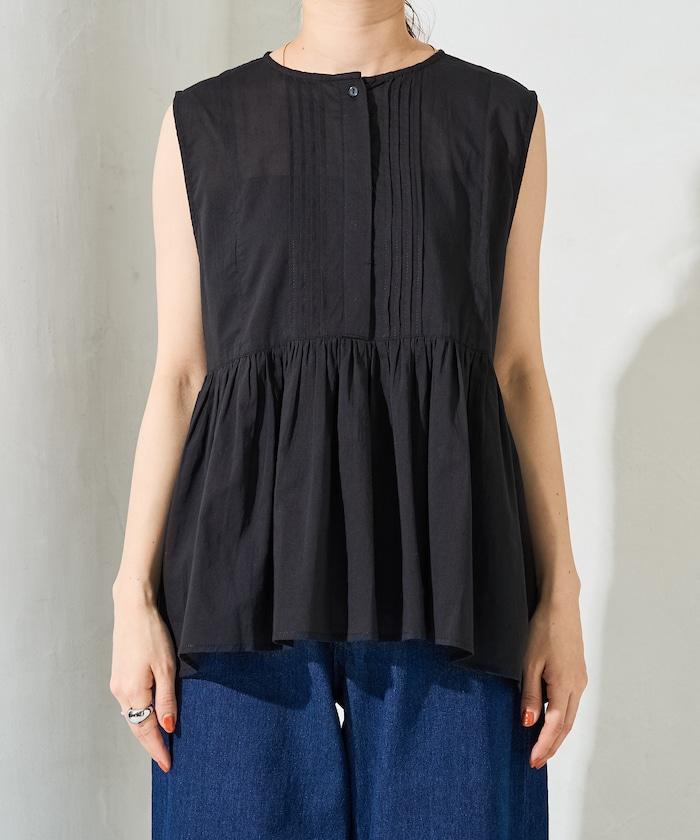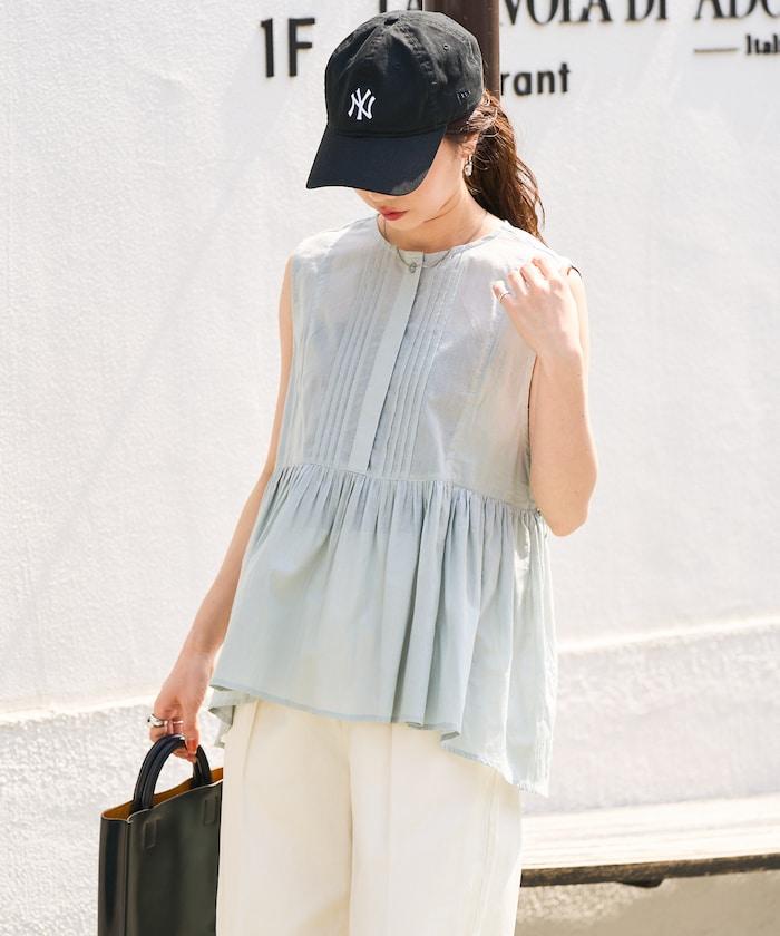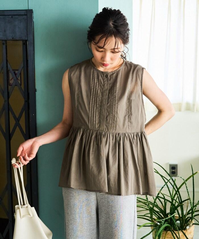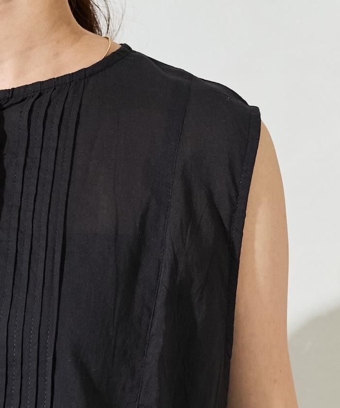 這款襯衫採用細褶襉設計,無袖設計讓人看起來乾淨利落。