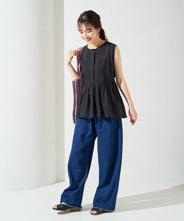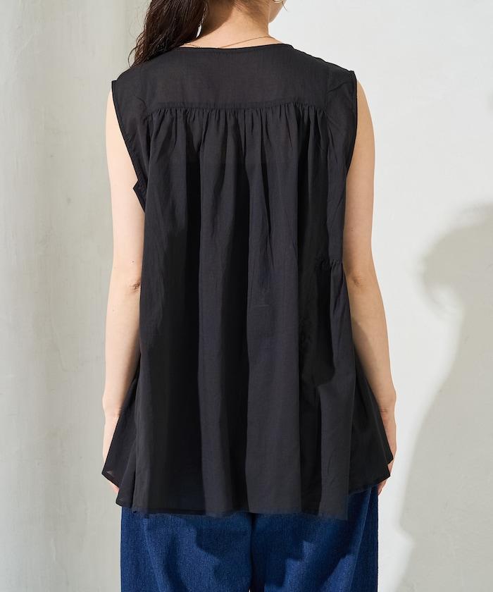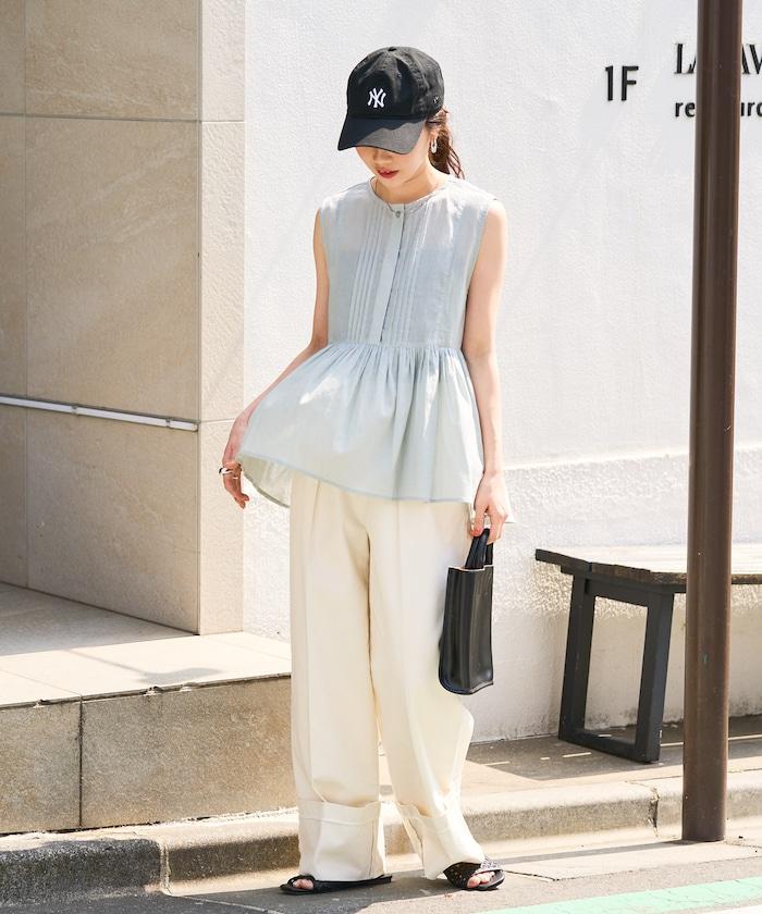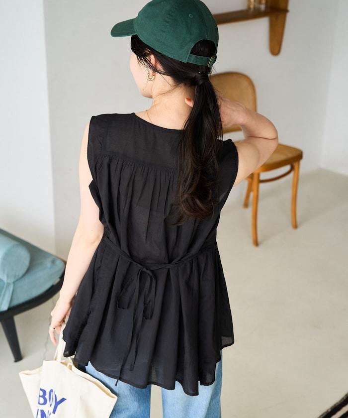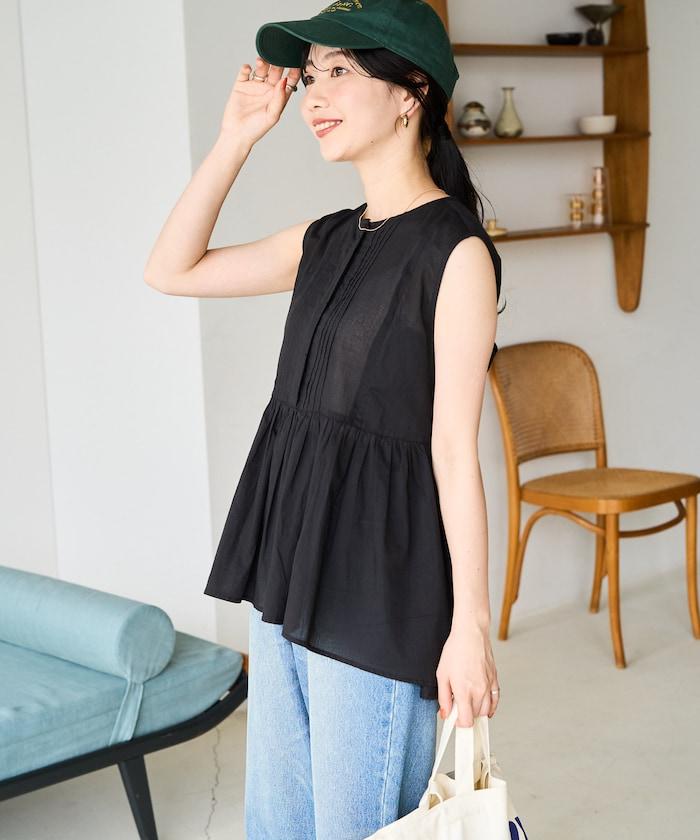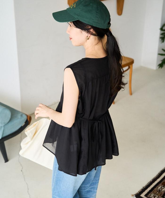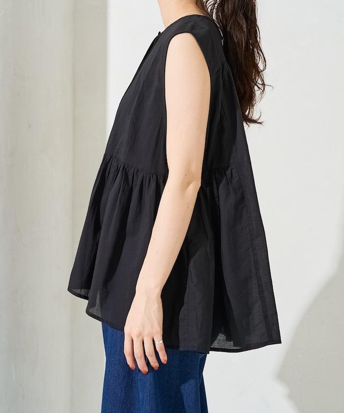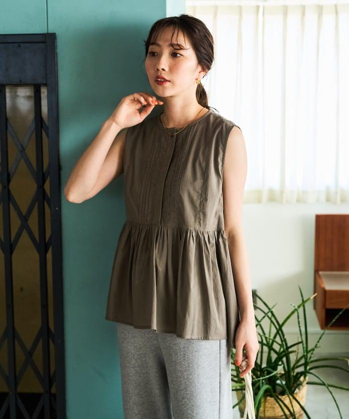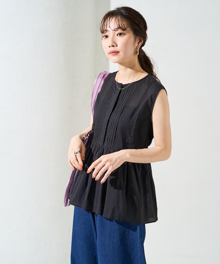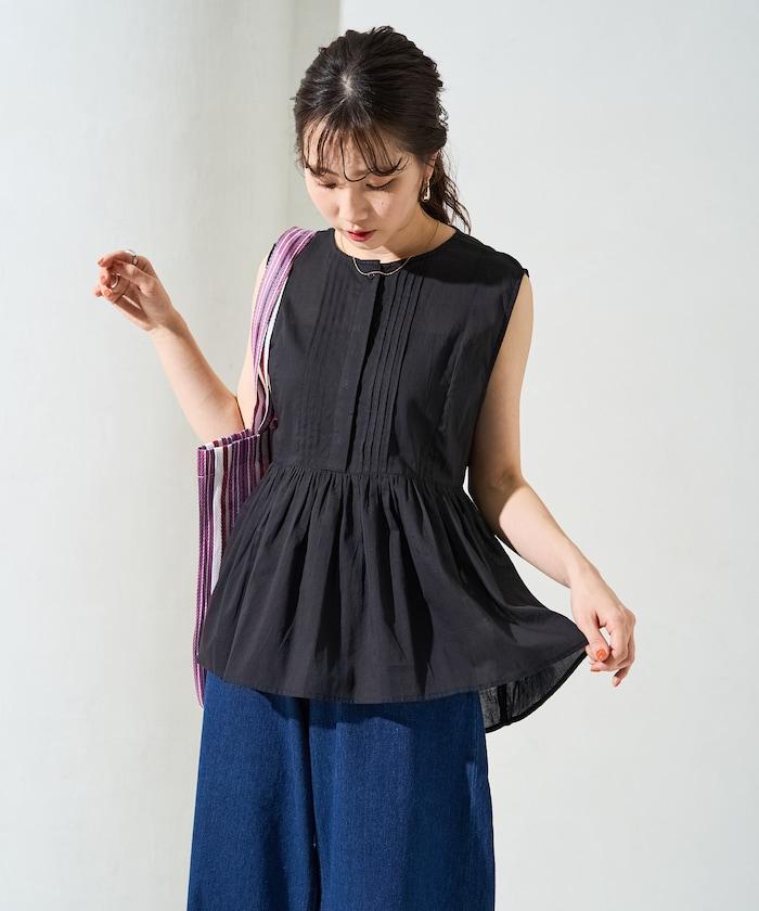 這款襯衫採用細褶襉設計,無袖設計讓人看起來乾淨利落。