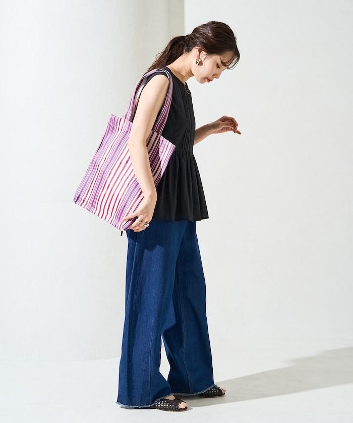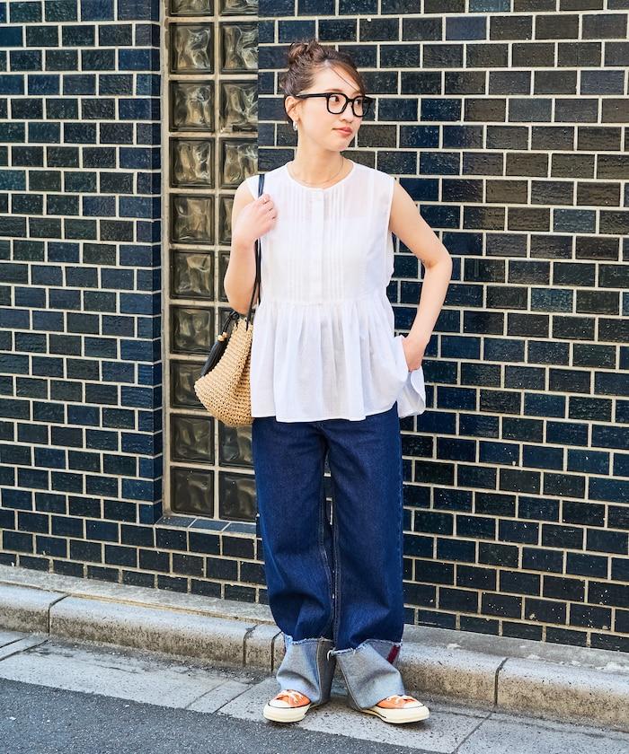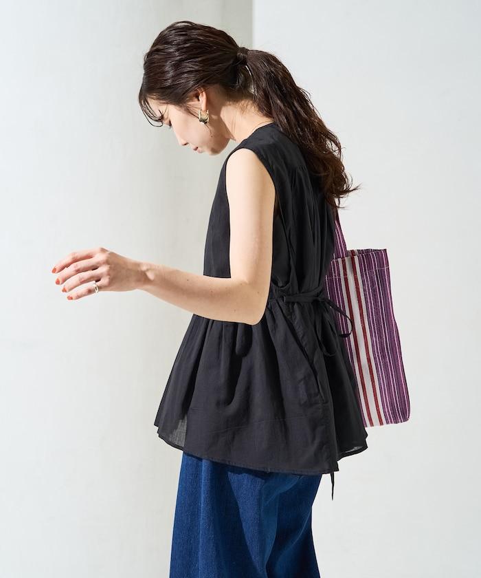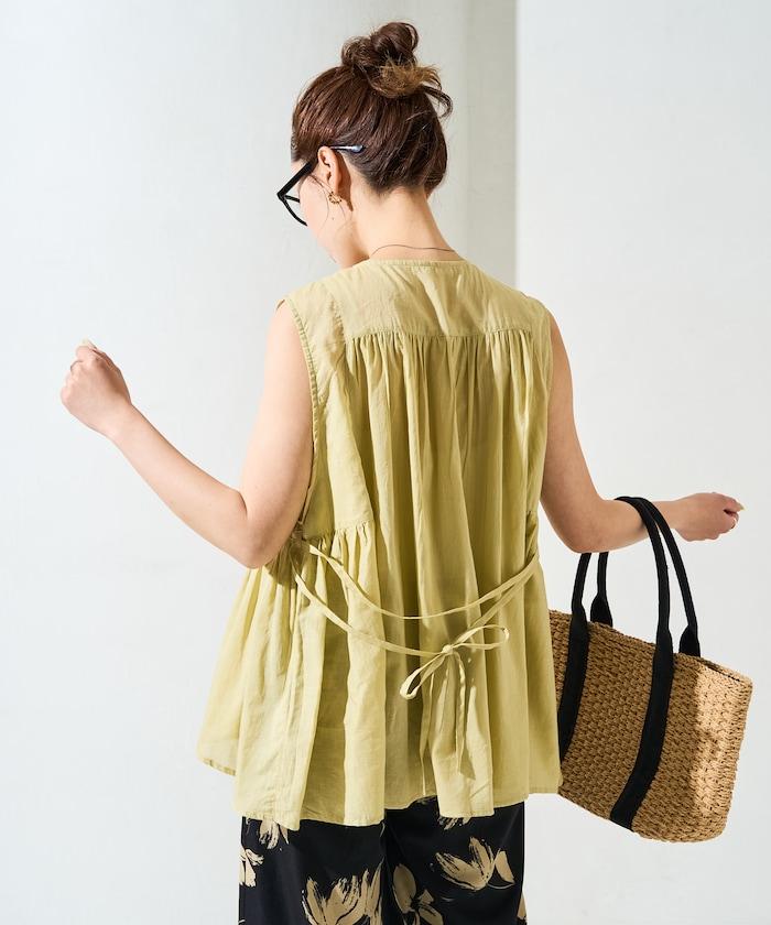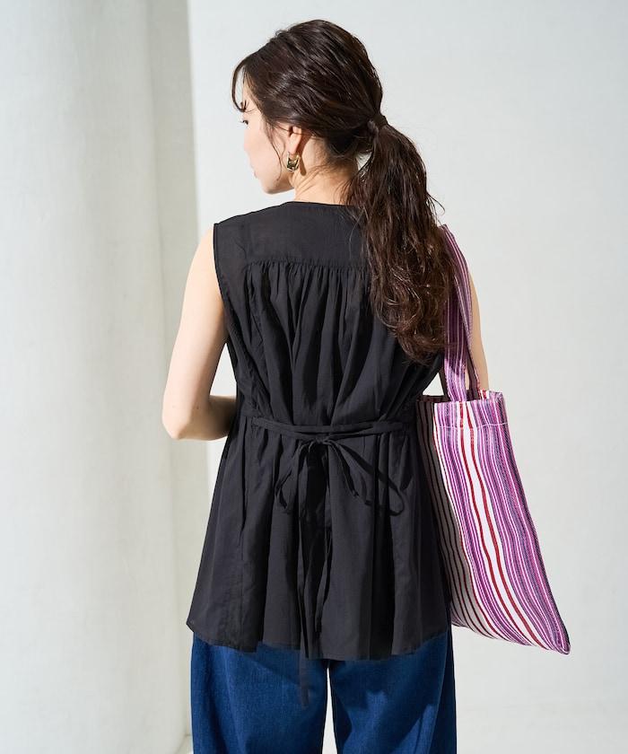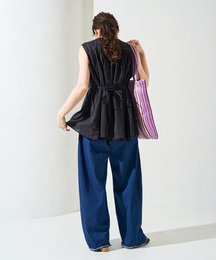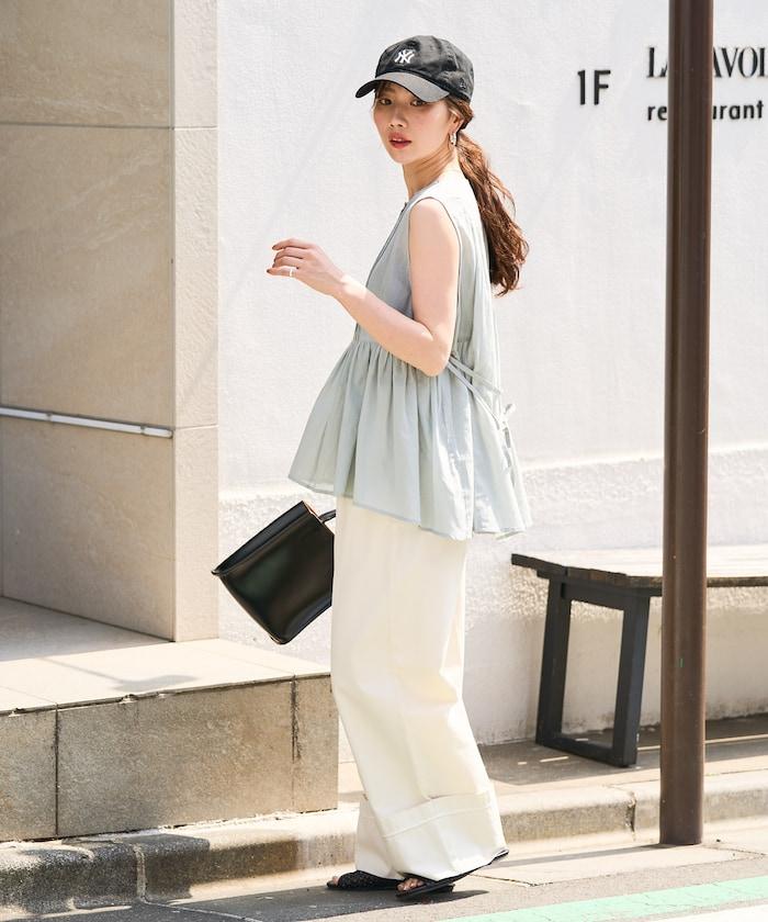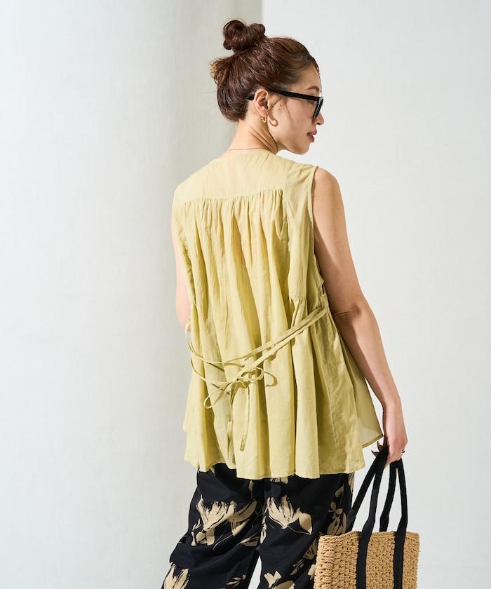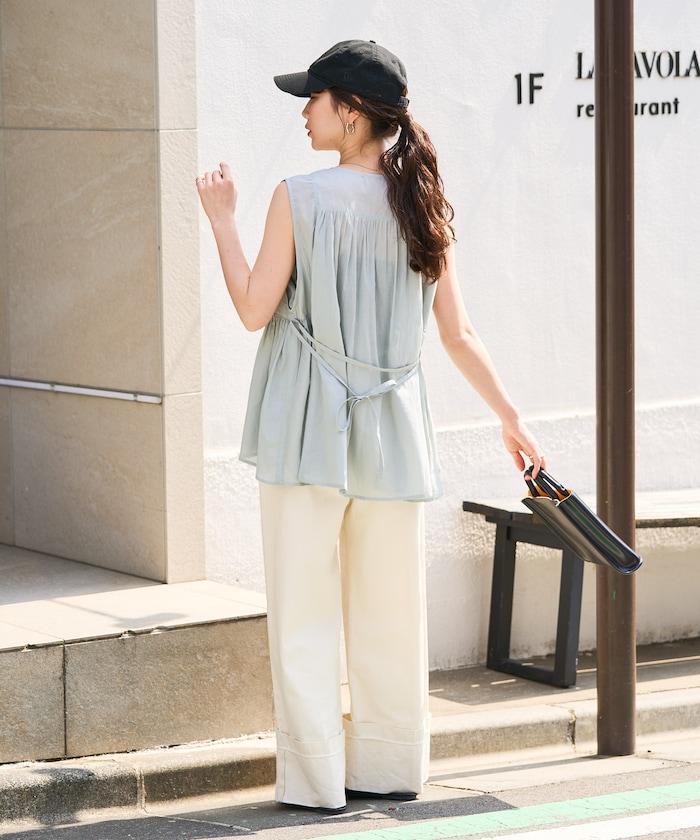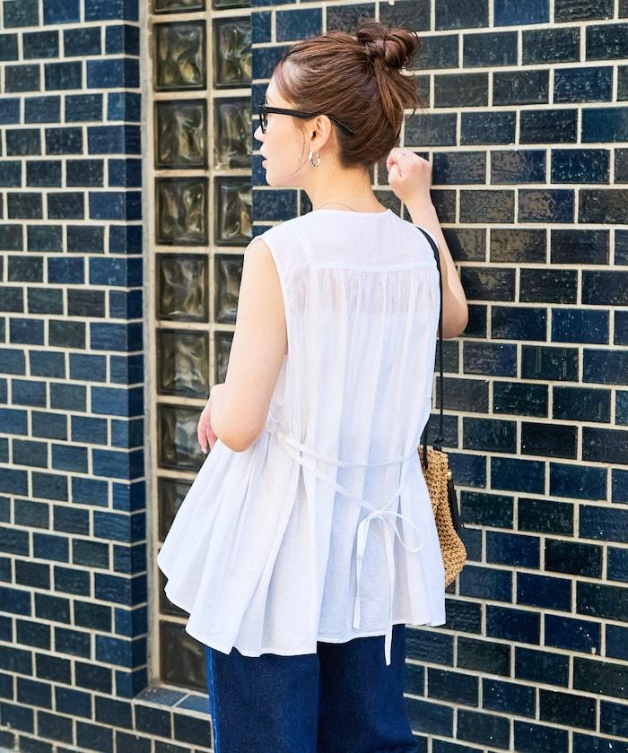 在背後繫上絲帶,盡顯愜意!建議搭配直筒牛仔褲或長褲等類似男裝的單品來平衡造型。