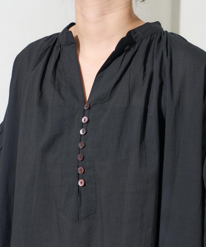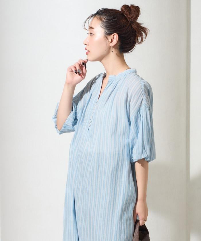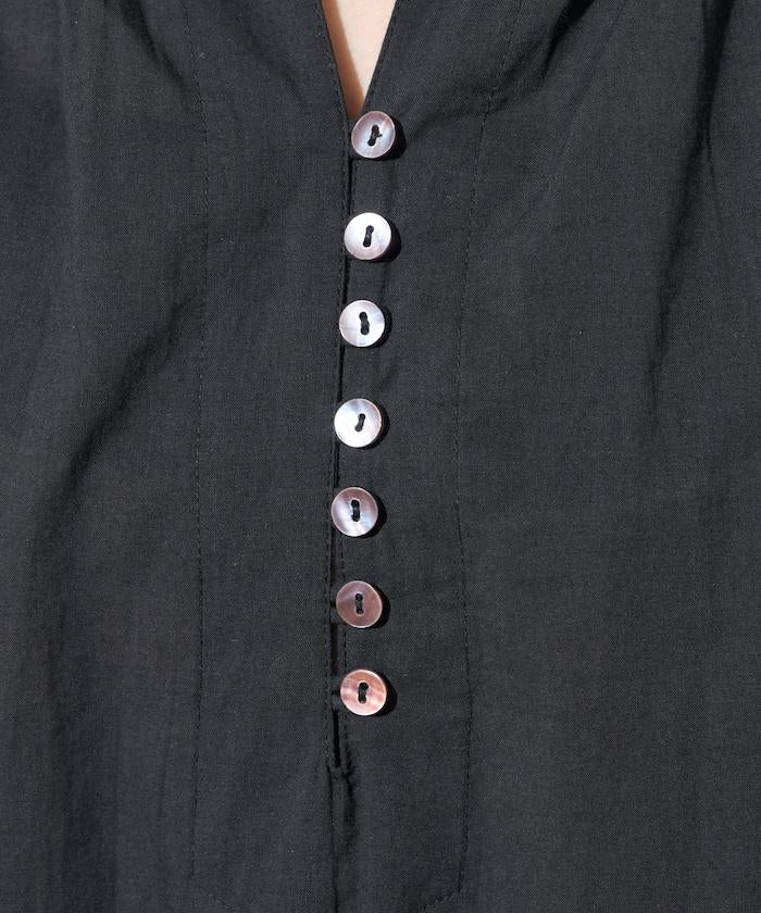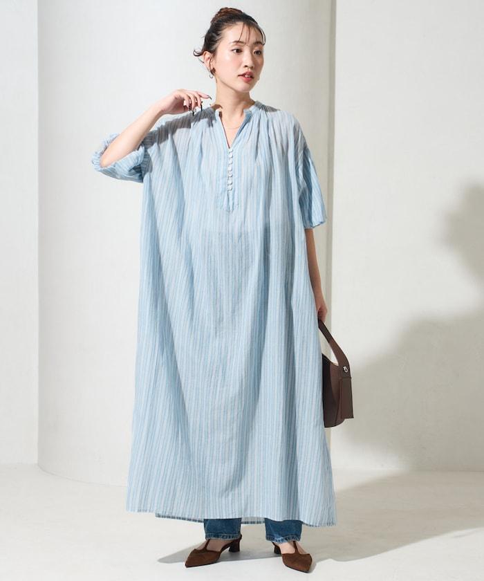 印度紐扣開襟短袖連衣裙