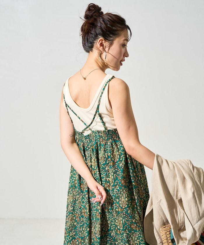 印度腰果花印花吊帶連衣裙