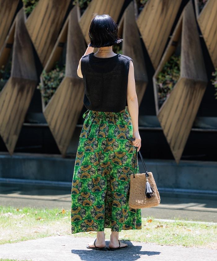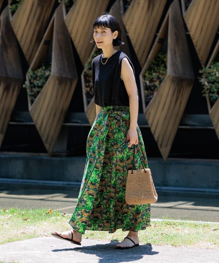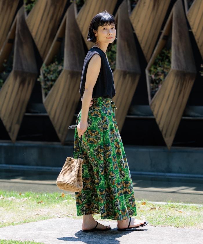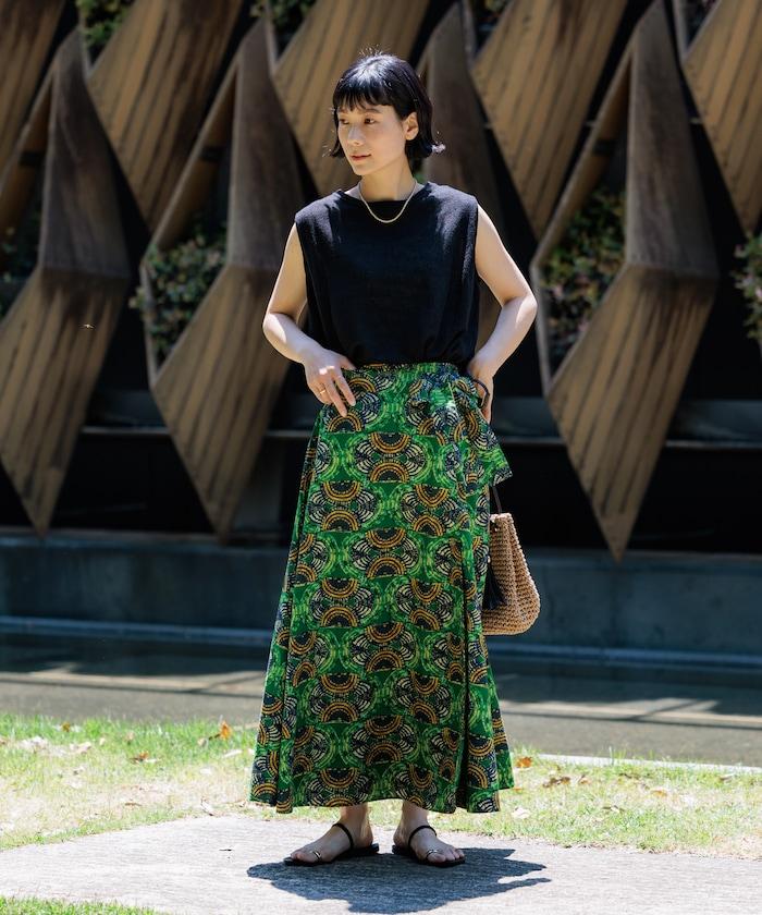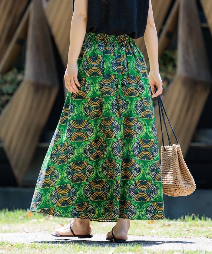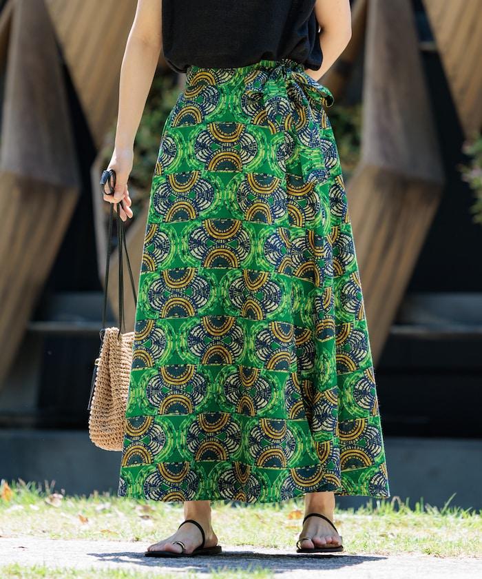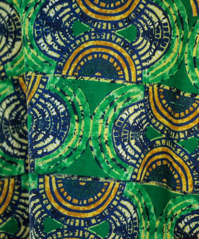這款非洲蠟染裙色彩斑斕,圖案大膽,再現了獨特的造型。
