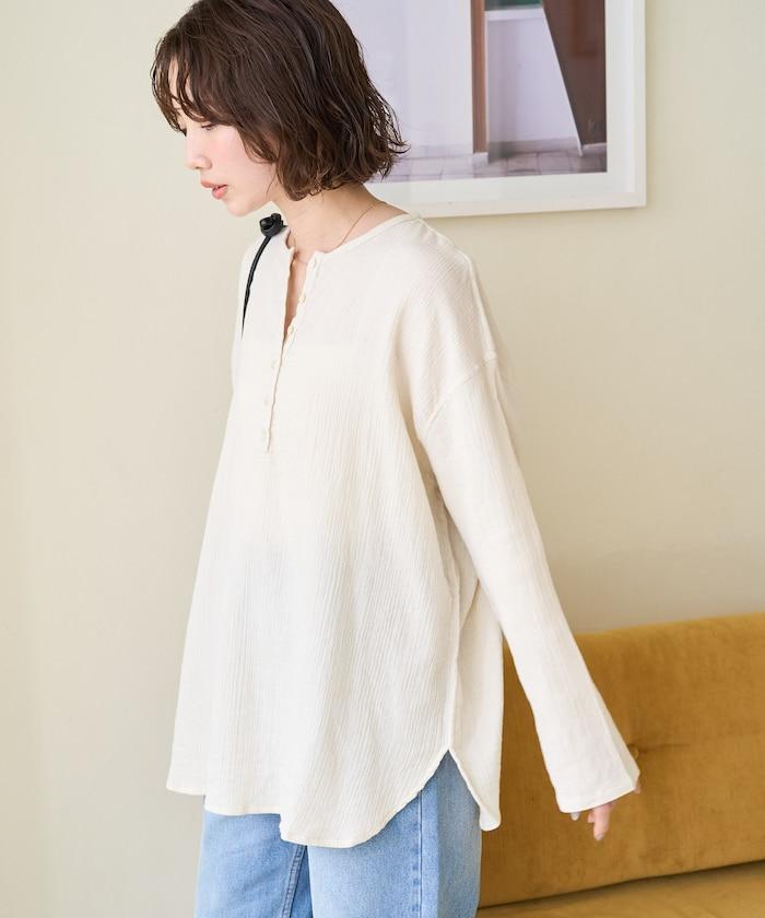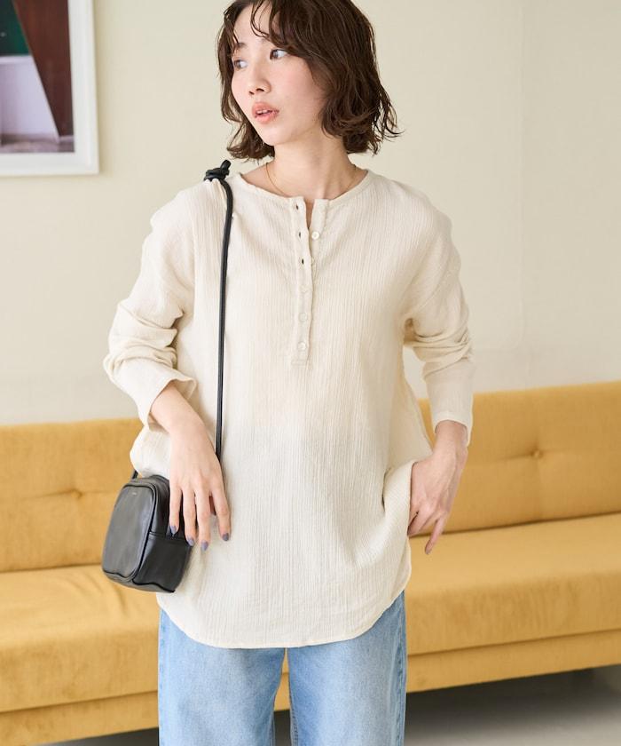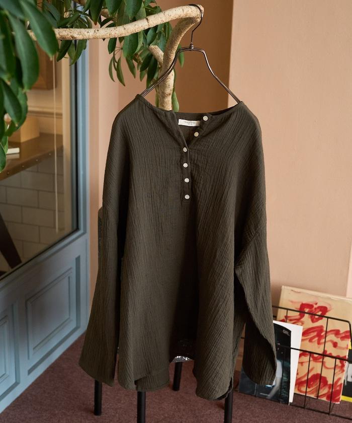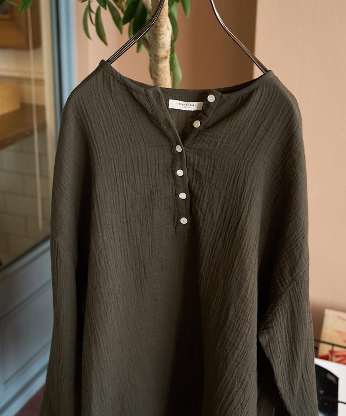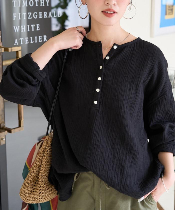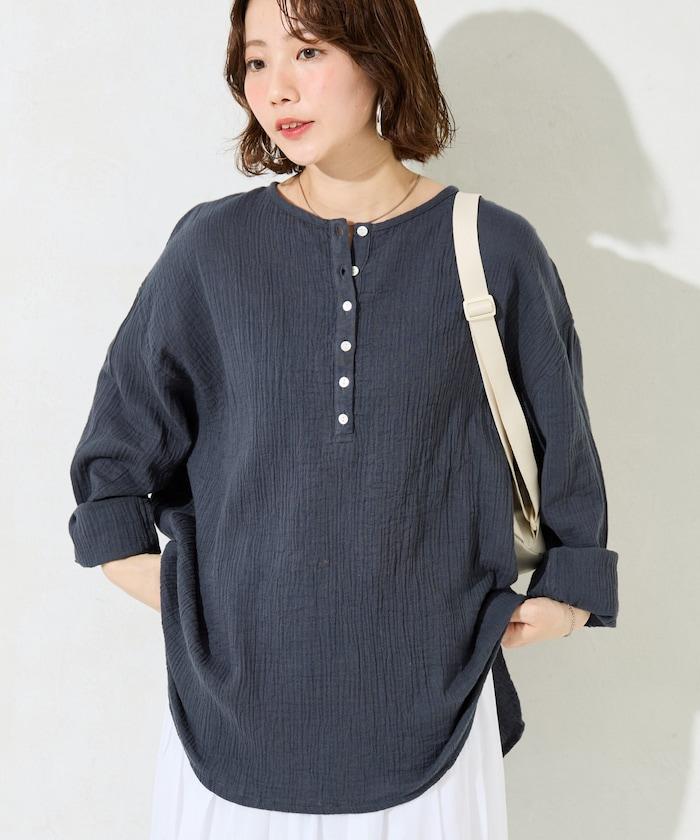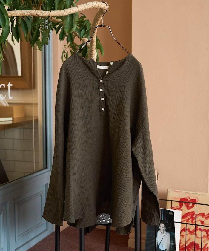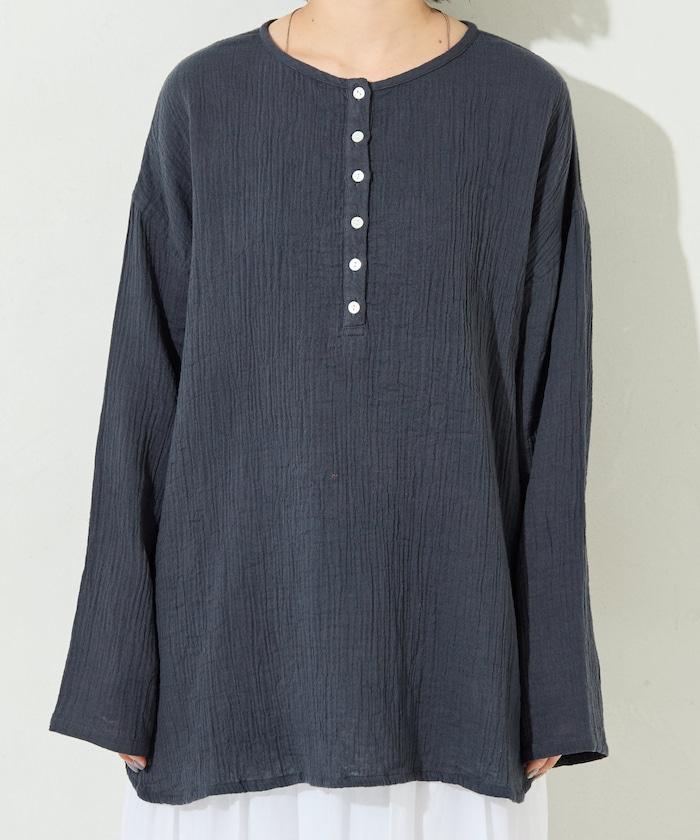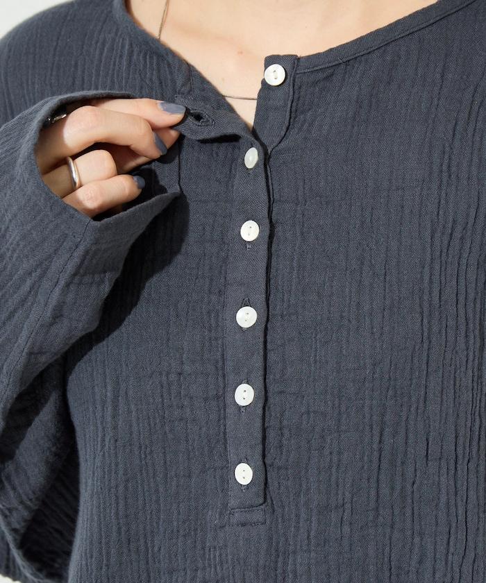印度雙層紗 Henley紐扣 長袖 上衣