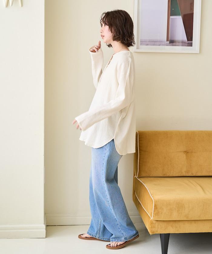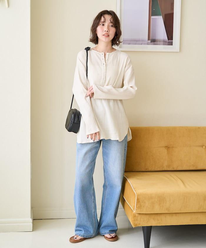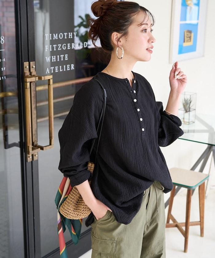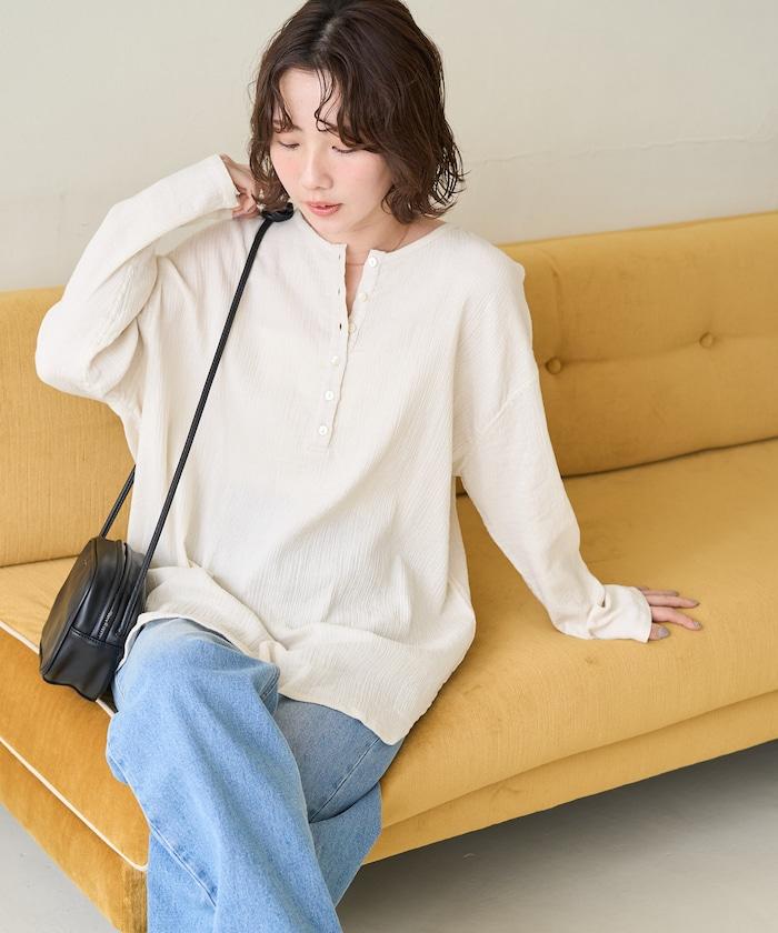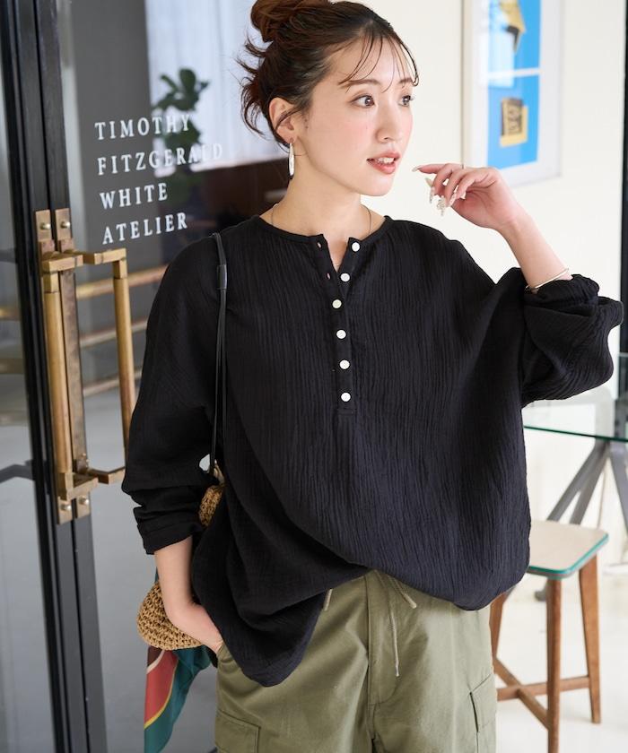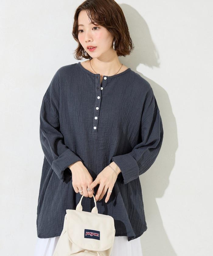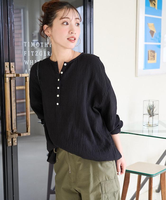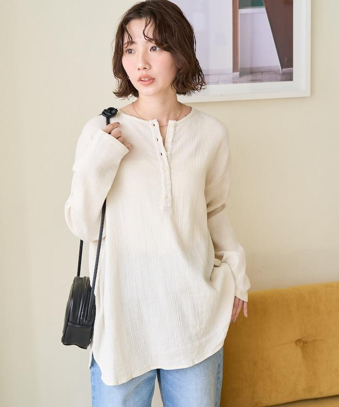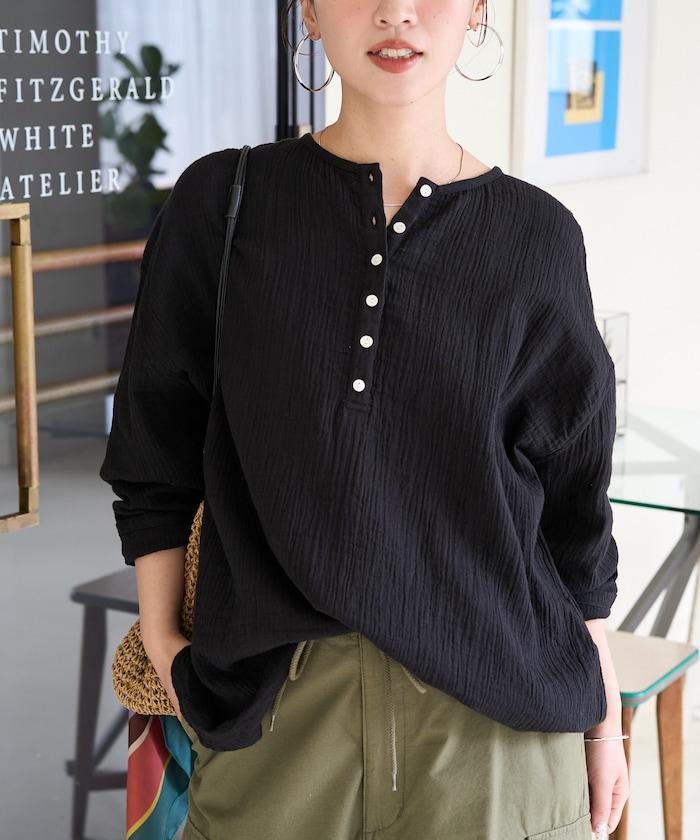 印度雙層紗 Henley紐扣 長袖 上衣