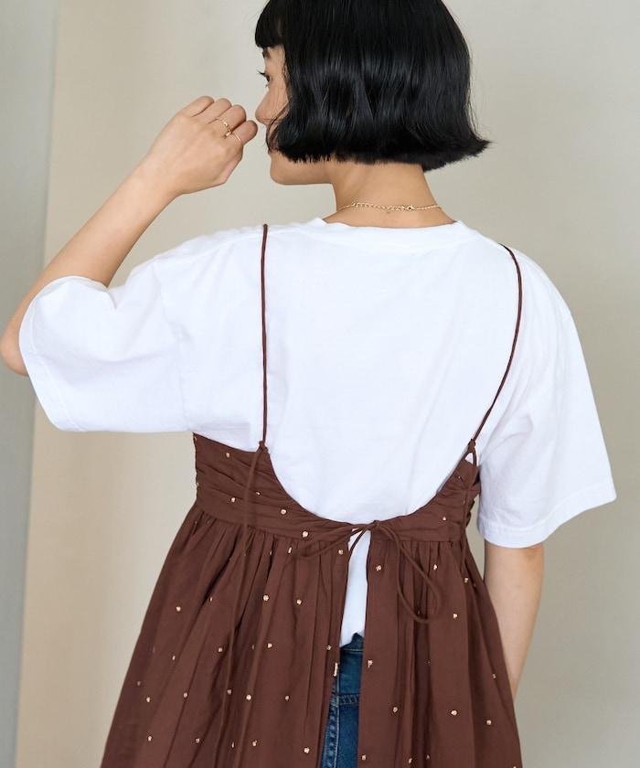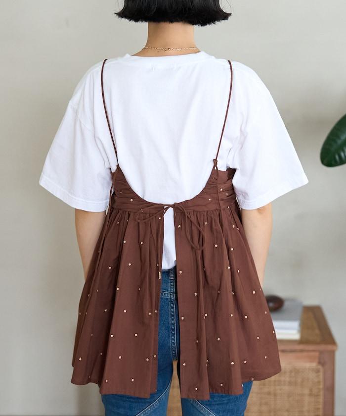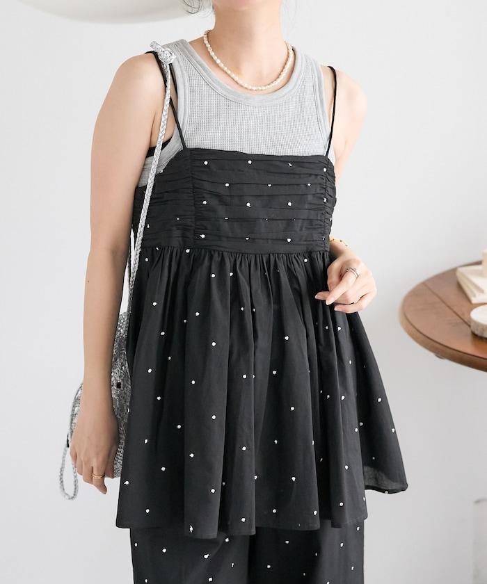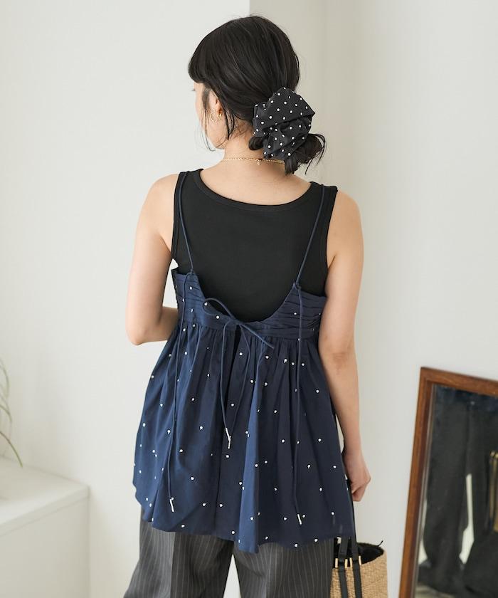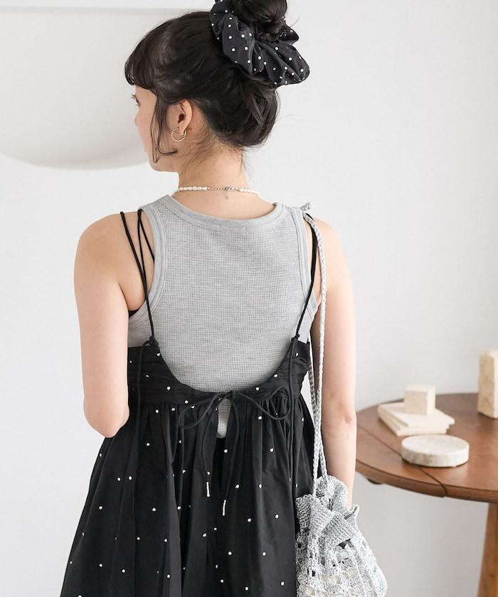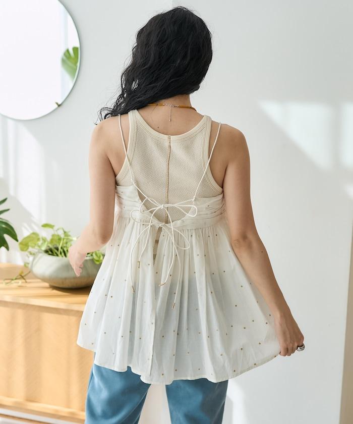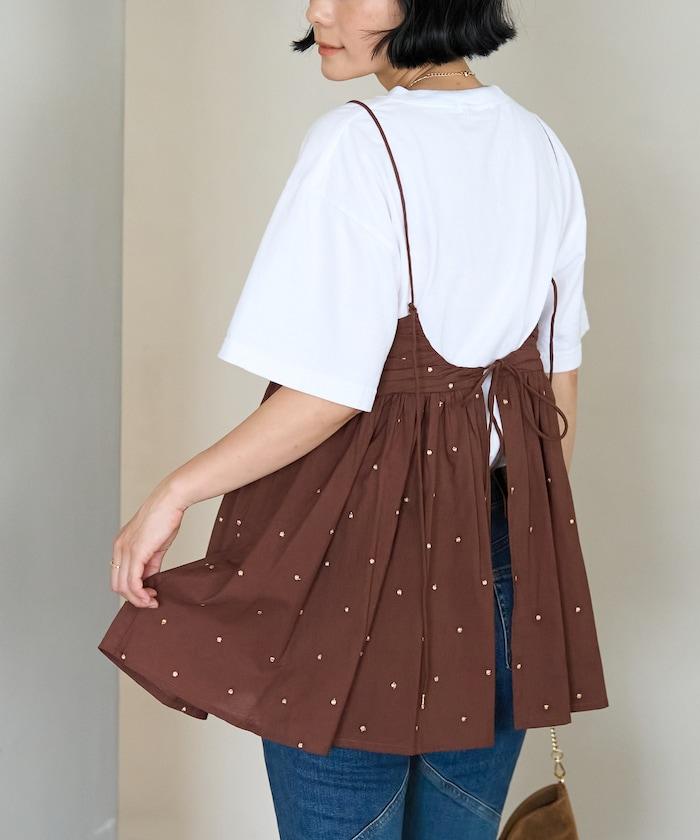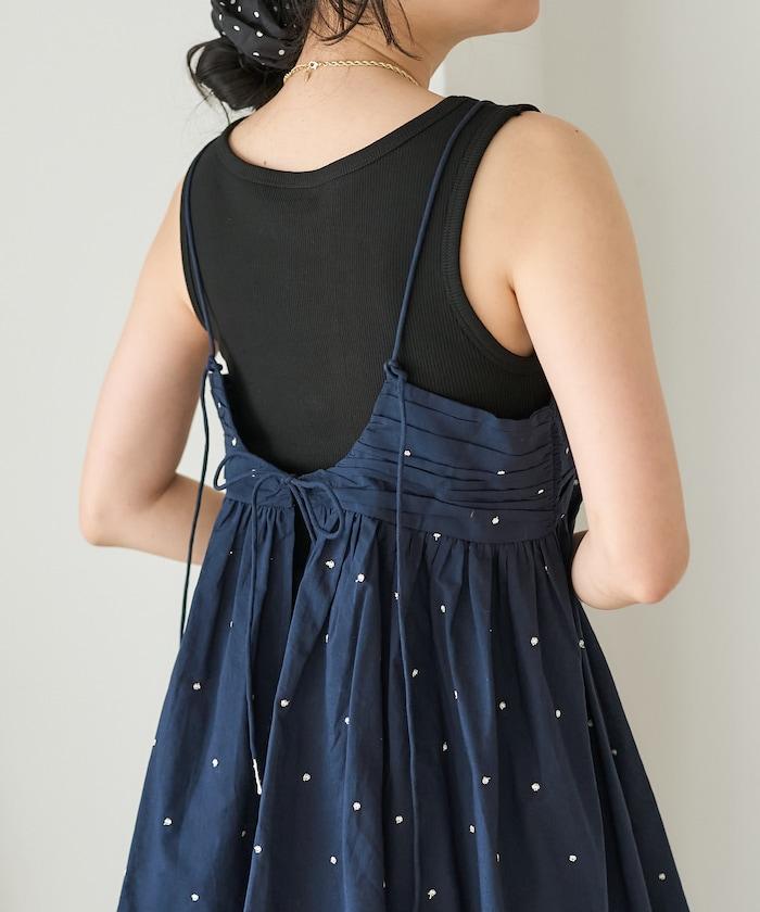 可愛的露背吊帶衫,微妙的圓點刺繡。