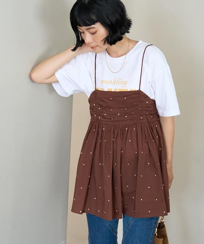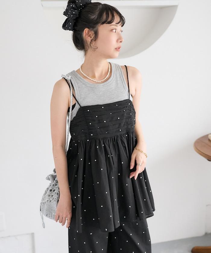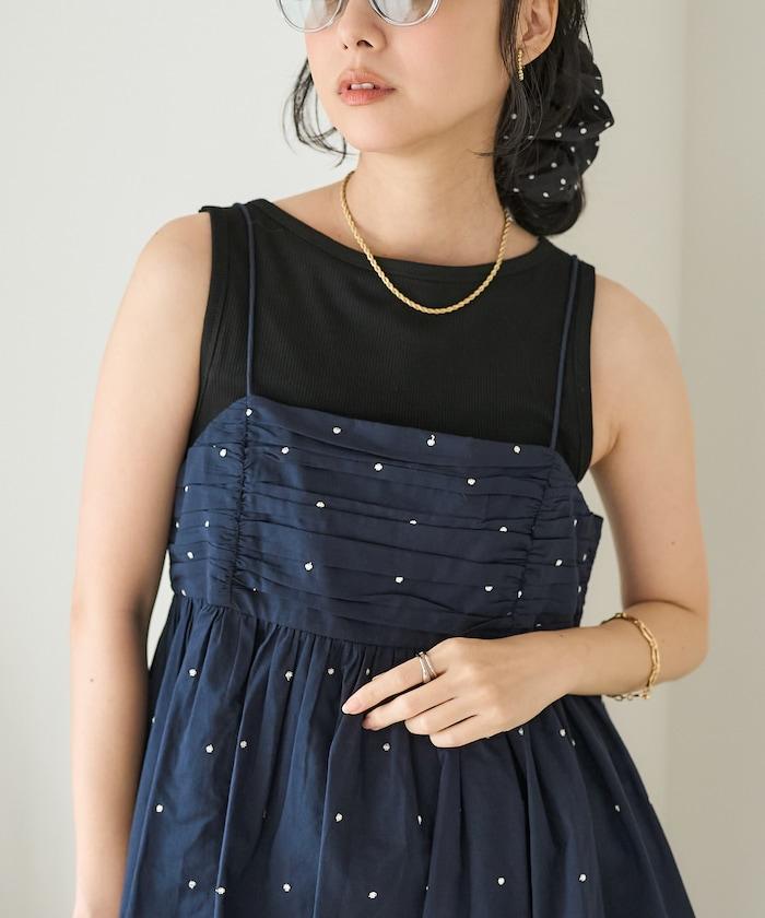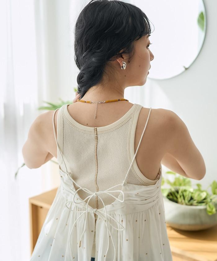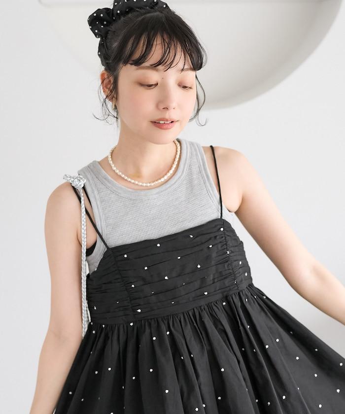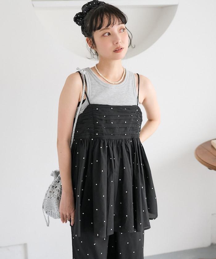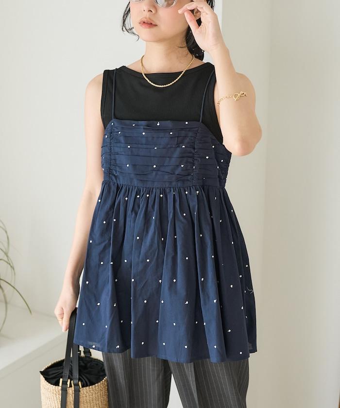 可愛的露背吊帶衫,微妙的圓點刺繡。