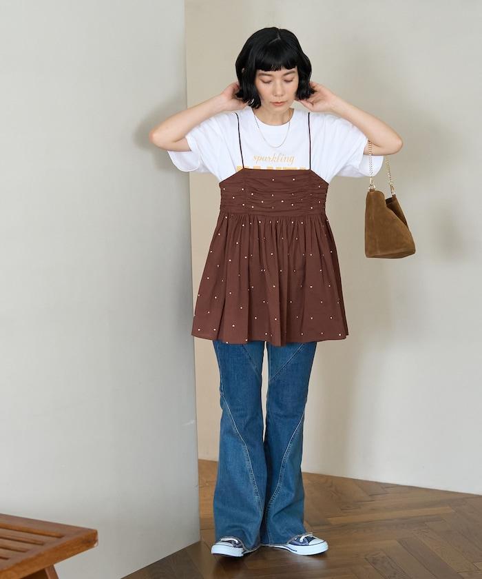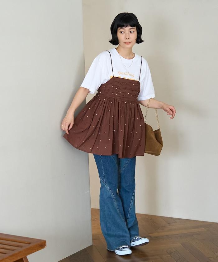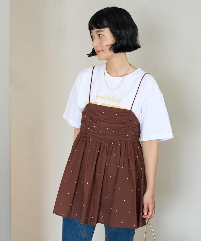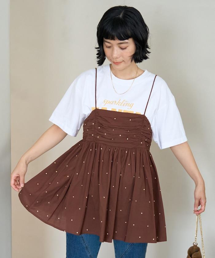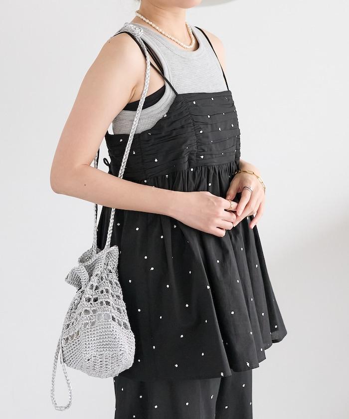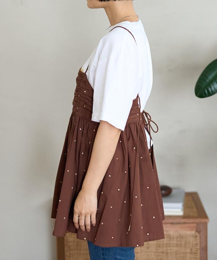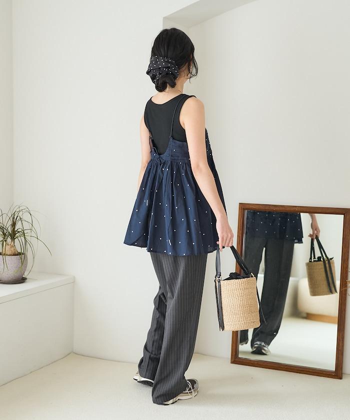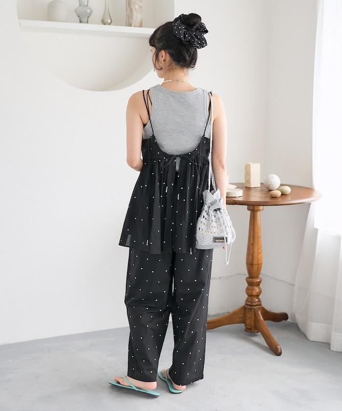 可愛的露背吊帶衫,微妙的圓點刺繡。