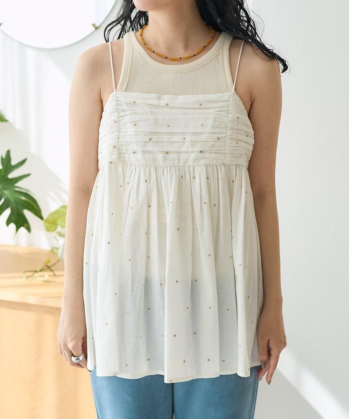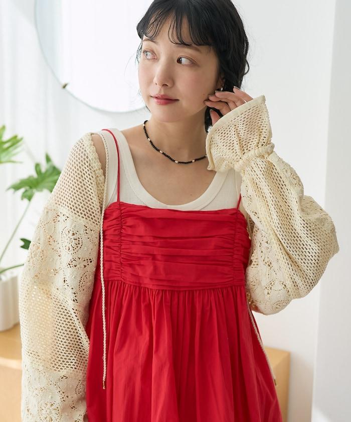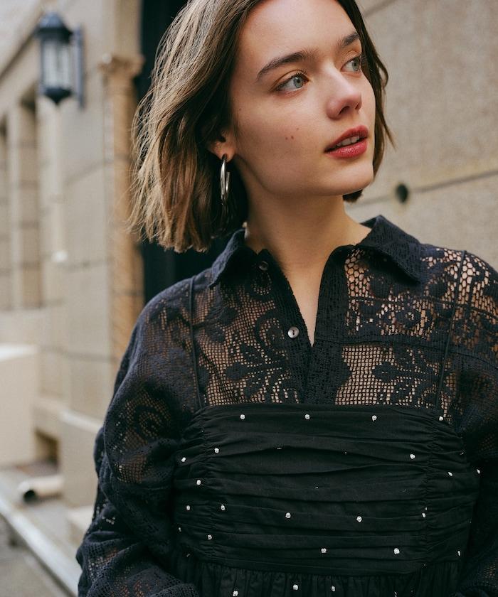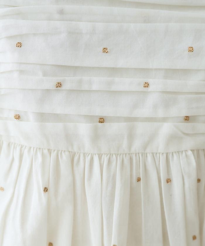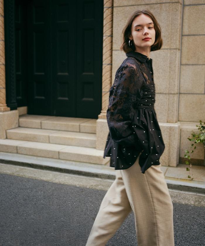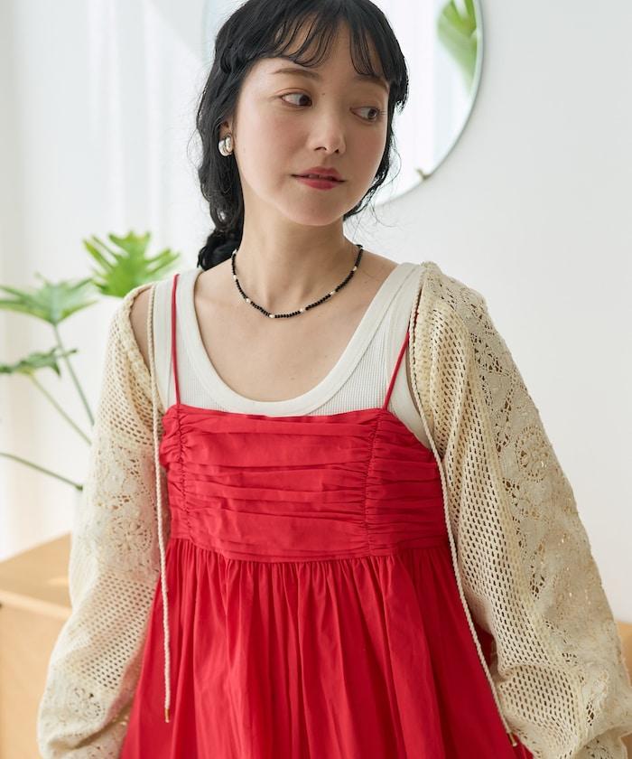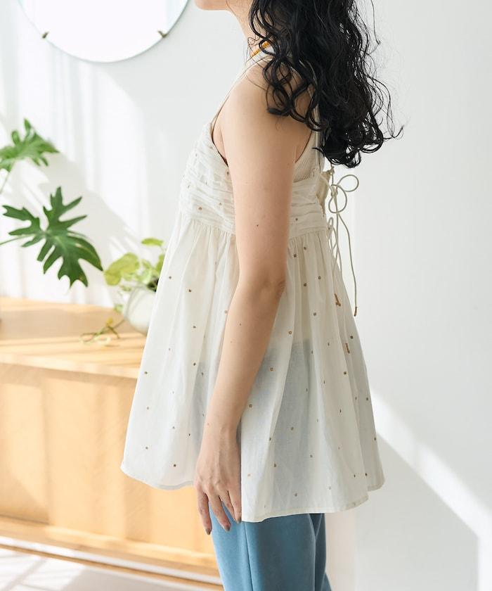 有四種顏色可供選擇:易於搭配的素色和華麗的蹩腳圓點刺繡