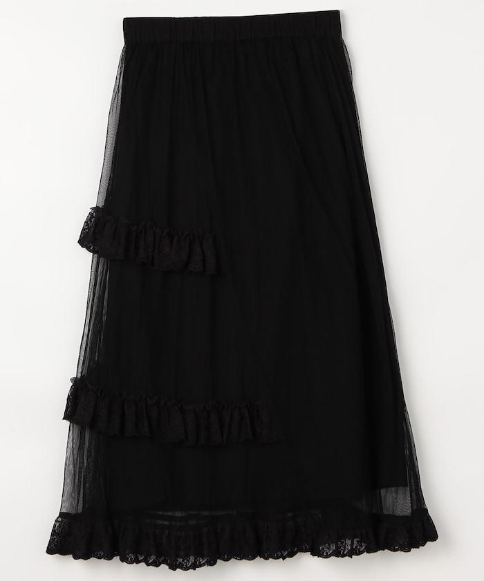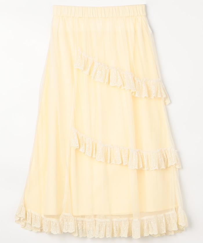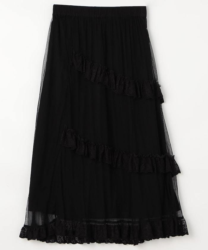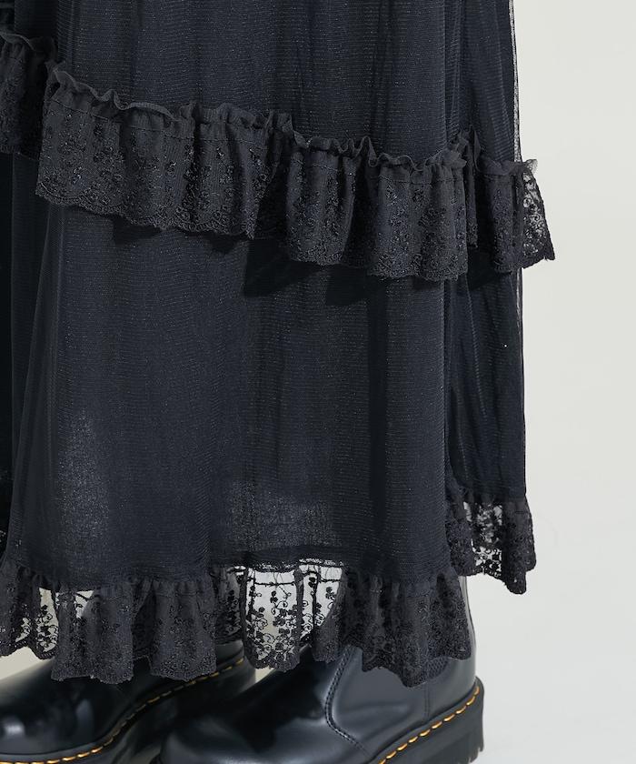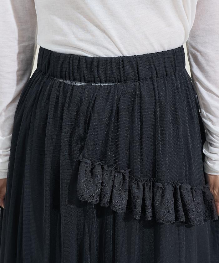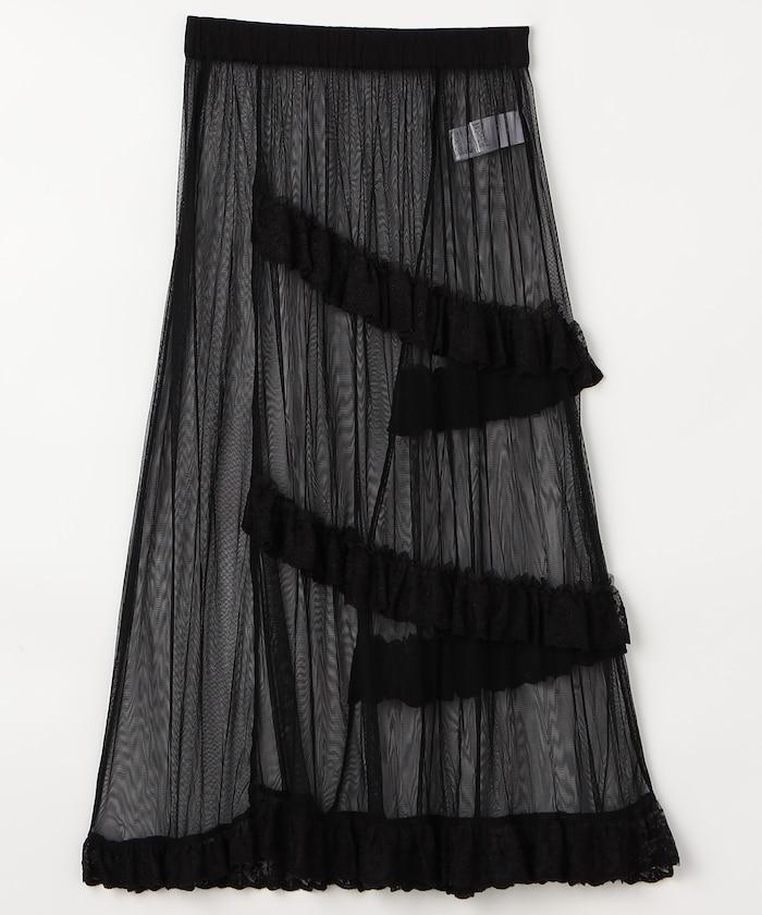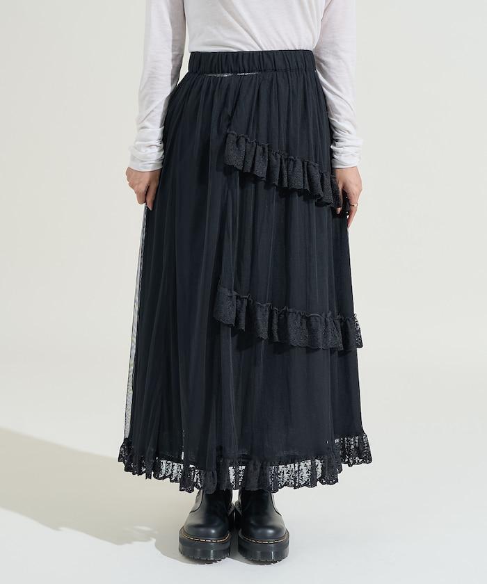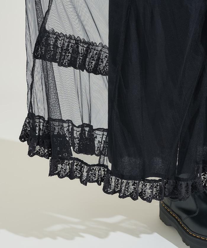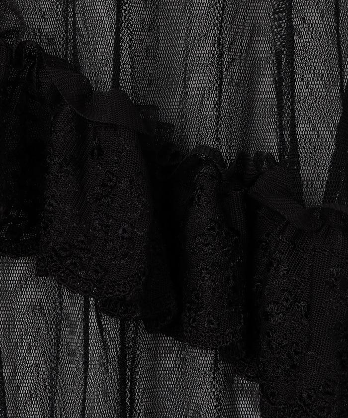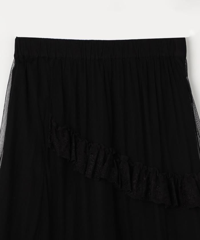 不對稱蕾絲薄紗裙。