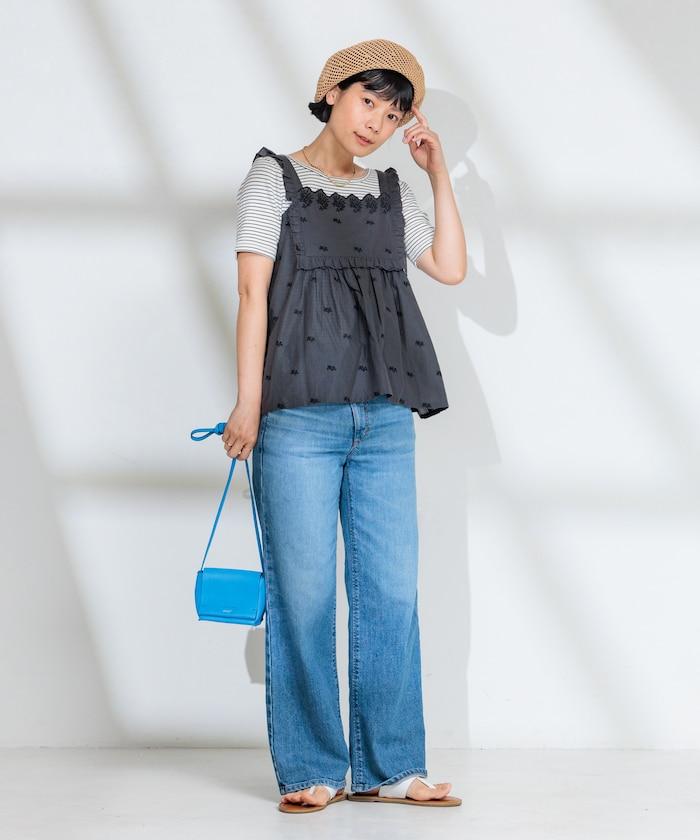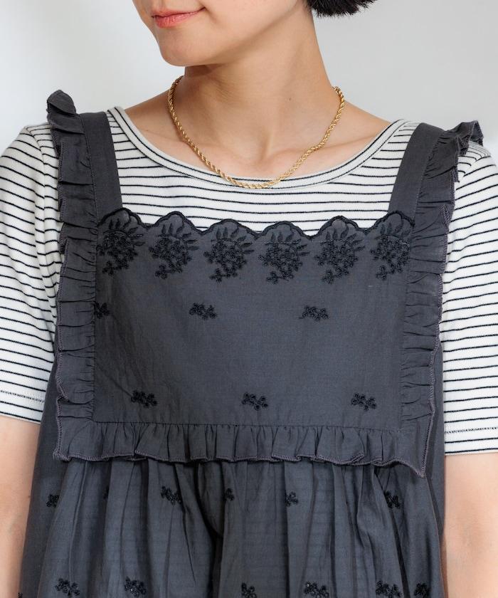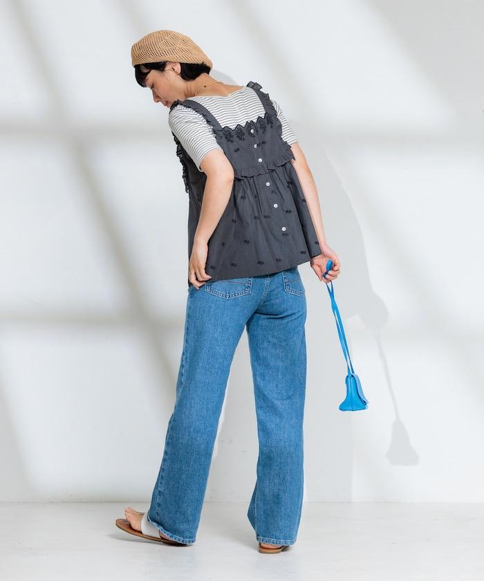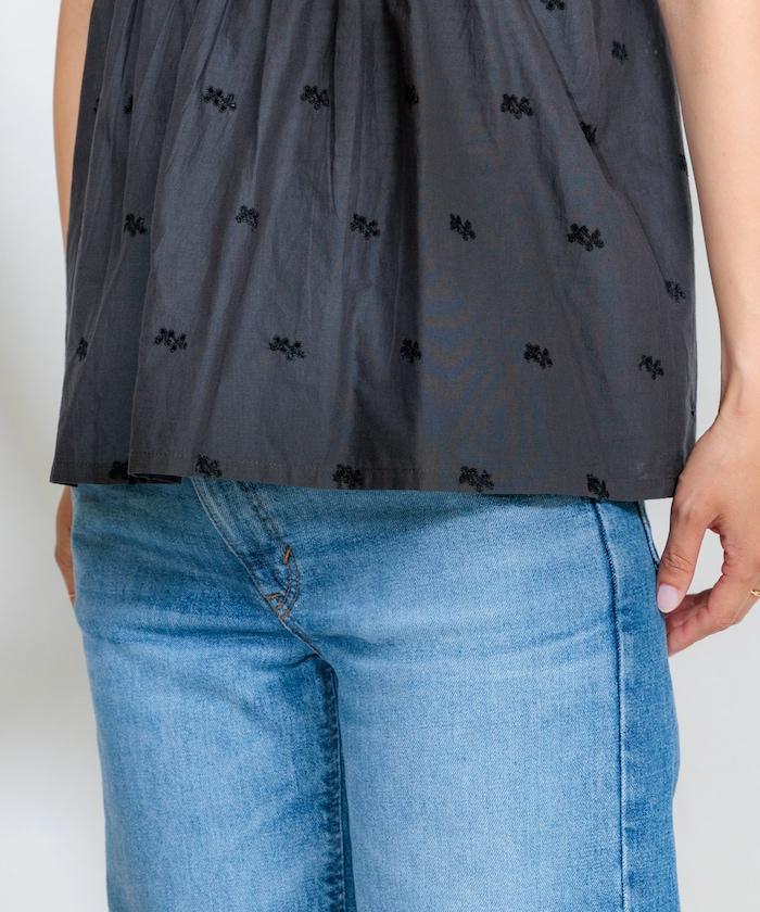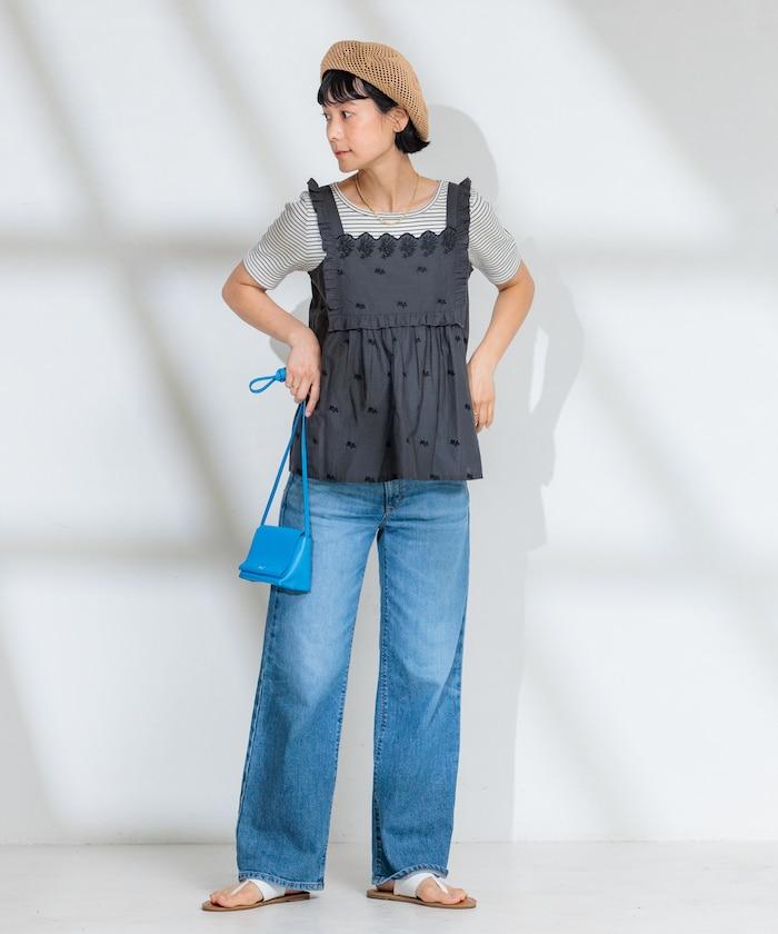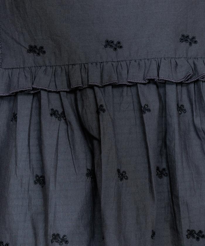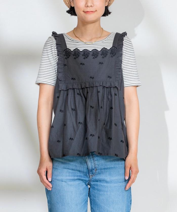 這款吊帶衫採用 Shifuri 刺繡和荷葉邊設計,彰顯女性魅力。