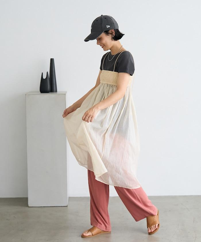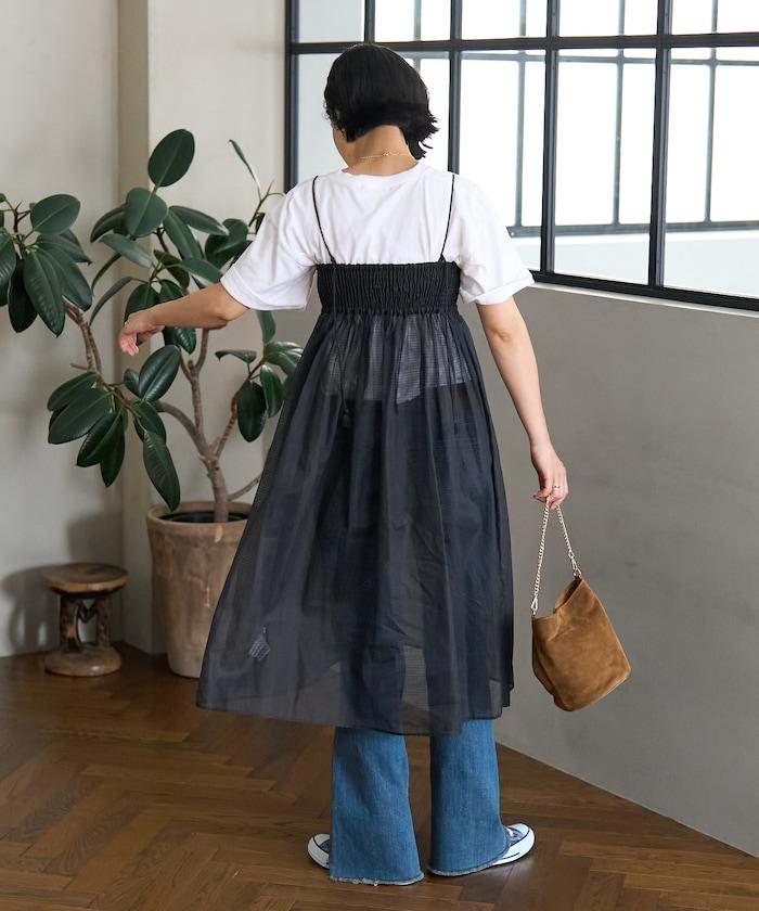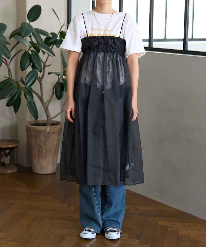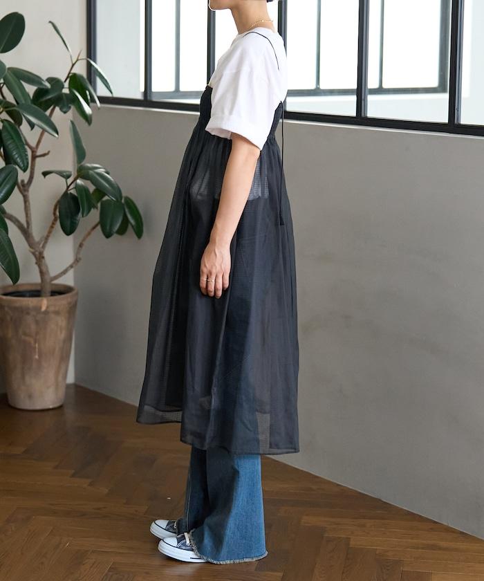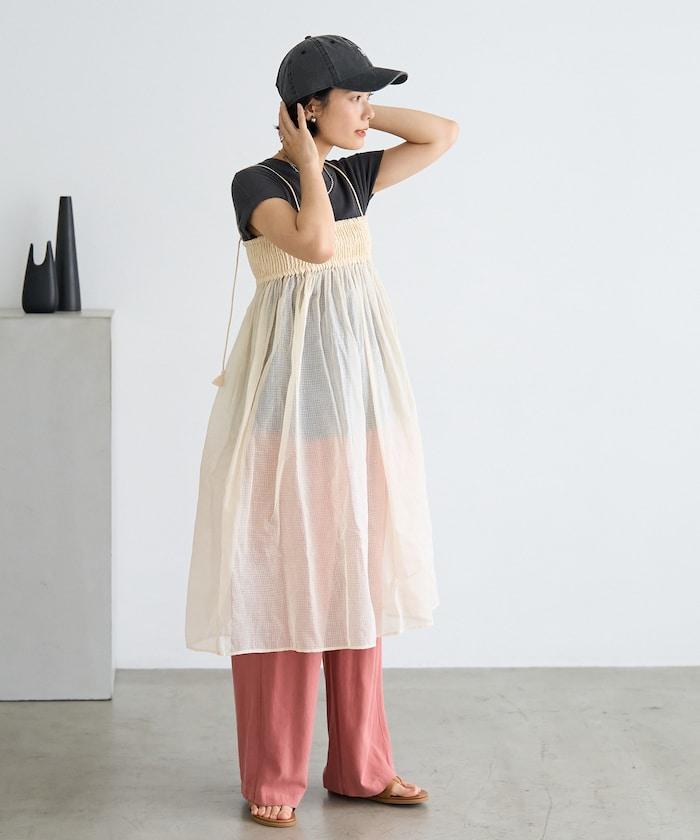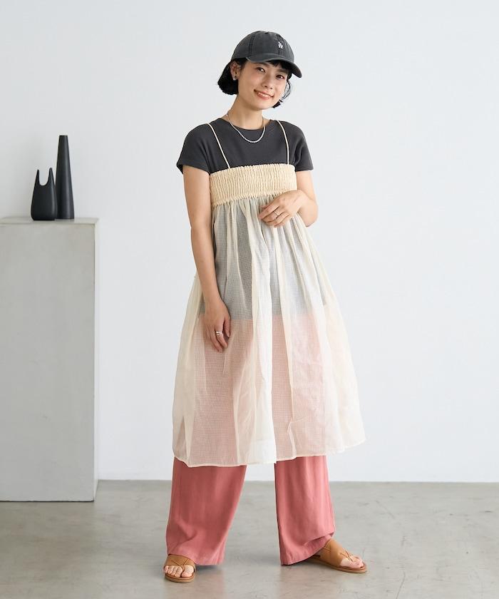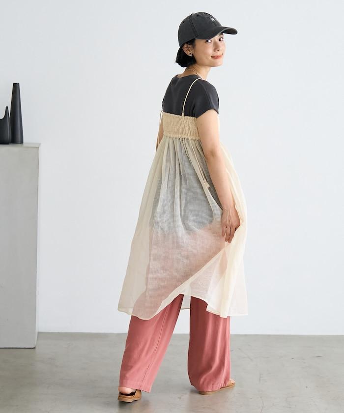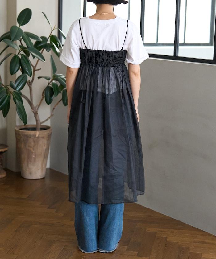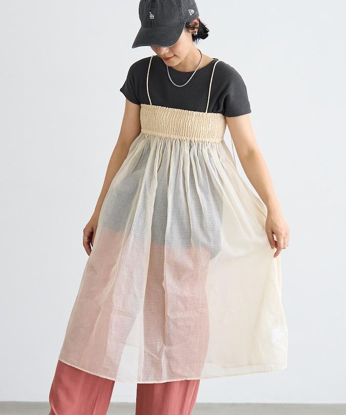 雙向連衣裙採用透視格紋面料,具有透視感。