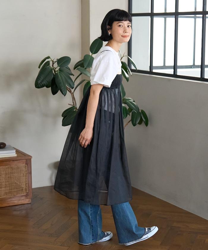 可作為吊帶裙穿至胸前,也可作為裙子在腰部疊穿。