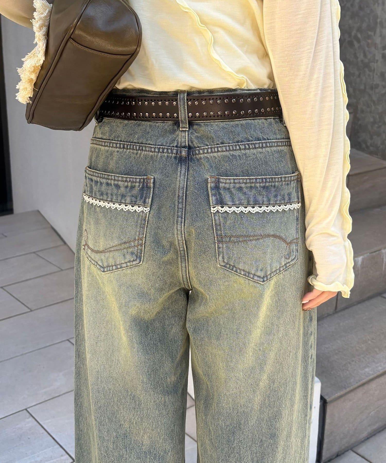 後口袋以刺繡和蕾絲裝飾,將可愛的設計一直延伸到背後。