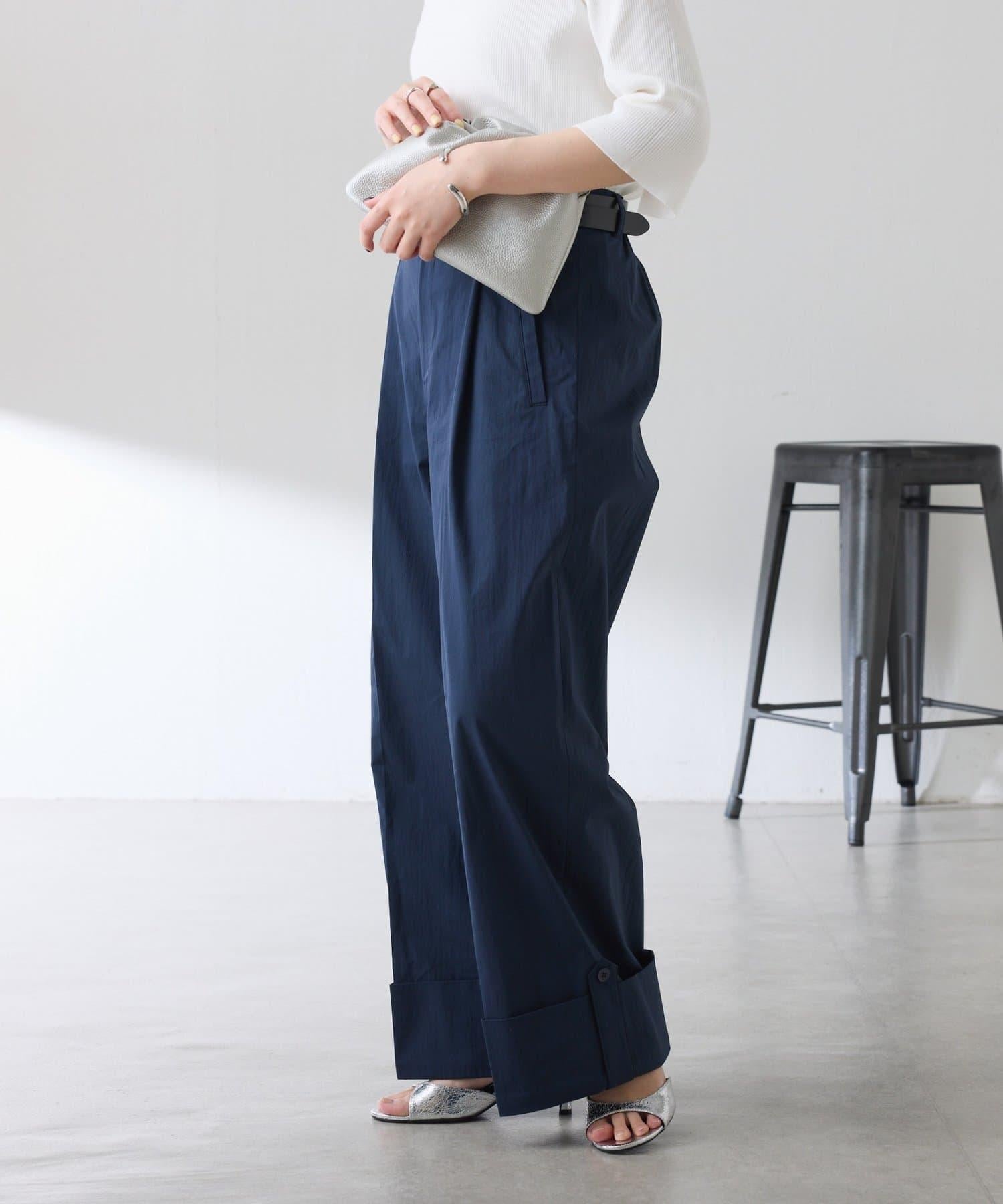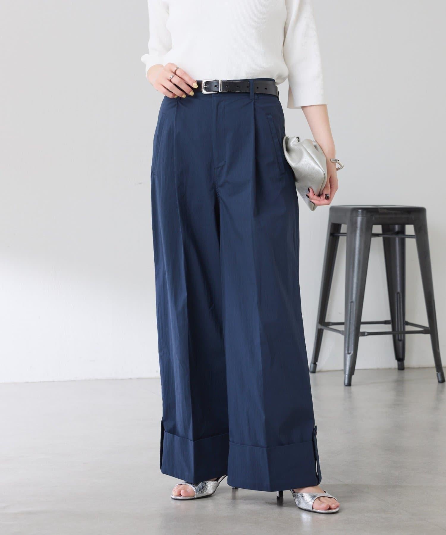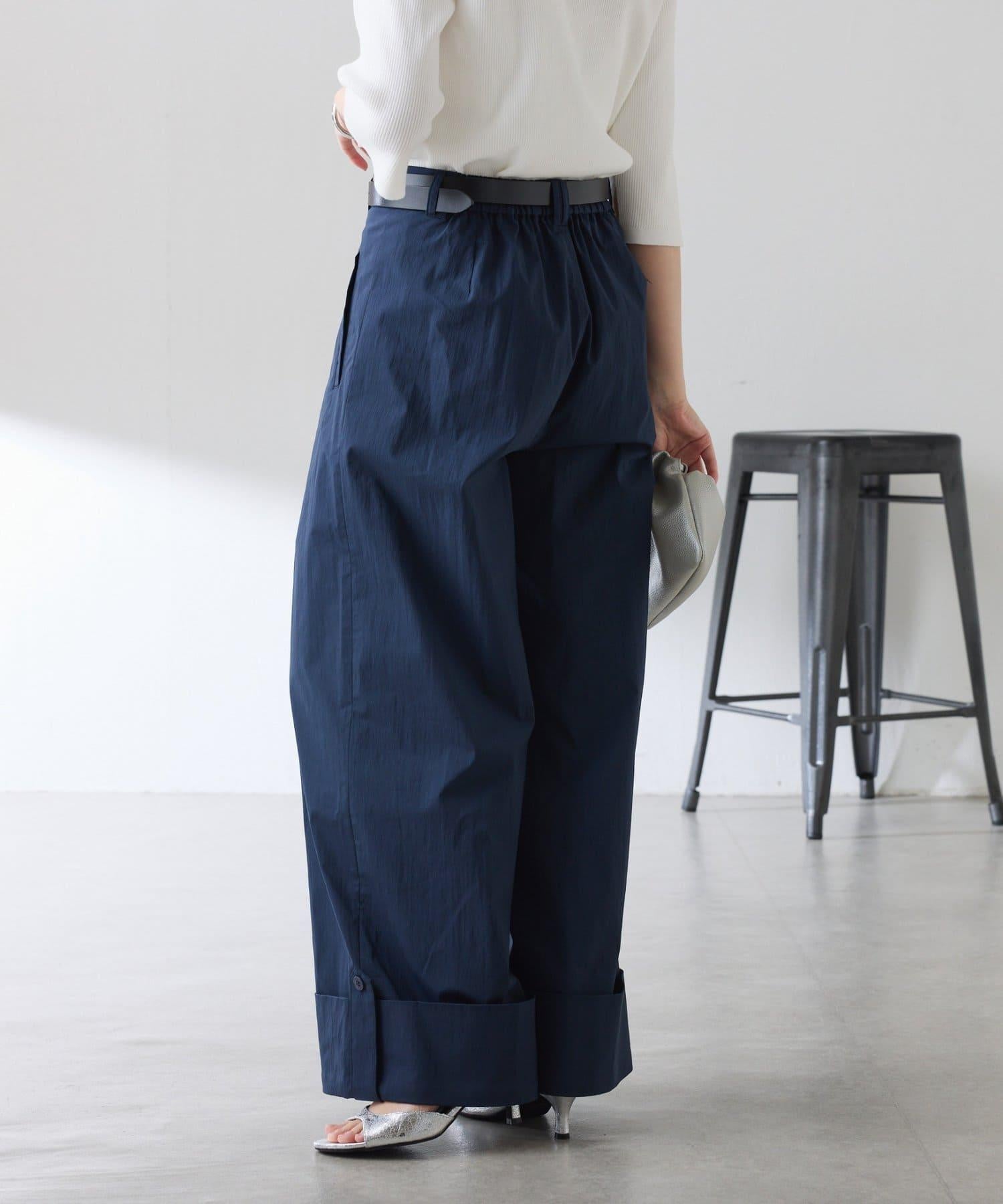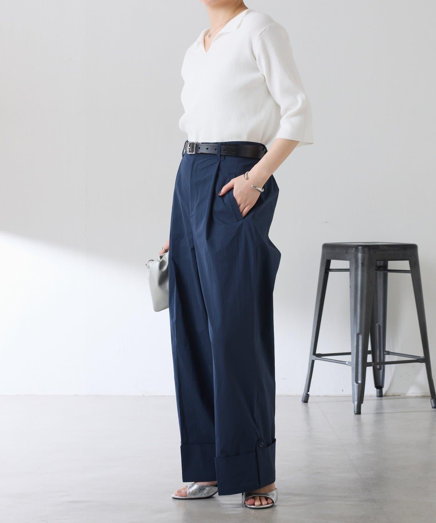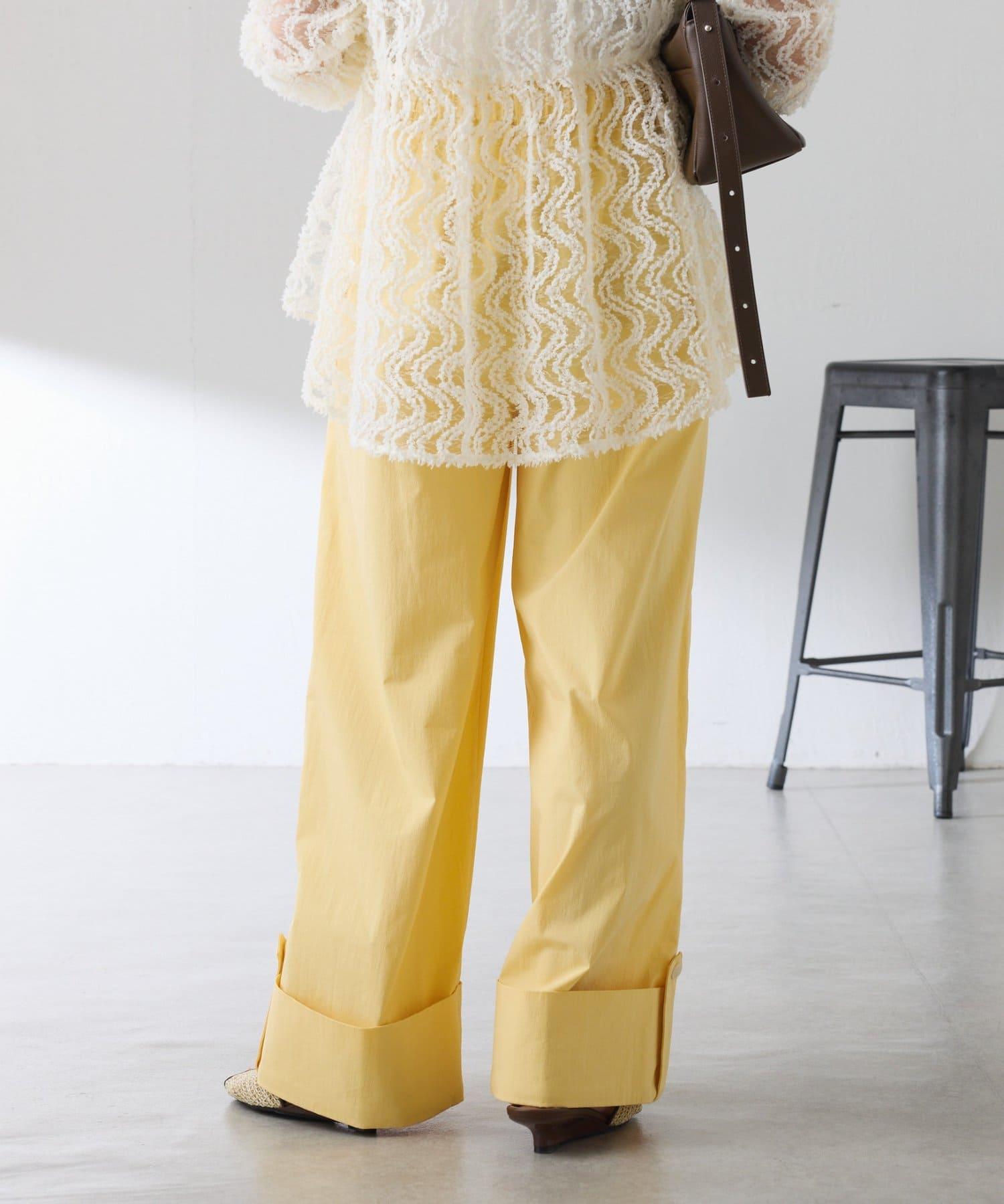 這款闊腿褲採用了清新的卷邊設計。
