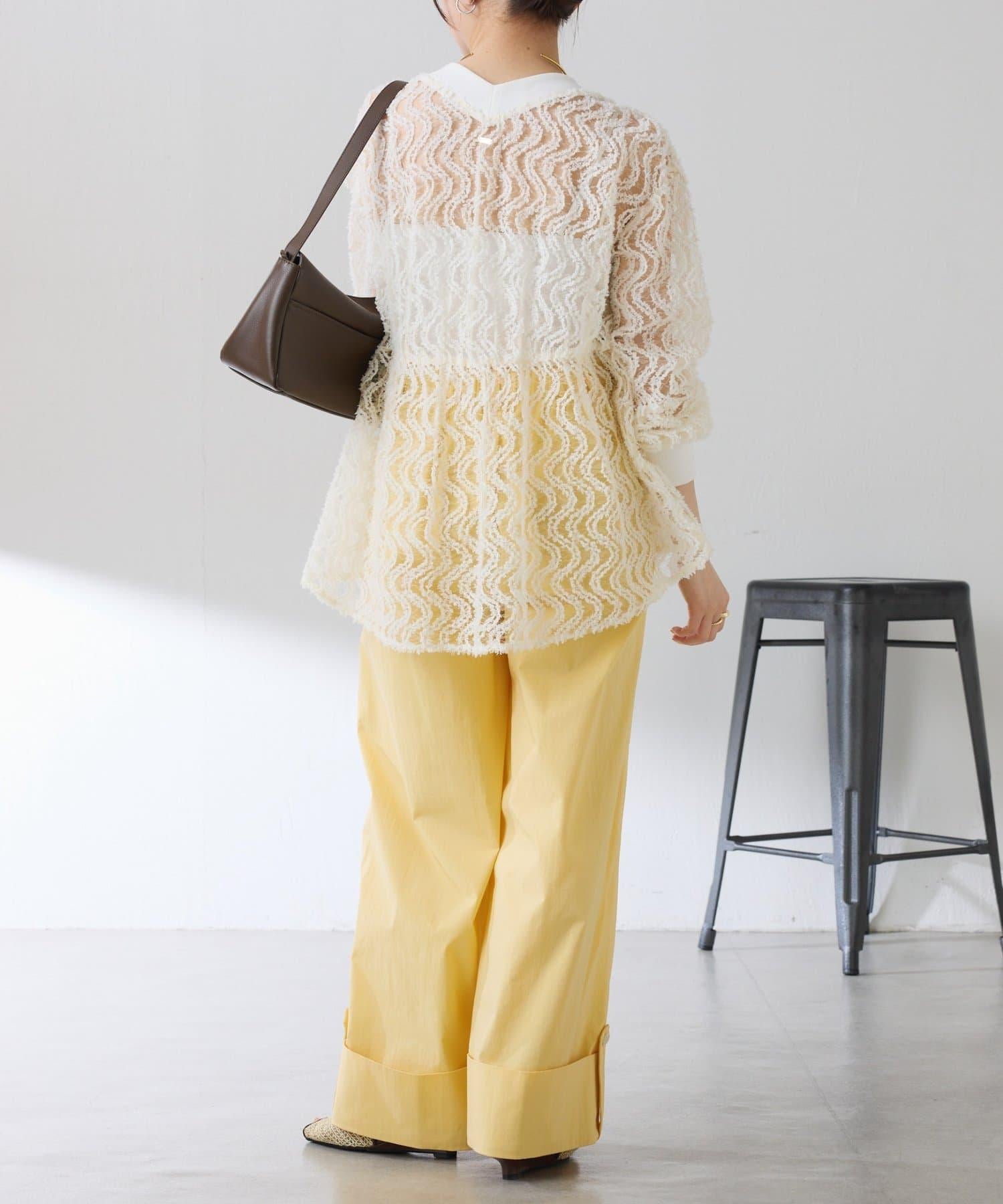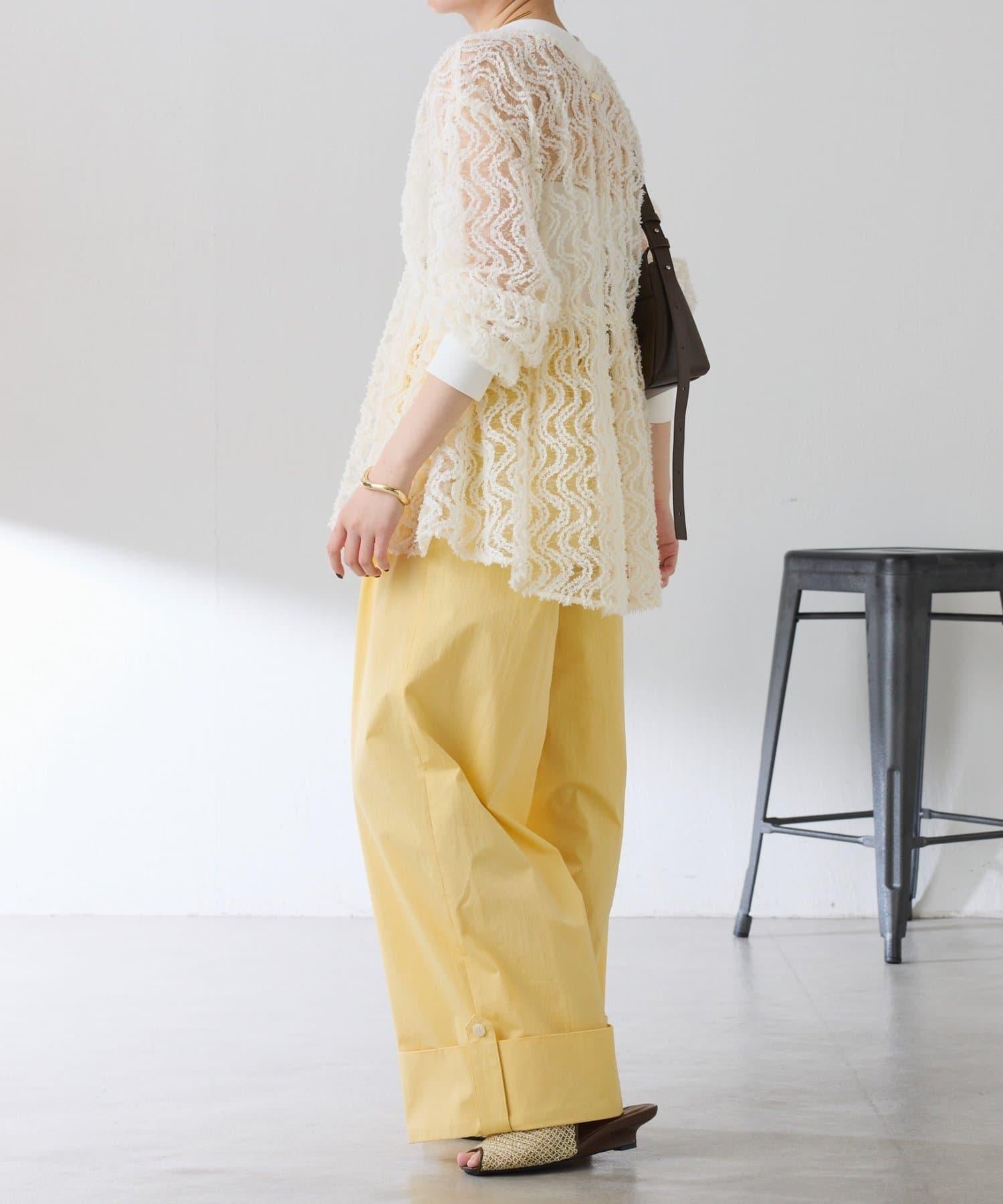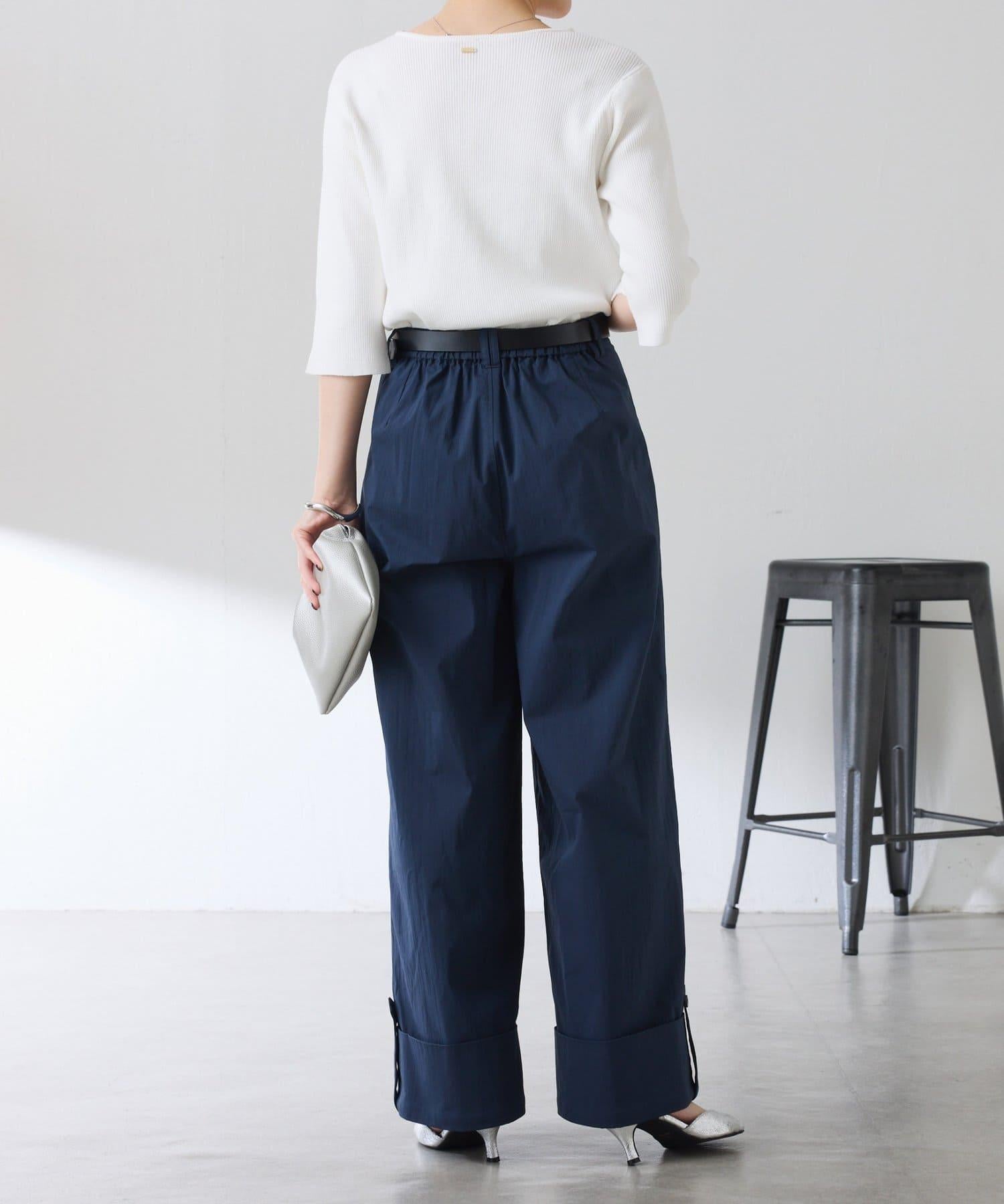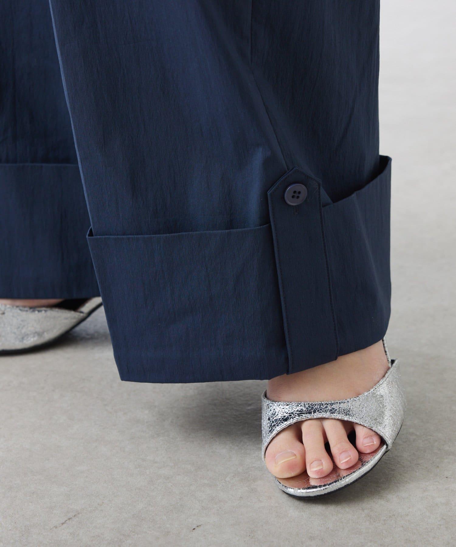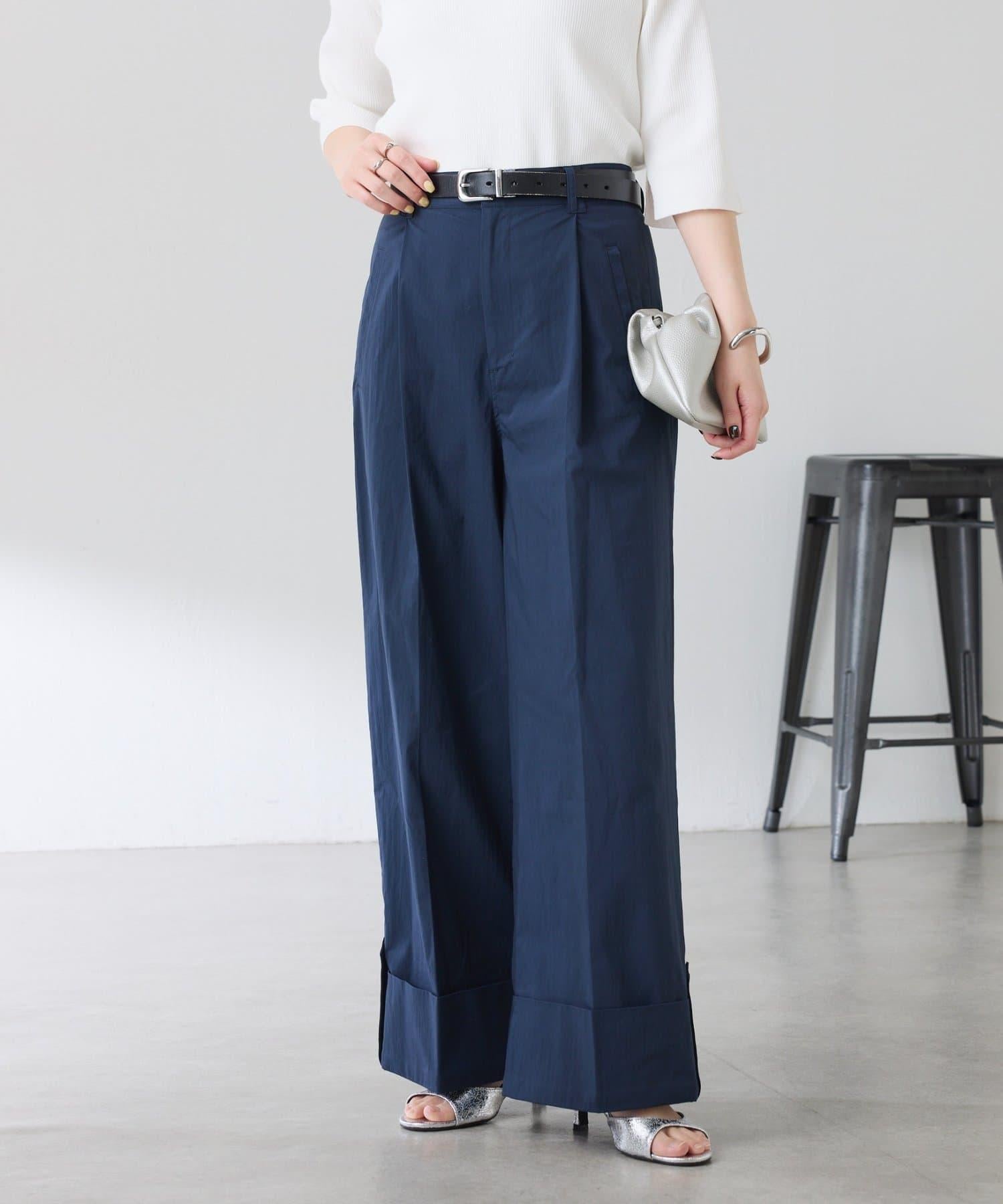 這款闊腿褲採用了清新的卷邊設計。