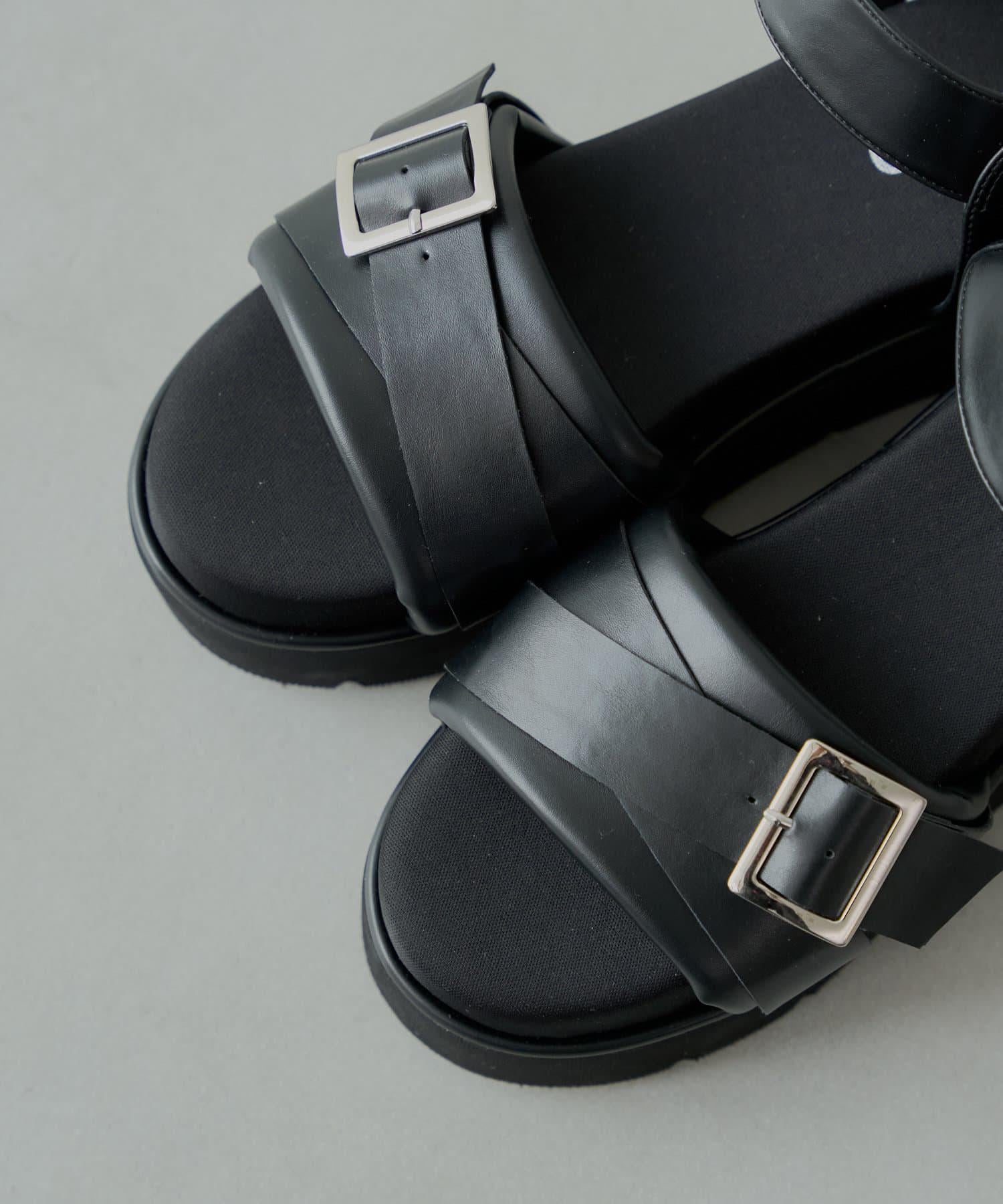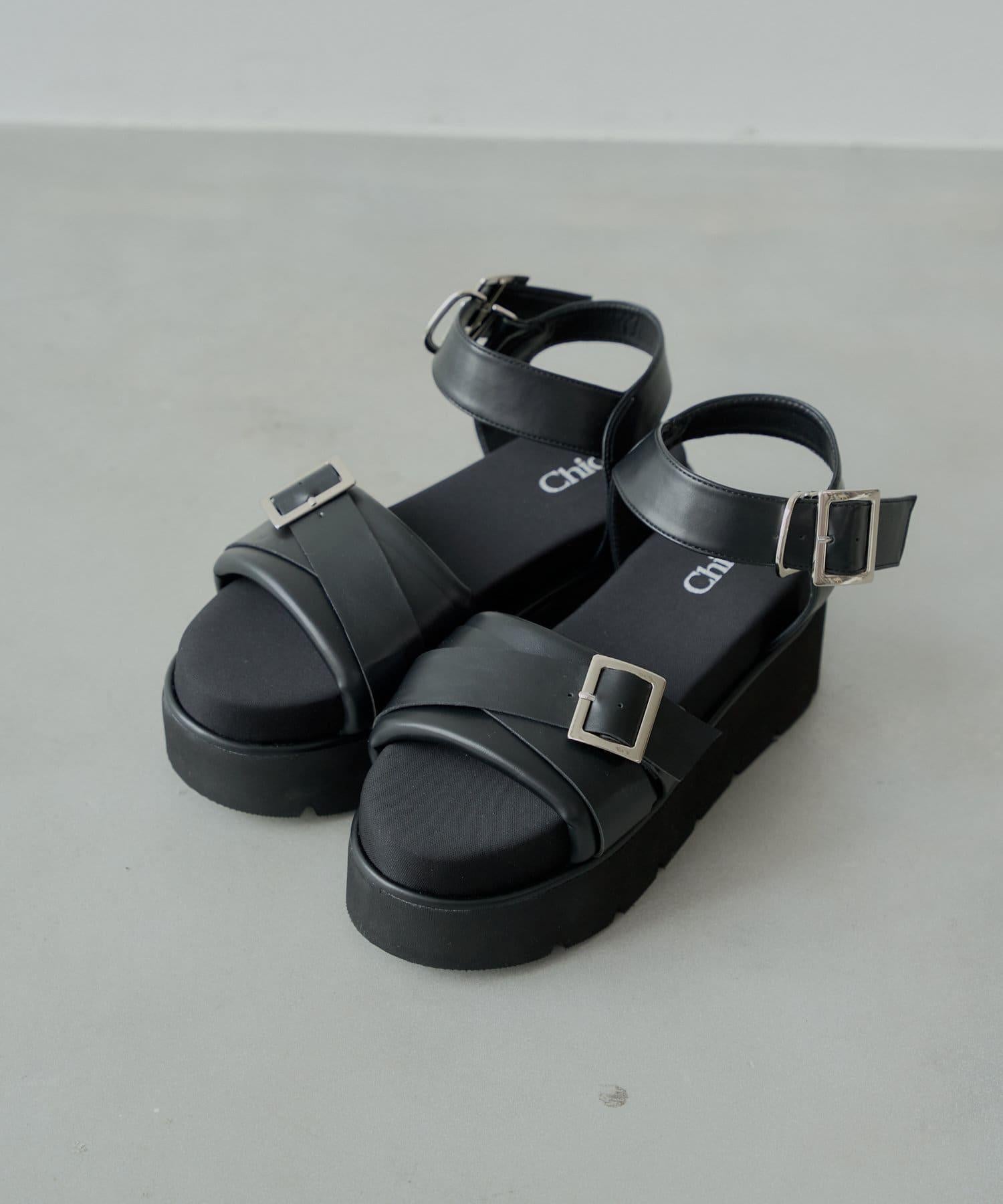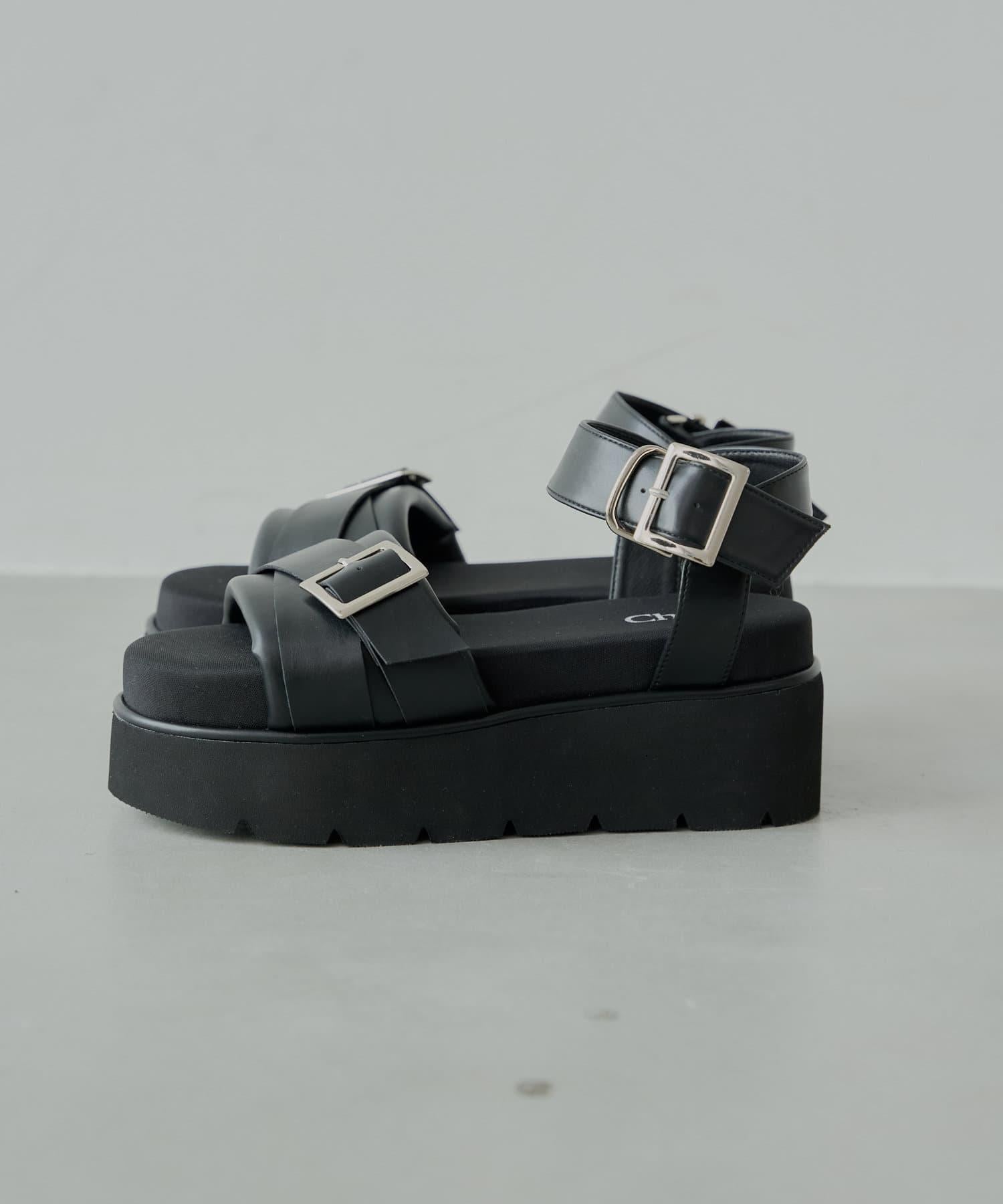 簡潔而結實的厚底交叉帶設計涼鞋。