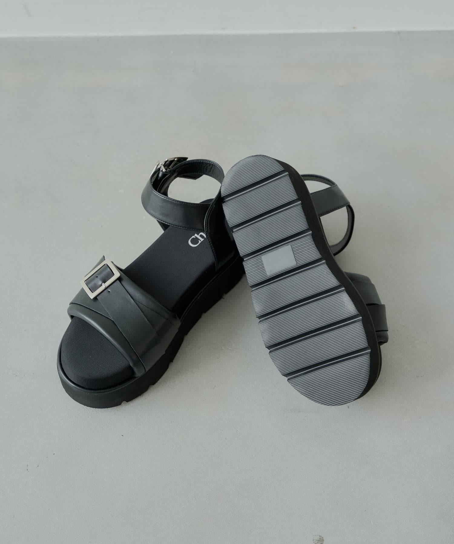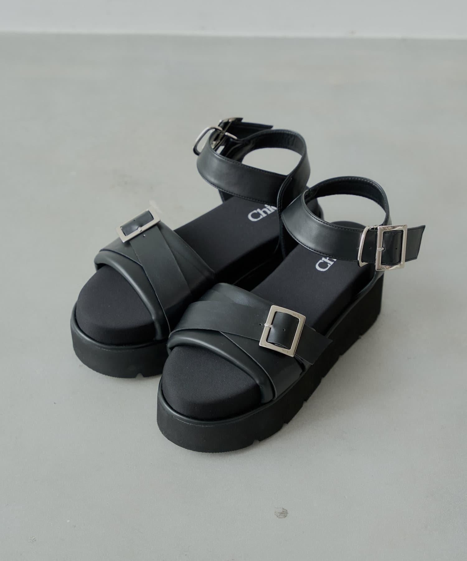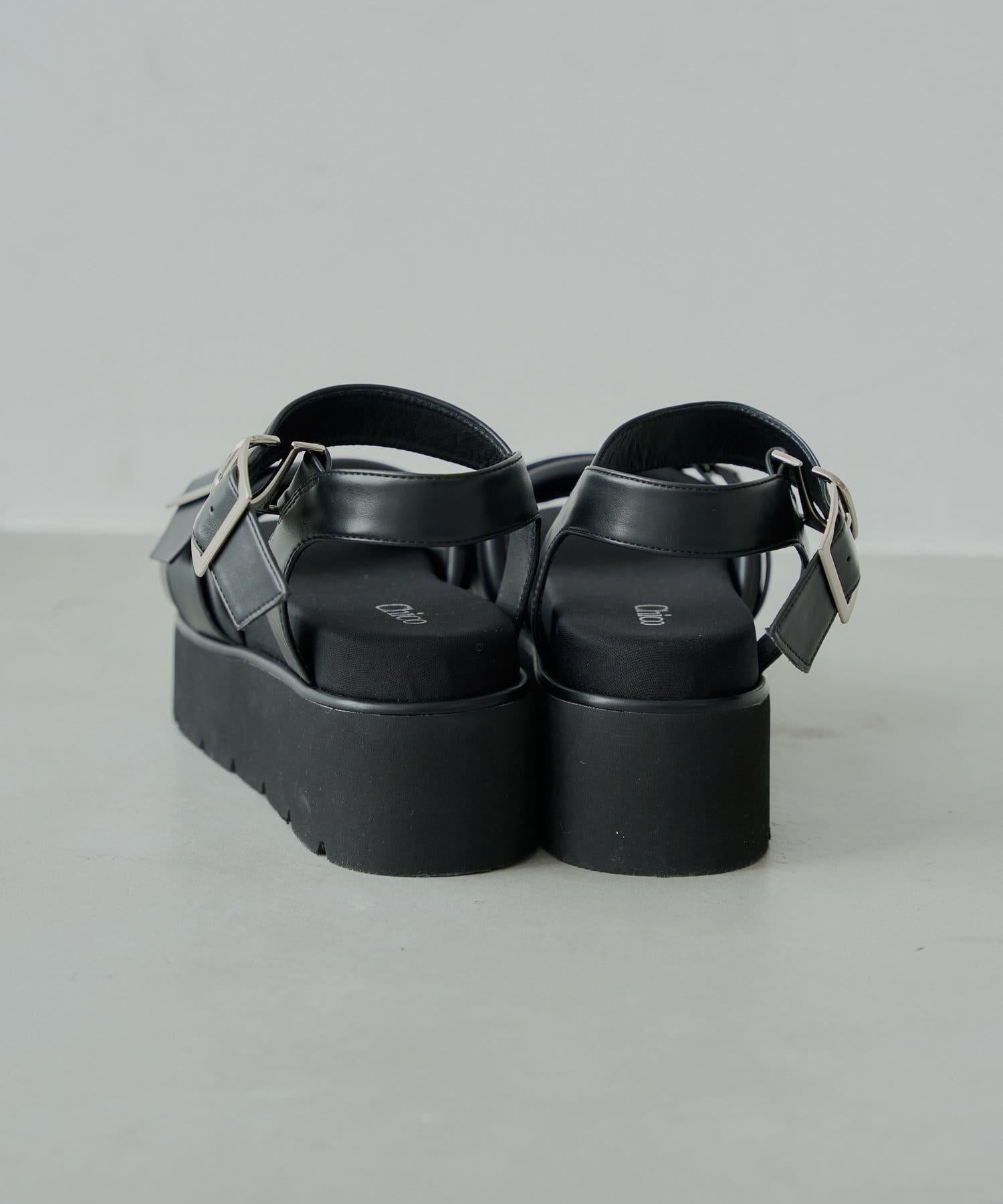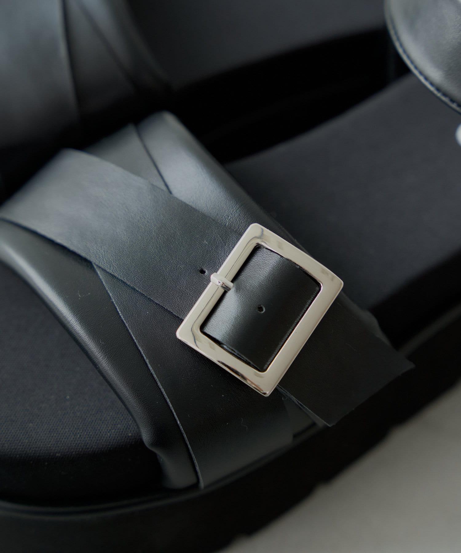 簡潔而結實的厚底交叉帶設計涼鞋。