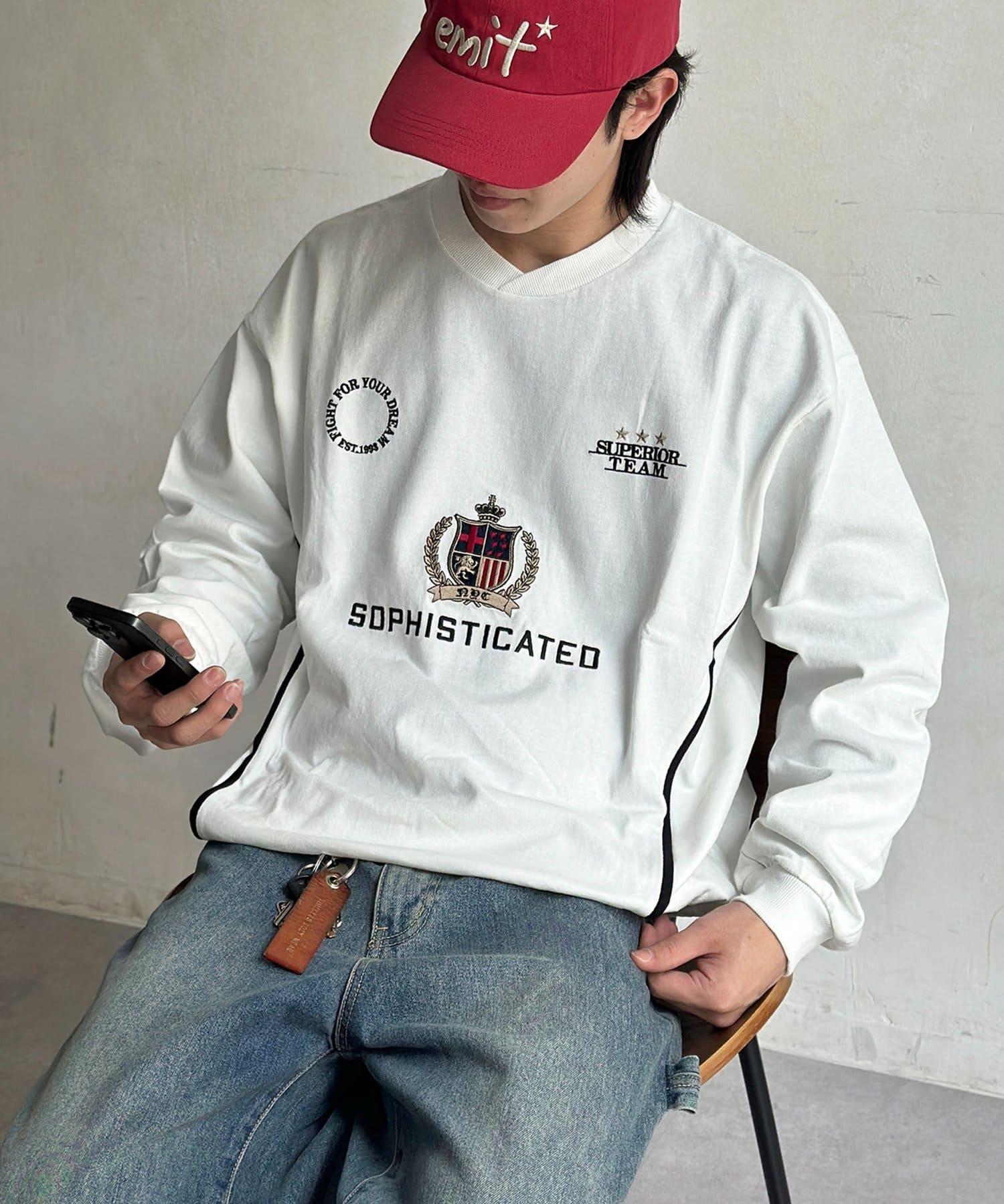 胸前和袖子上的學院風格刺繡以及兩側的線條更增添了協調感。