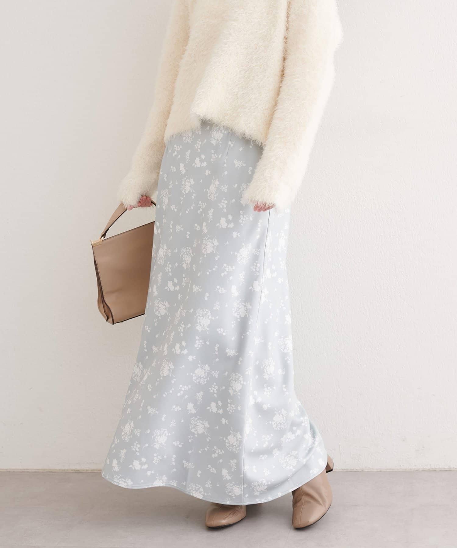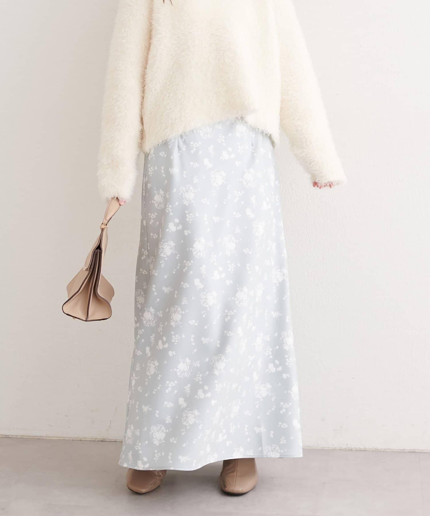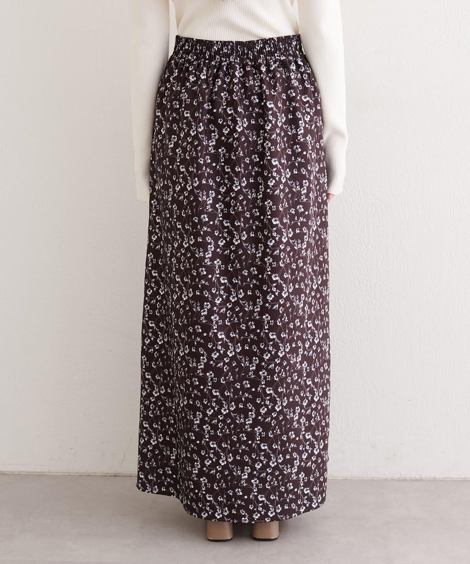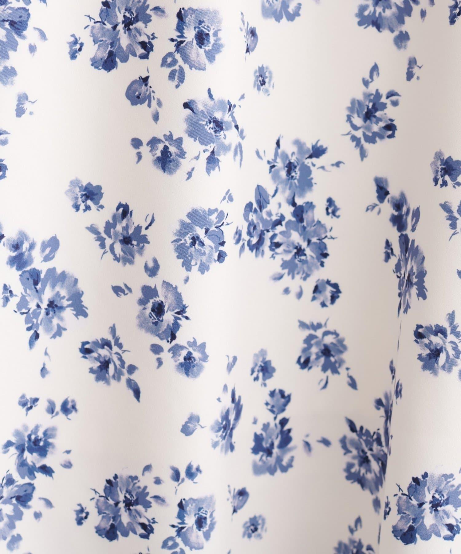 鋪滿整條裙子的花卉圖案散發著水彩畫般的柔和氣息。