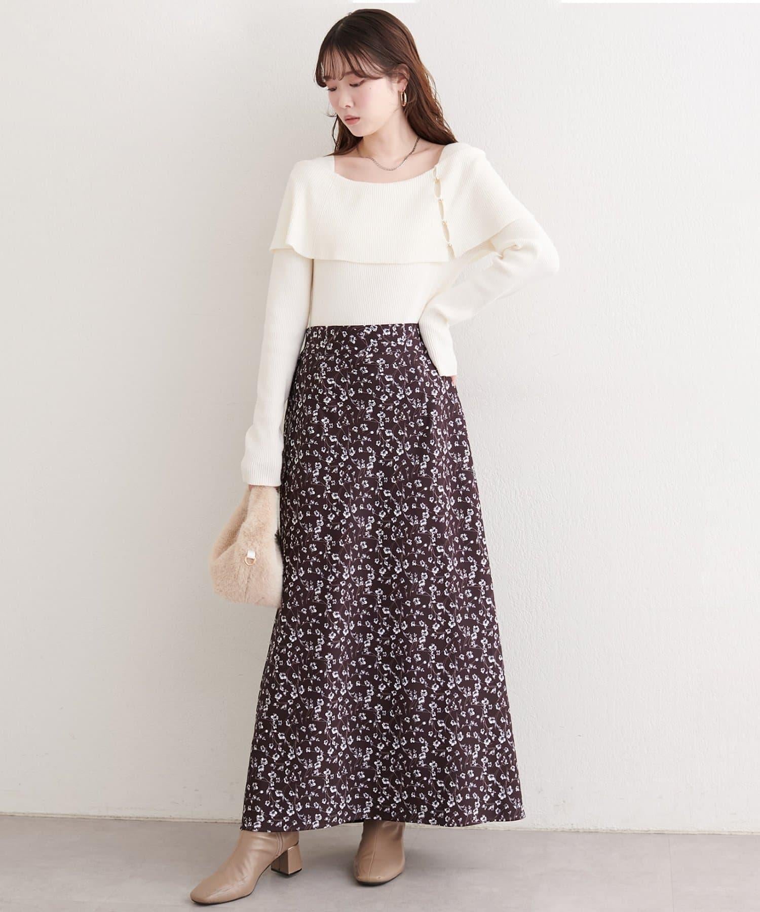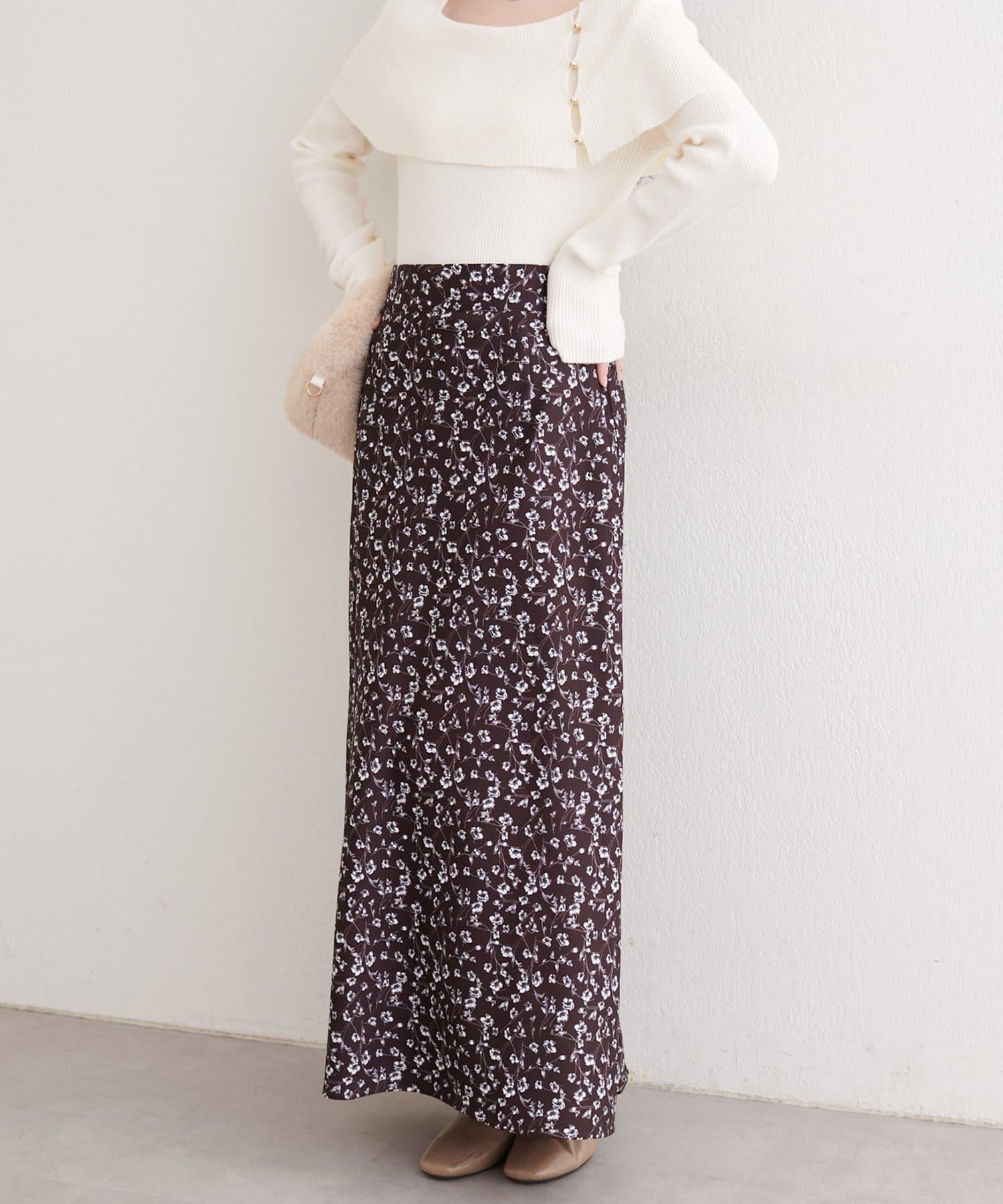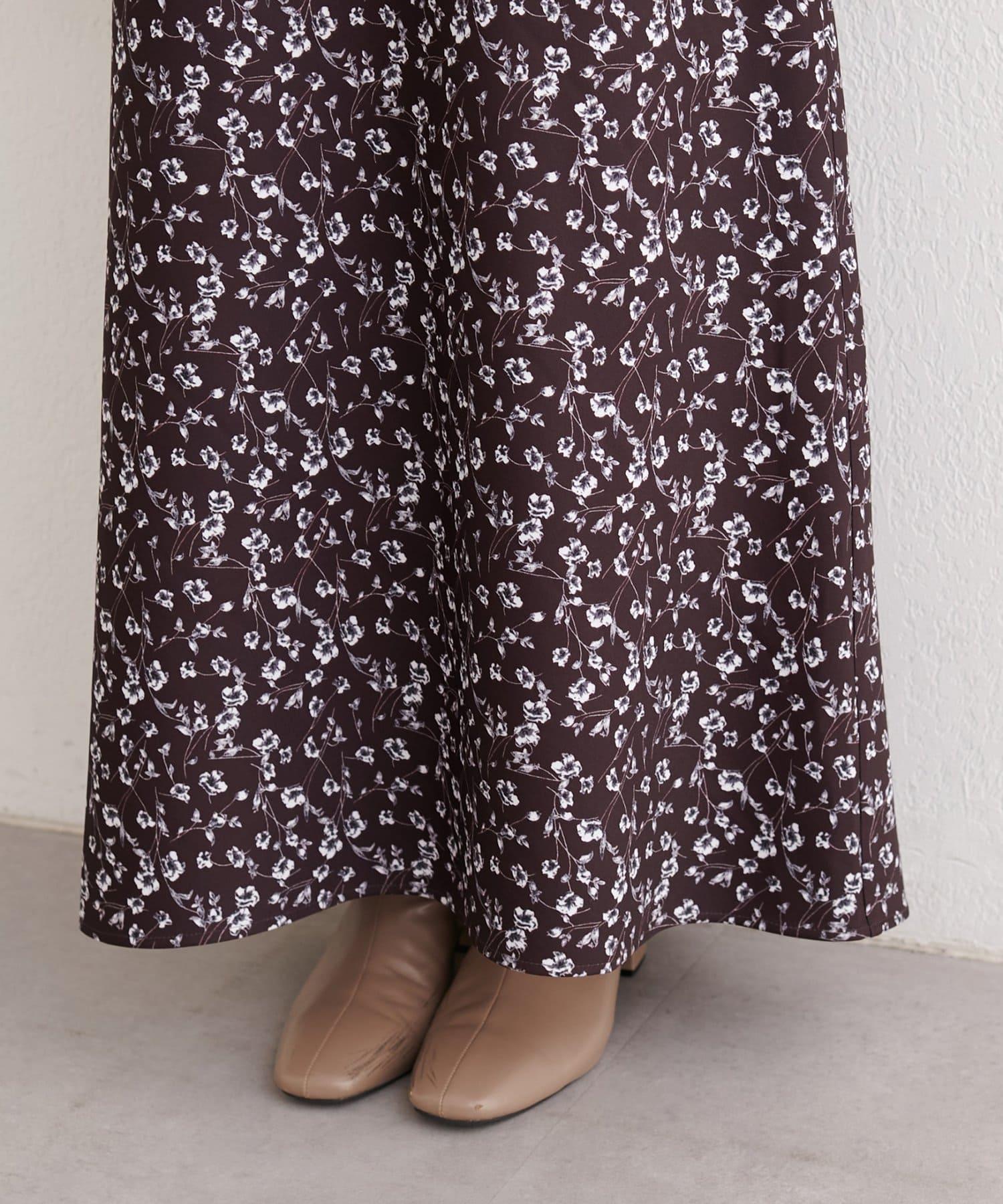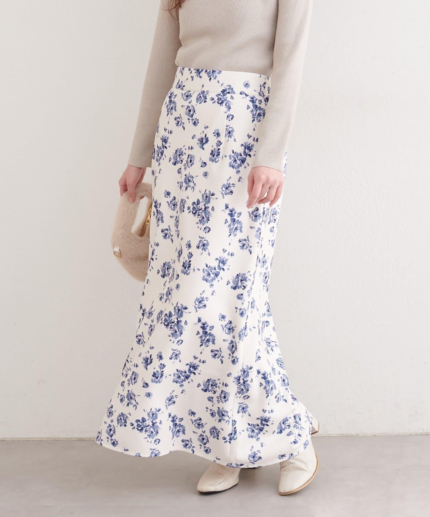 鋪滿整條裙子的花卉圖案散發著水彩畫般的柔和氣息。