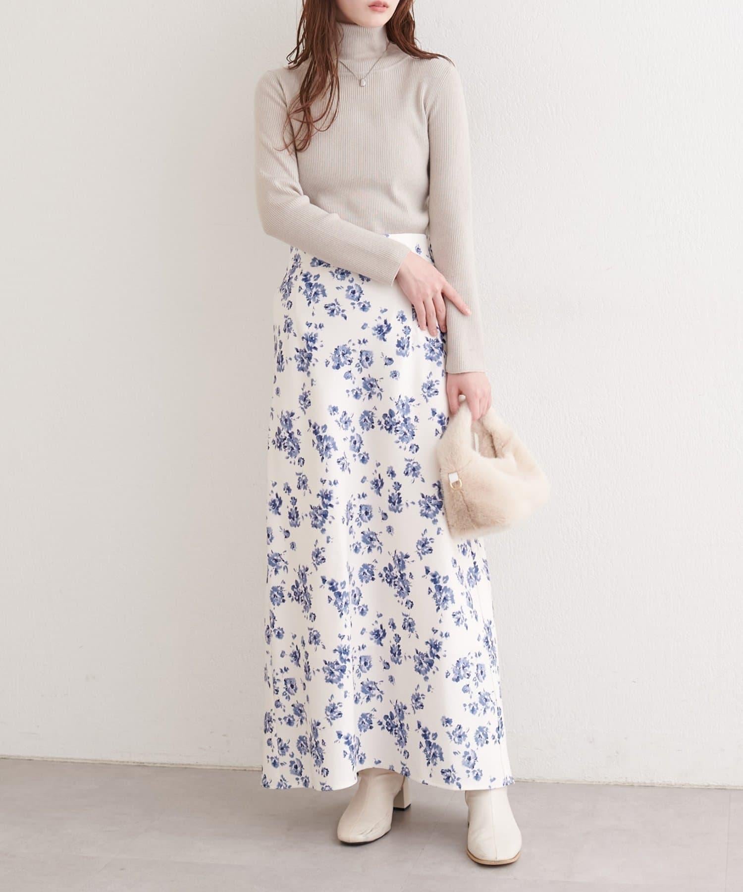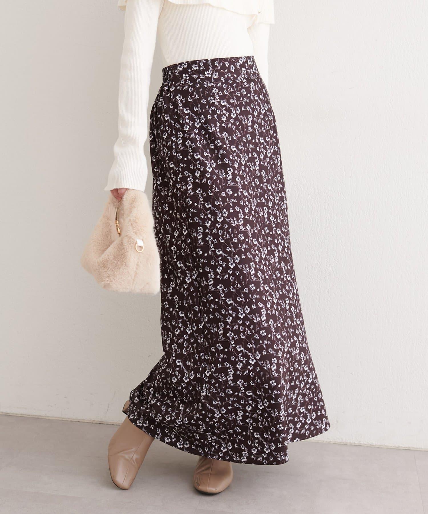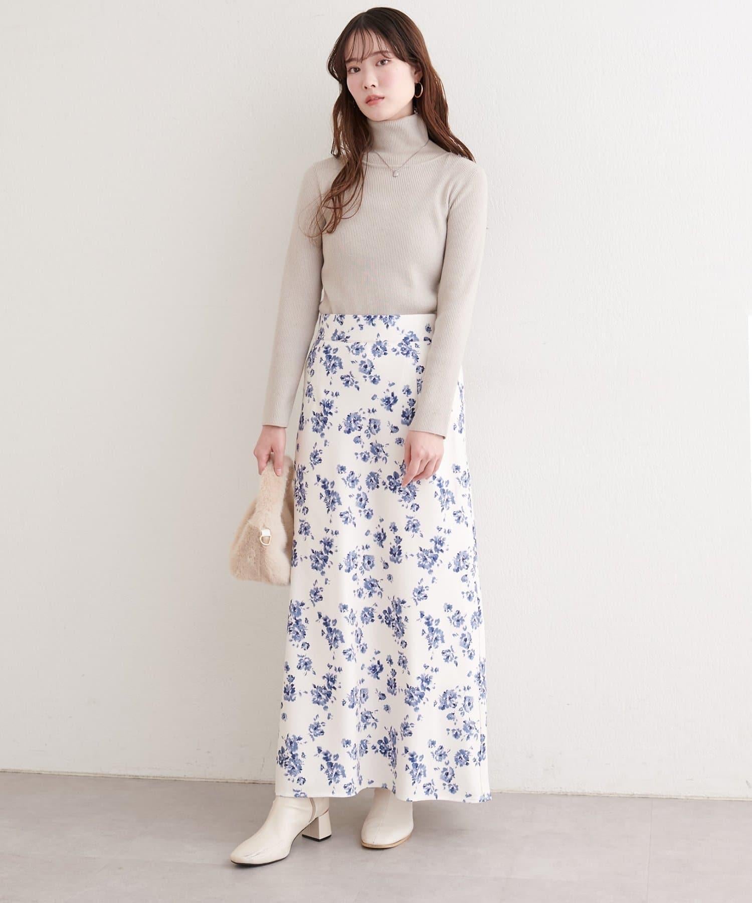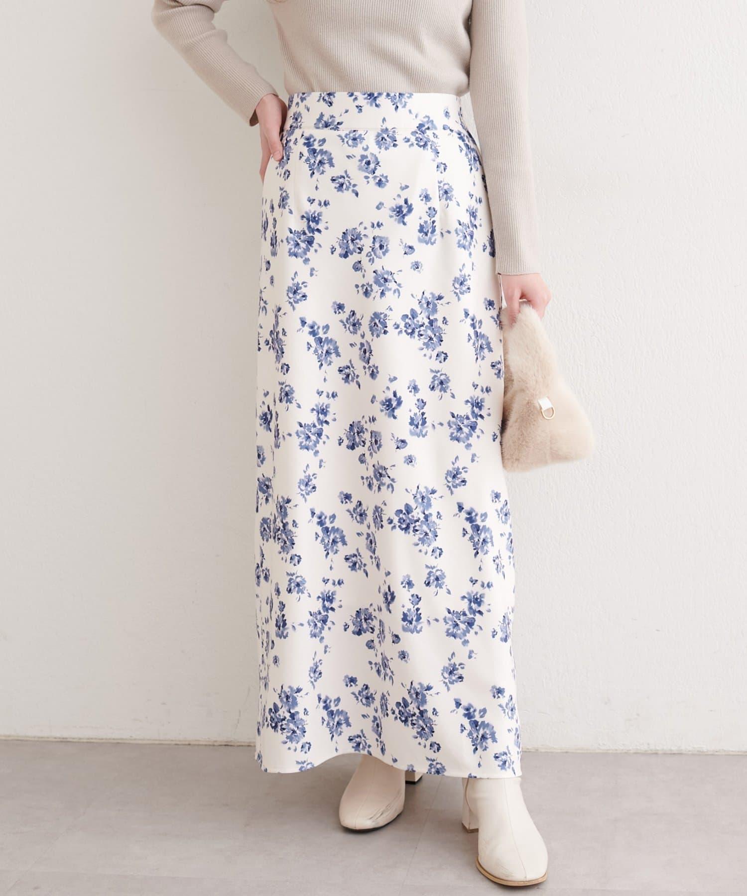 鋪滿整條裙子的花卉圖案散發著水彩畫般的柔和氣息。