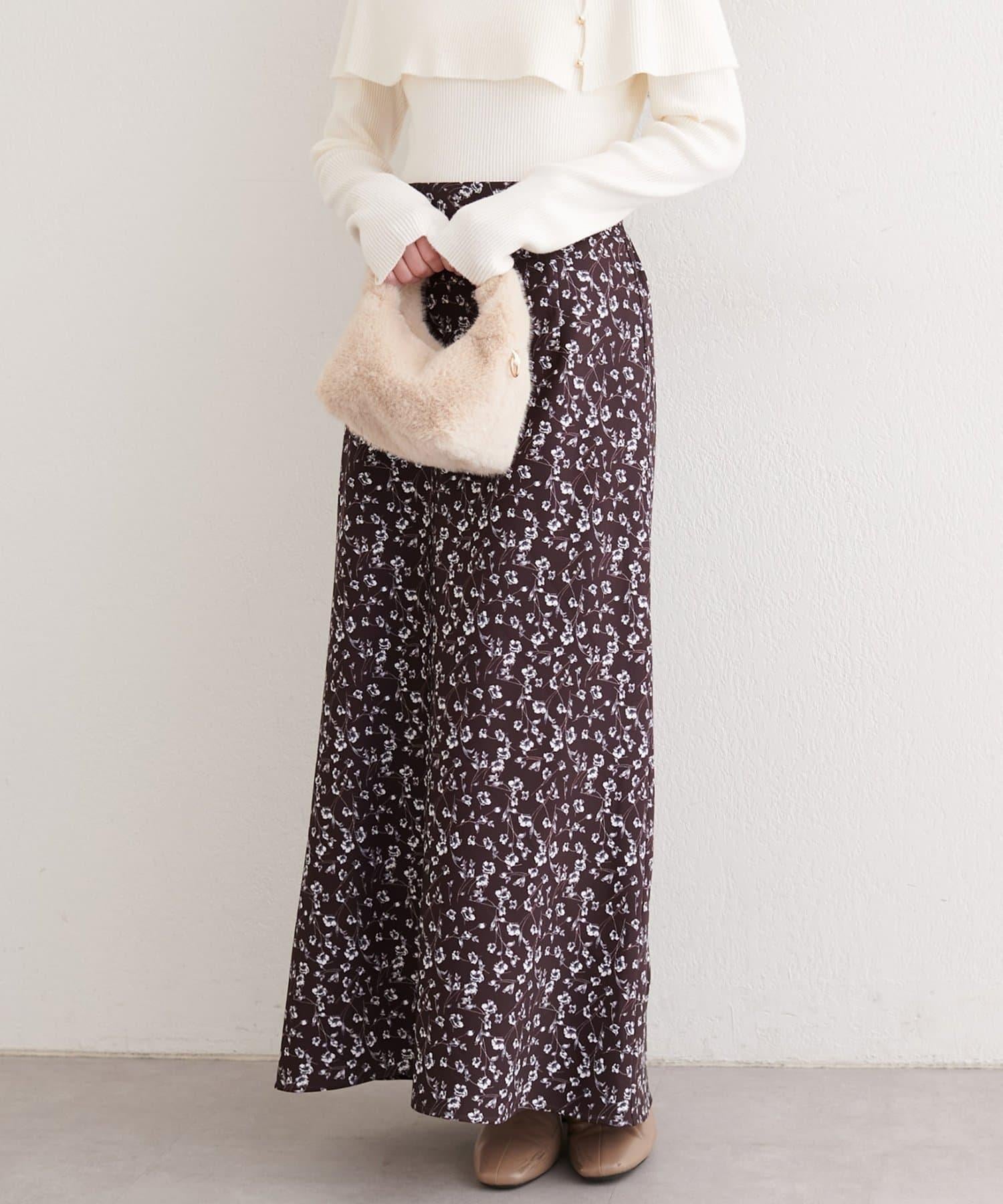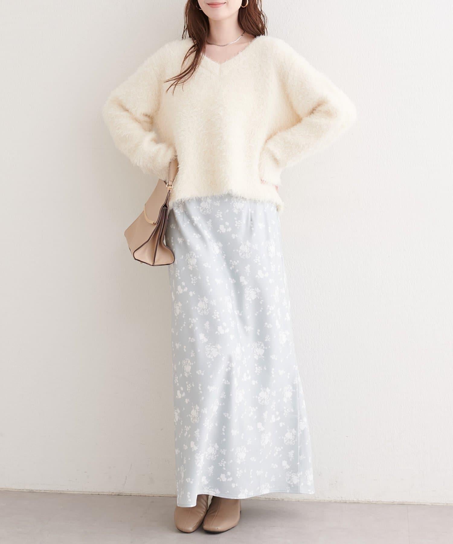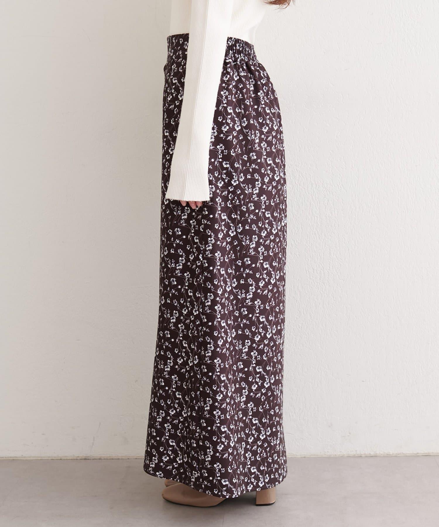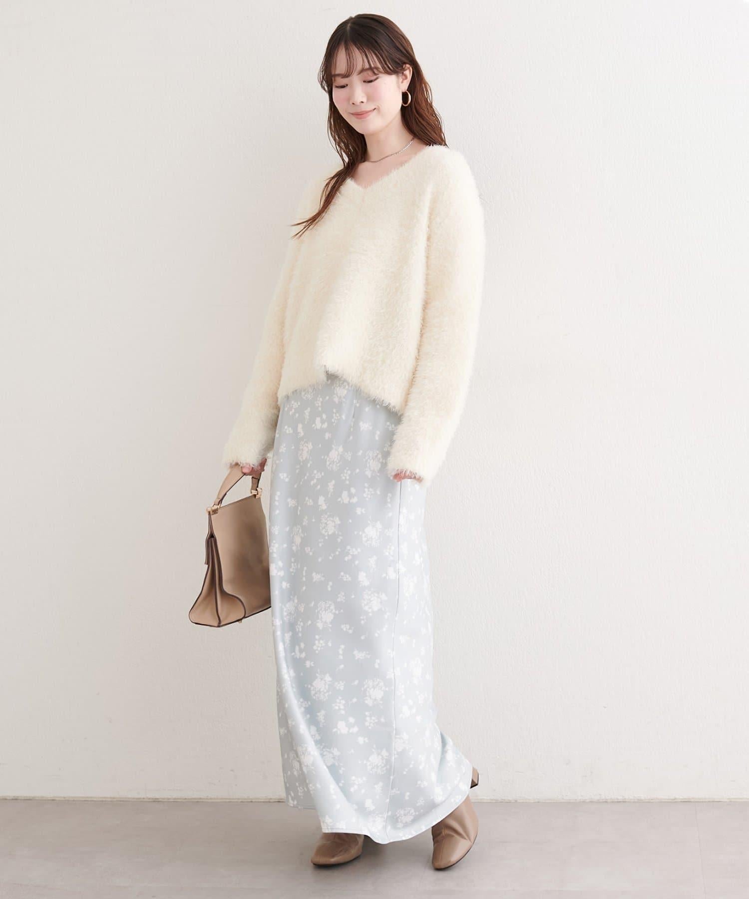 鋪滿整條裙子的花卉圖案散發著水彩畫般的柔和氣息。