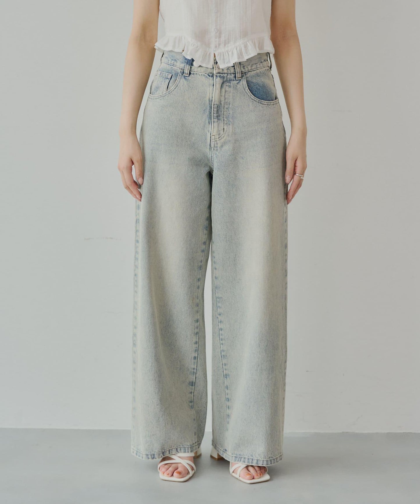 寬鬆牛仔褲,後口袋有精緻花邊!