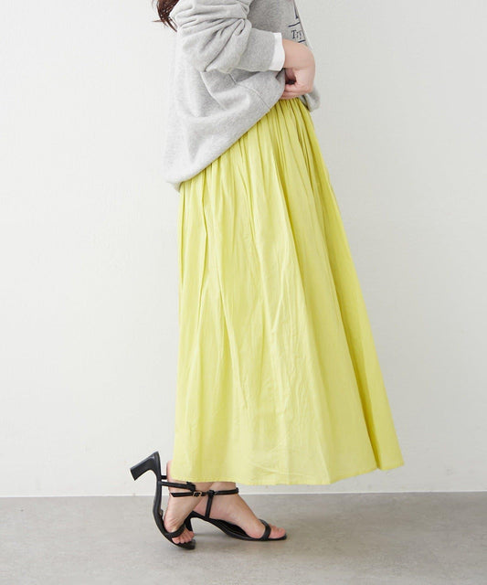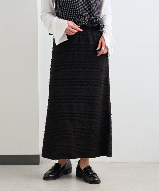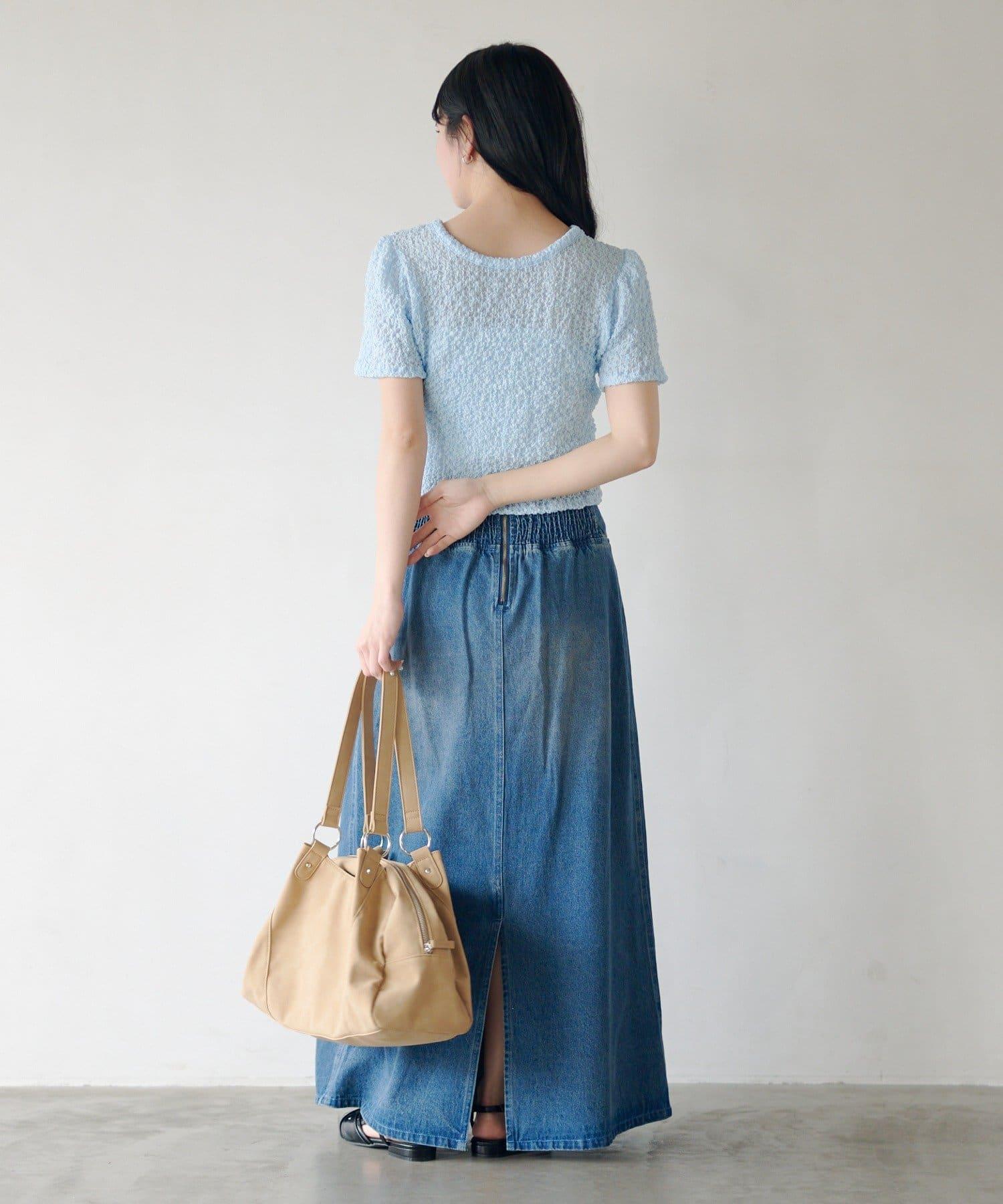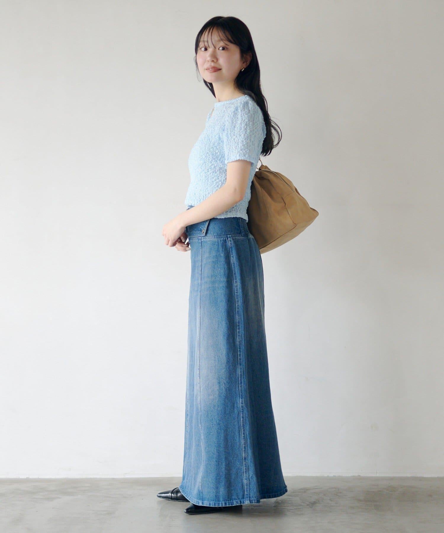 這款長裙採用厚度適中的牛仔布料製成,採用褶皺設計。