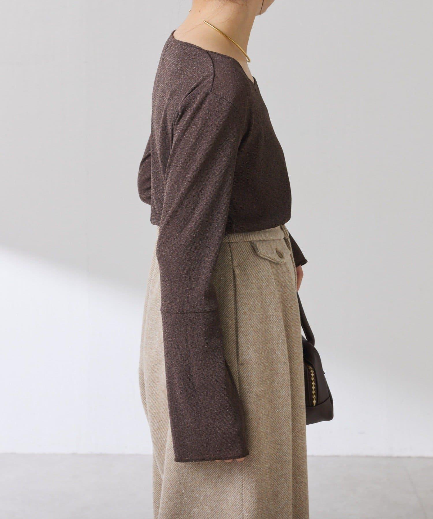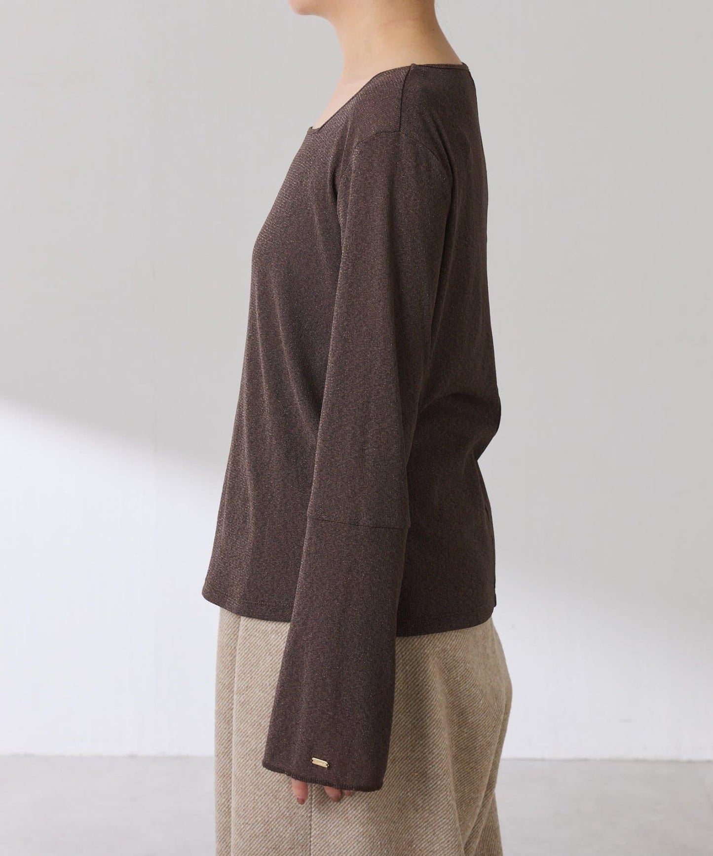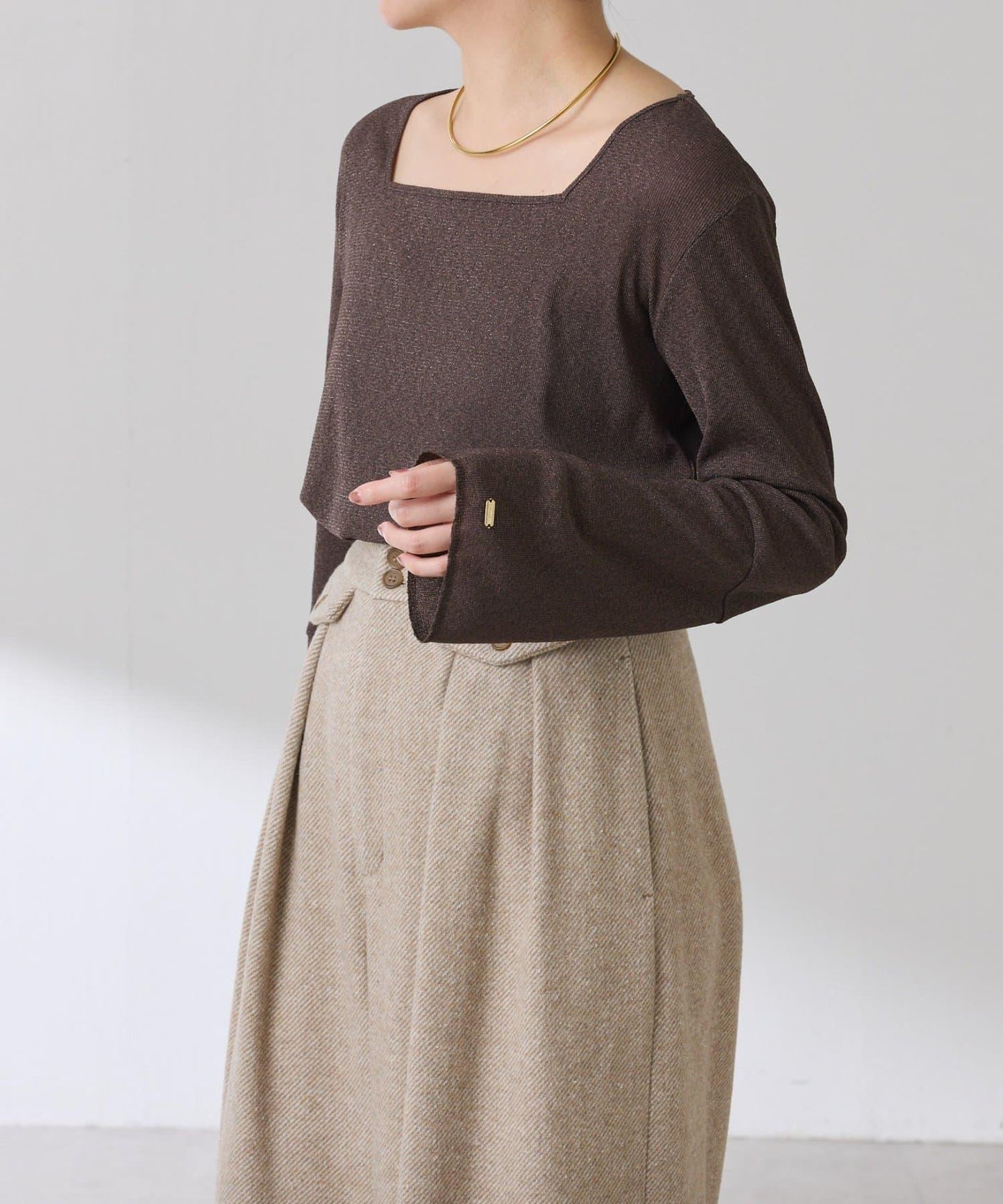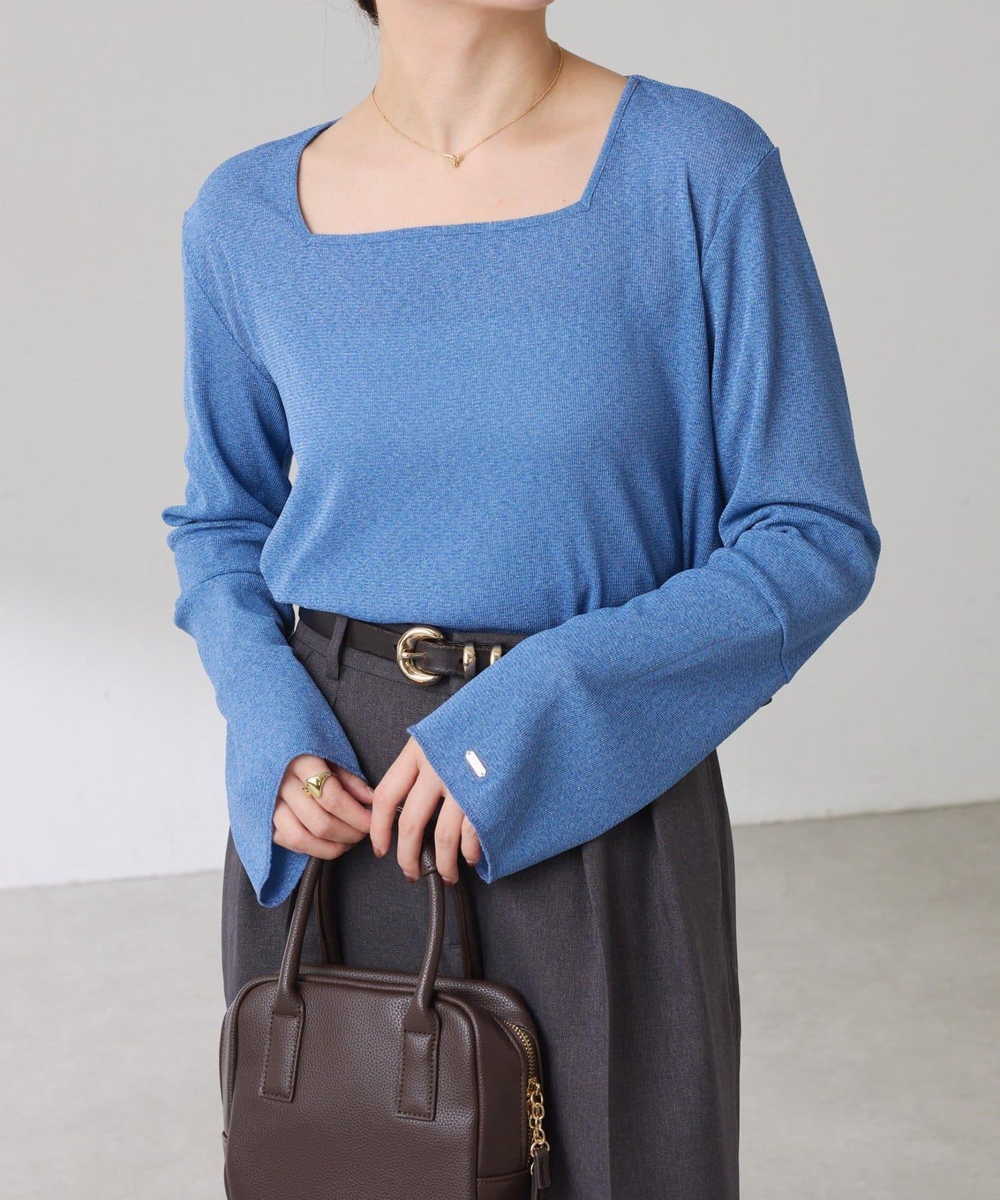 袖子採用長喇叭袖設計,與針織衫疊穿時可從袖口露出。