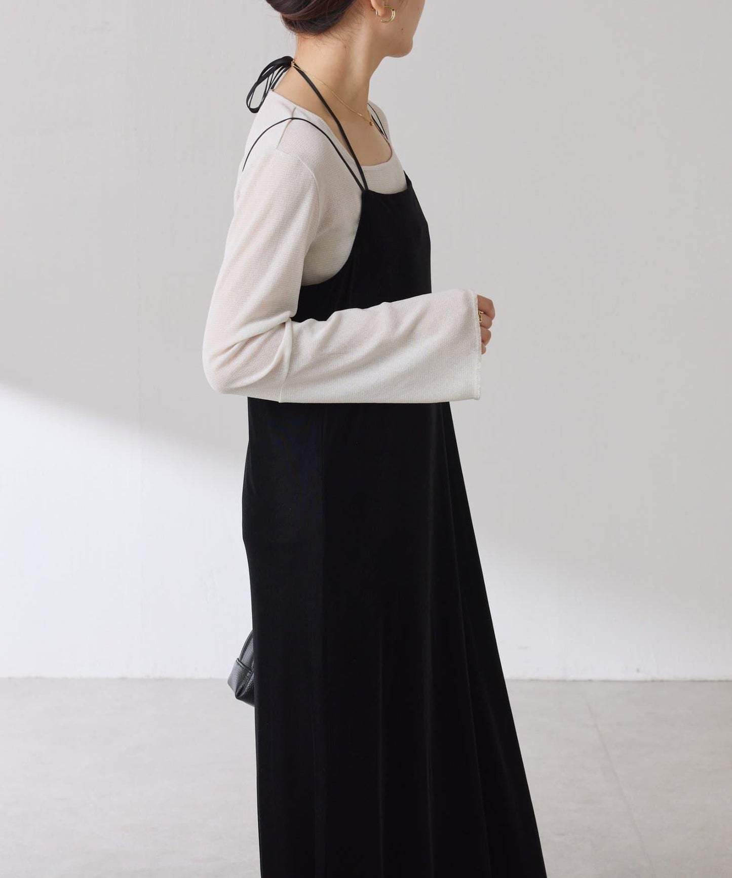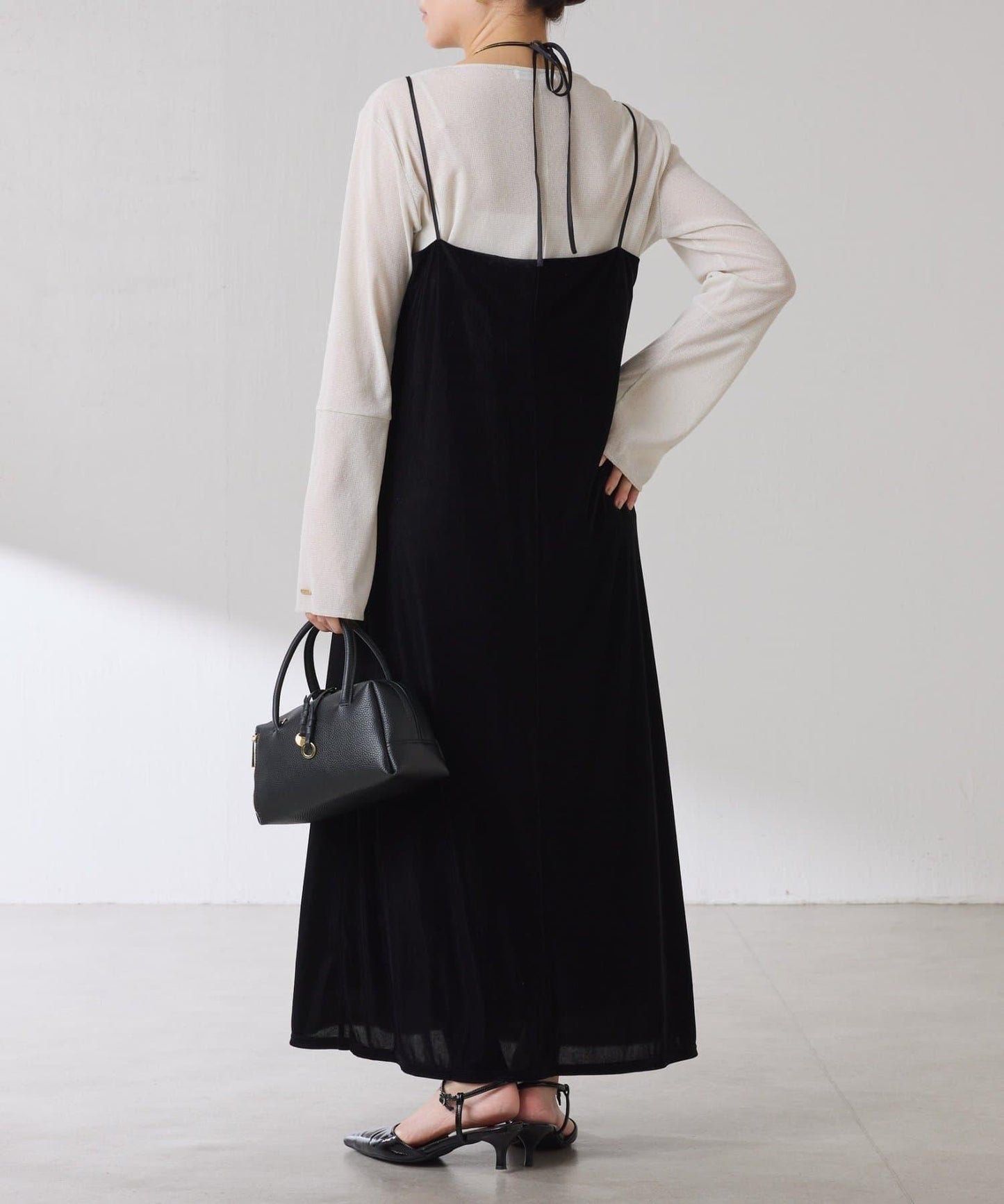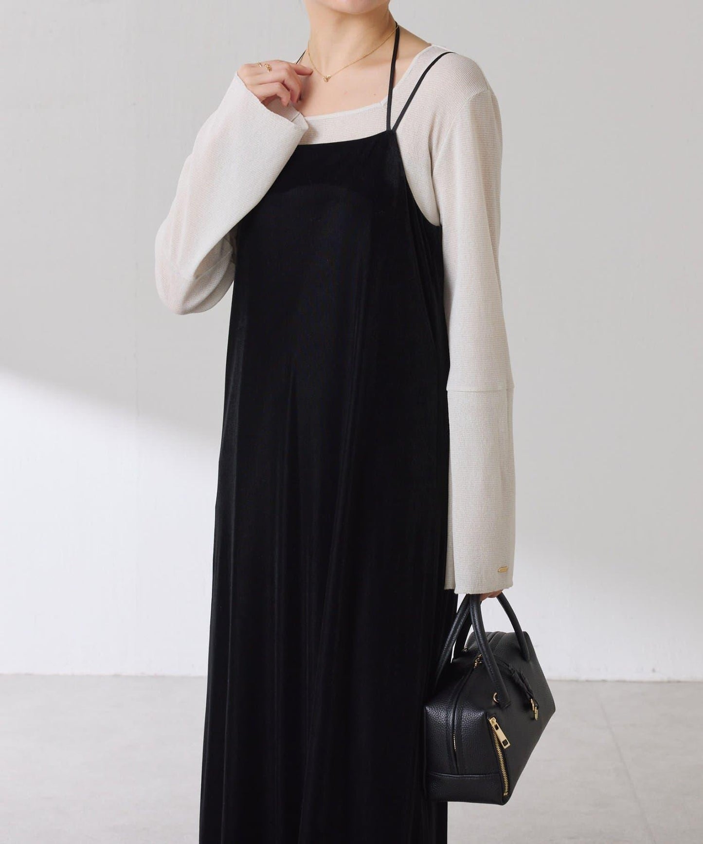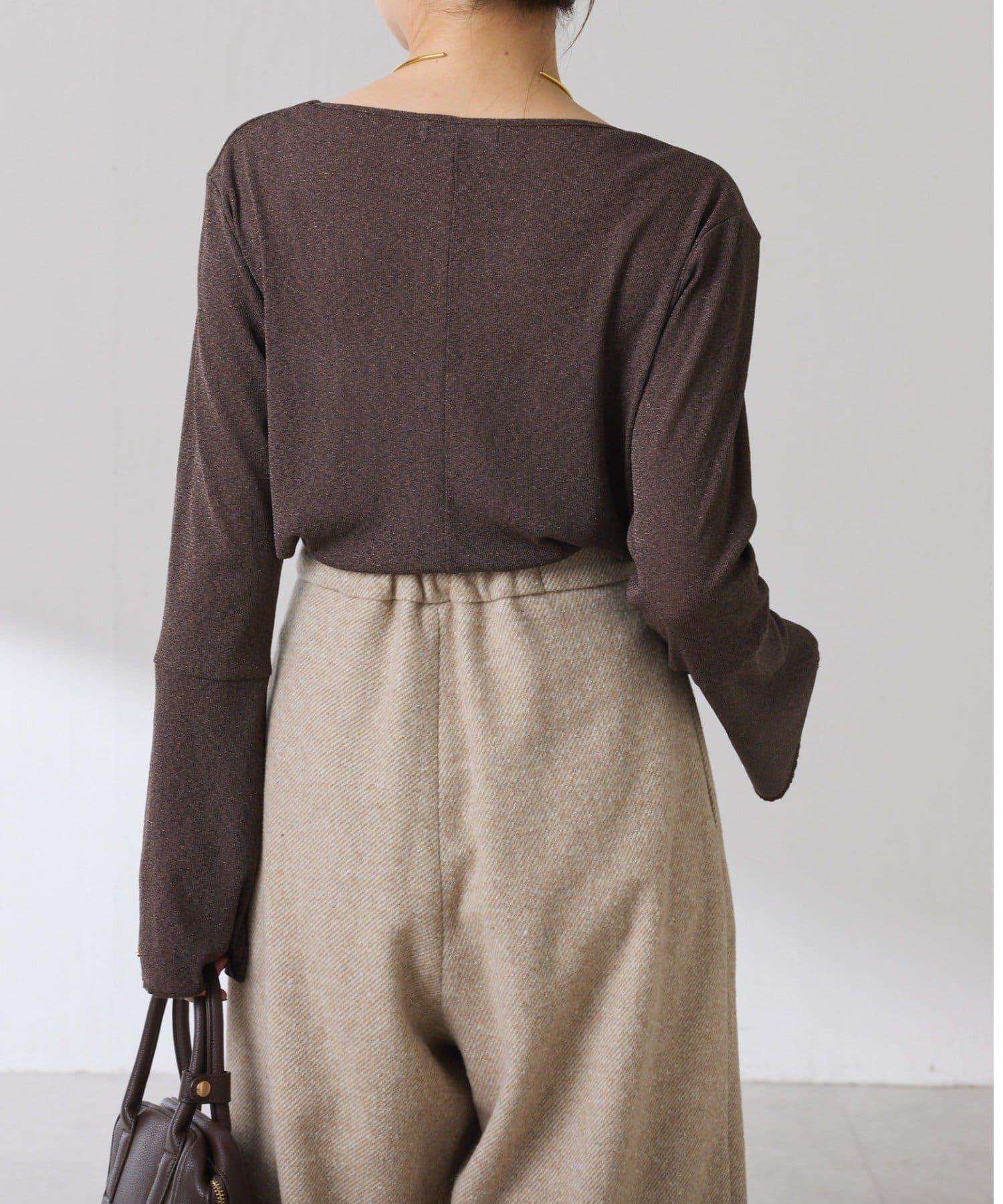 袖子採用長喇叭袖設計,與針織衫疊穿時可從袖口露出。