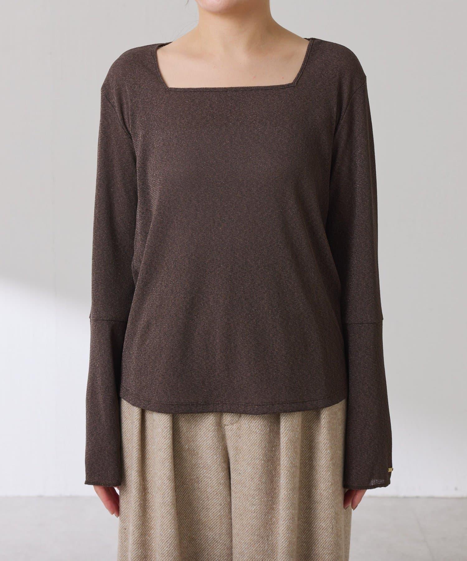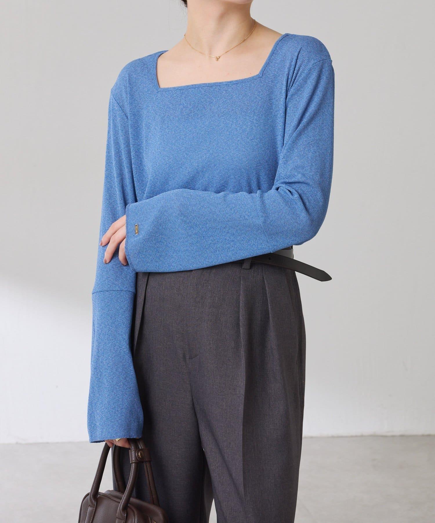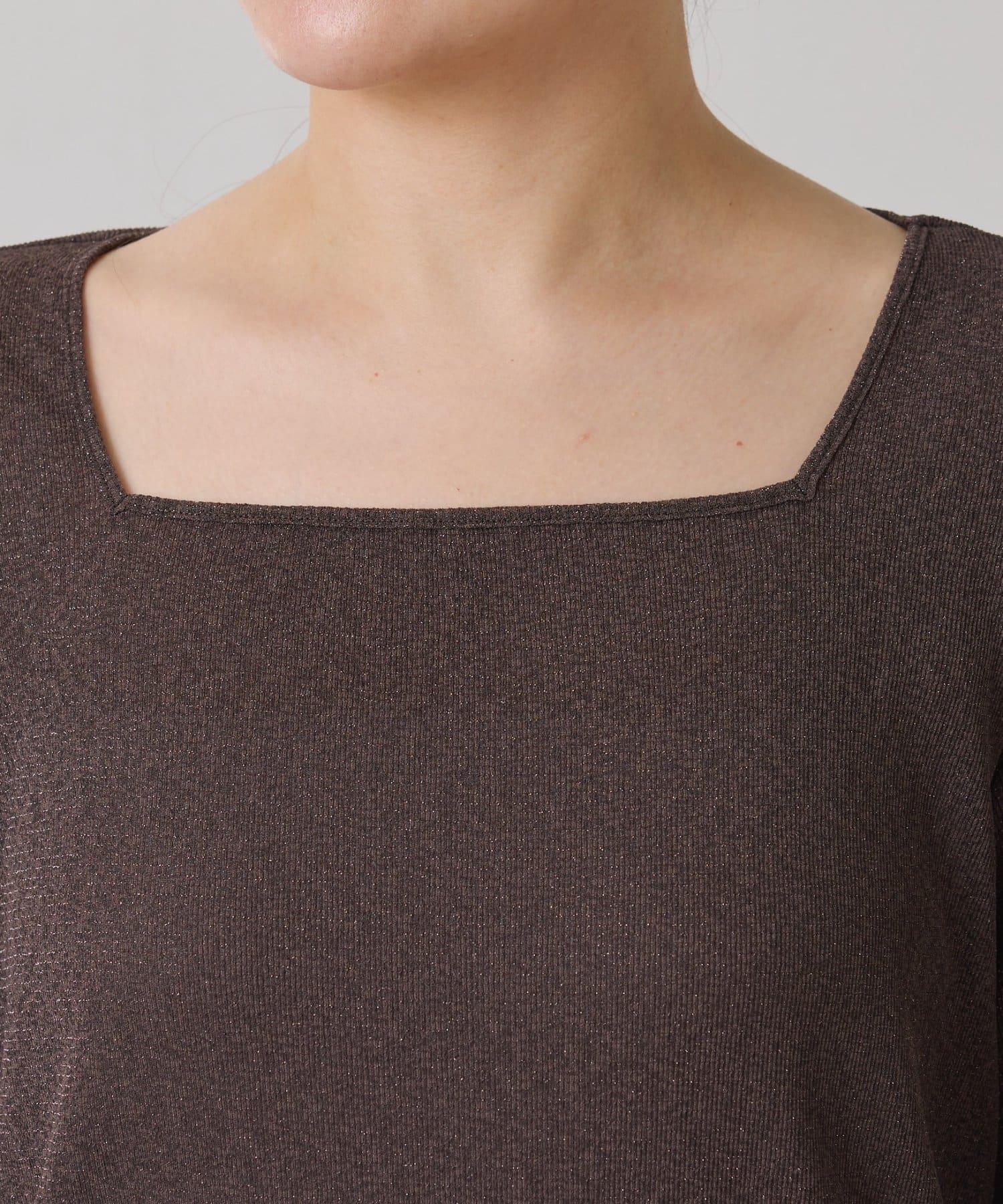 【可作內搭】透視亮絲羅紋方領上衣