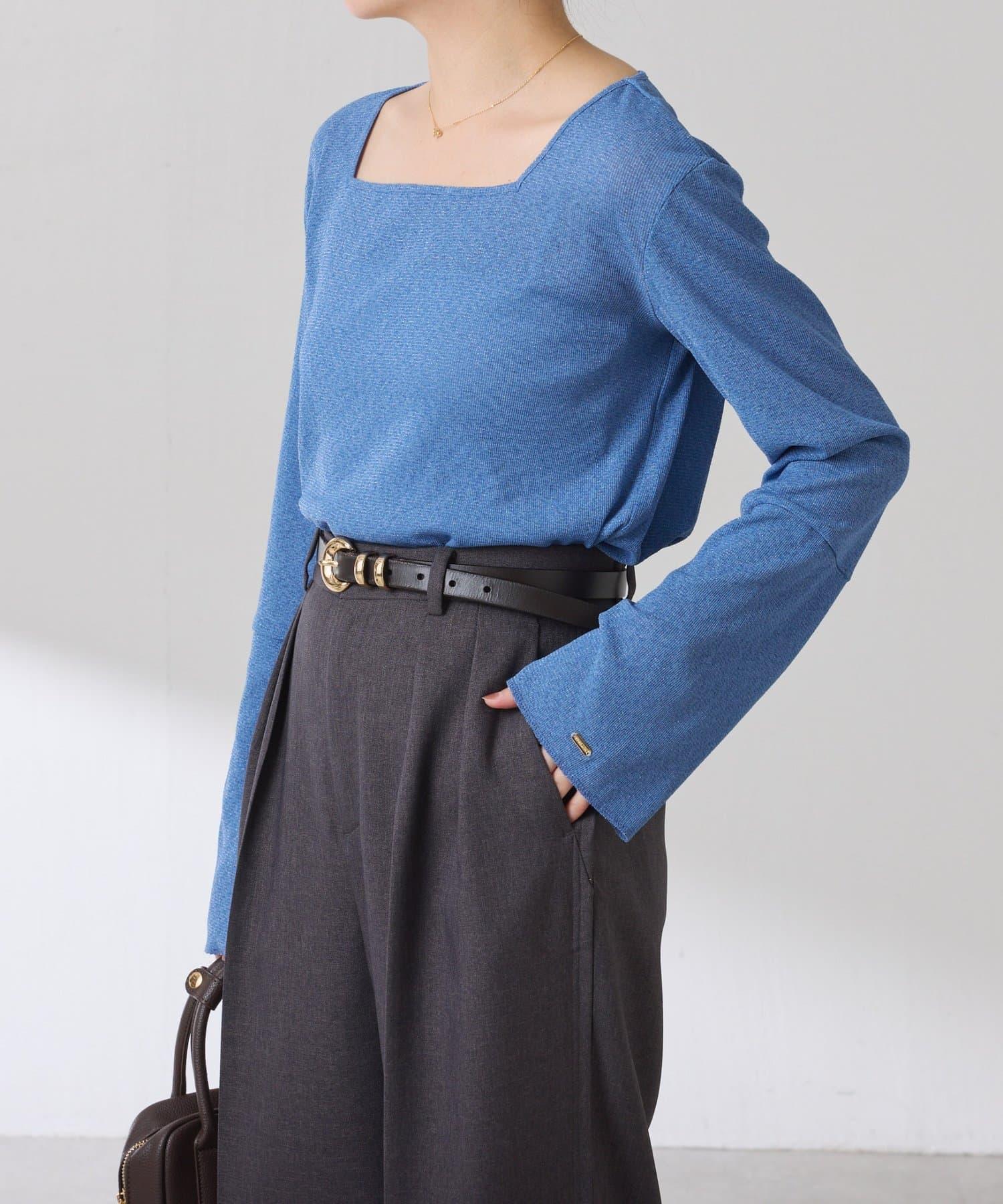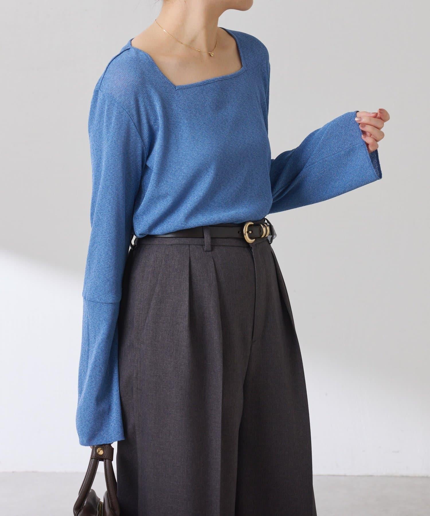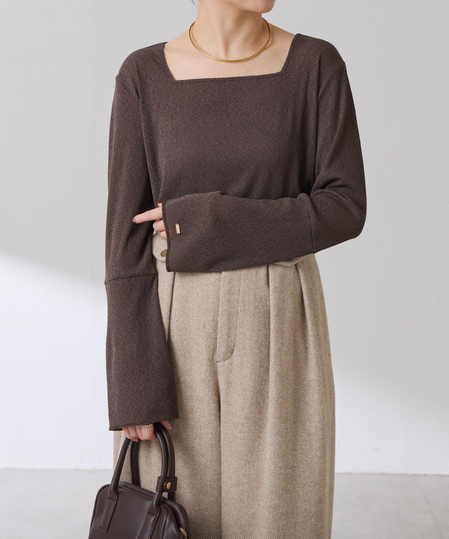 【可作內搭】透視亮絲羅紋方領上衣