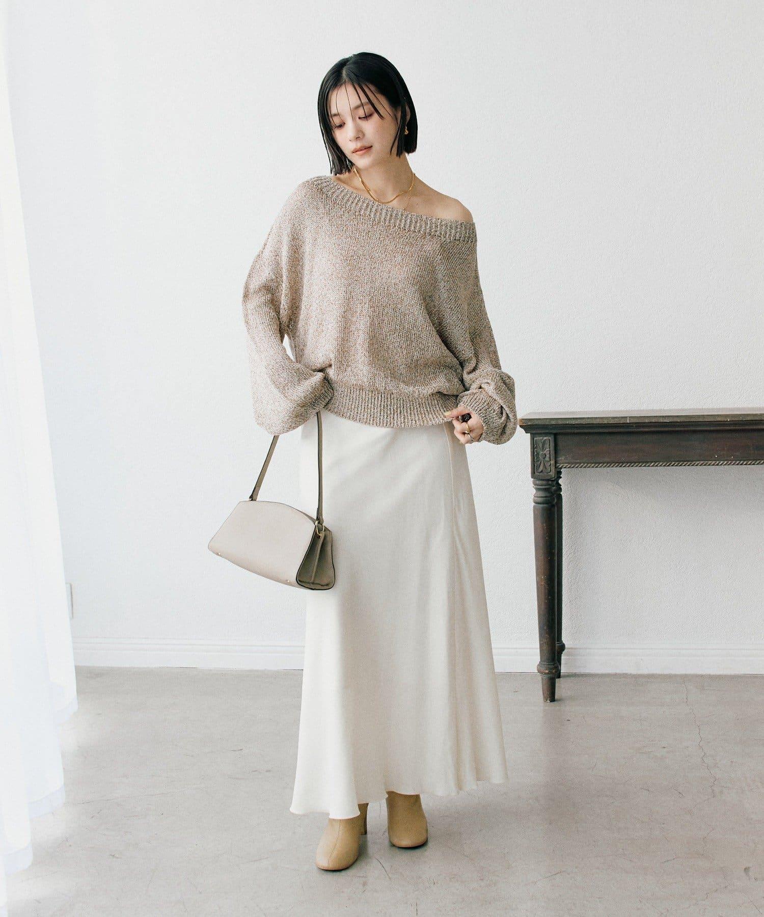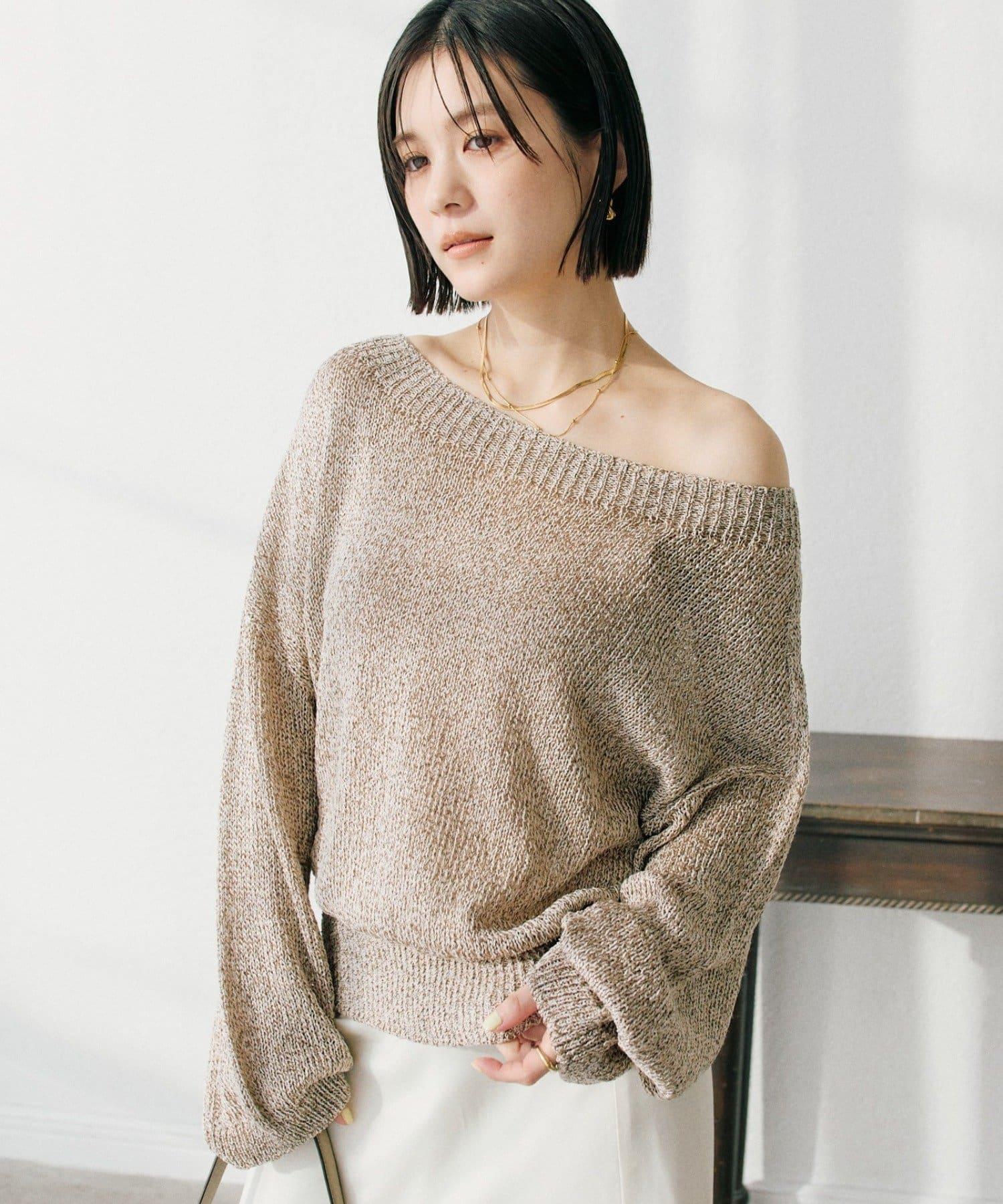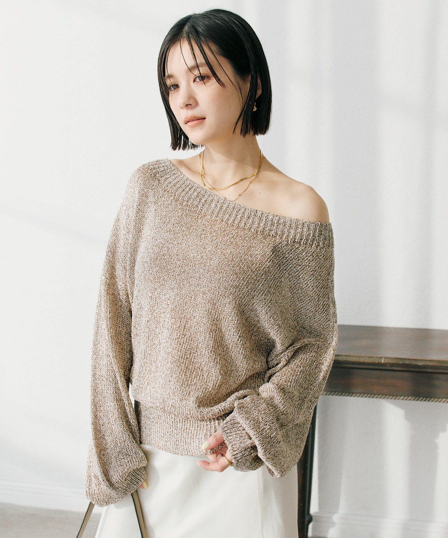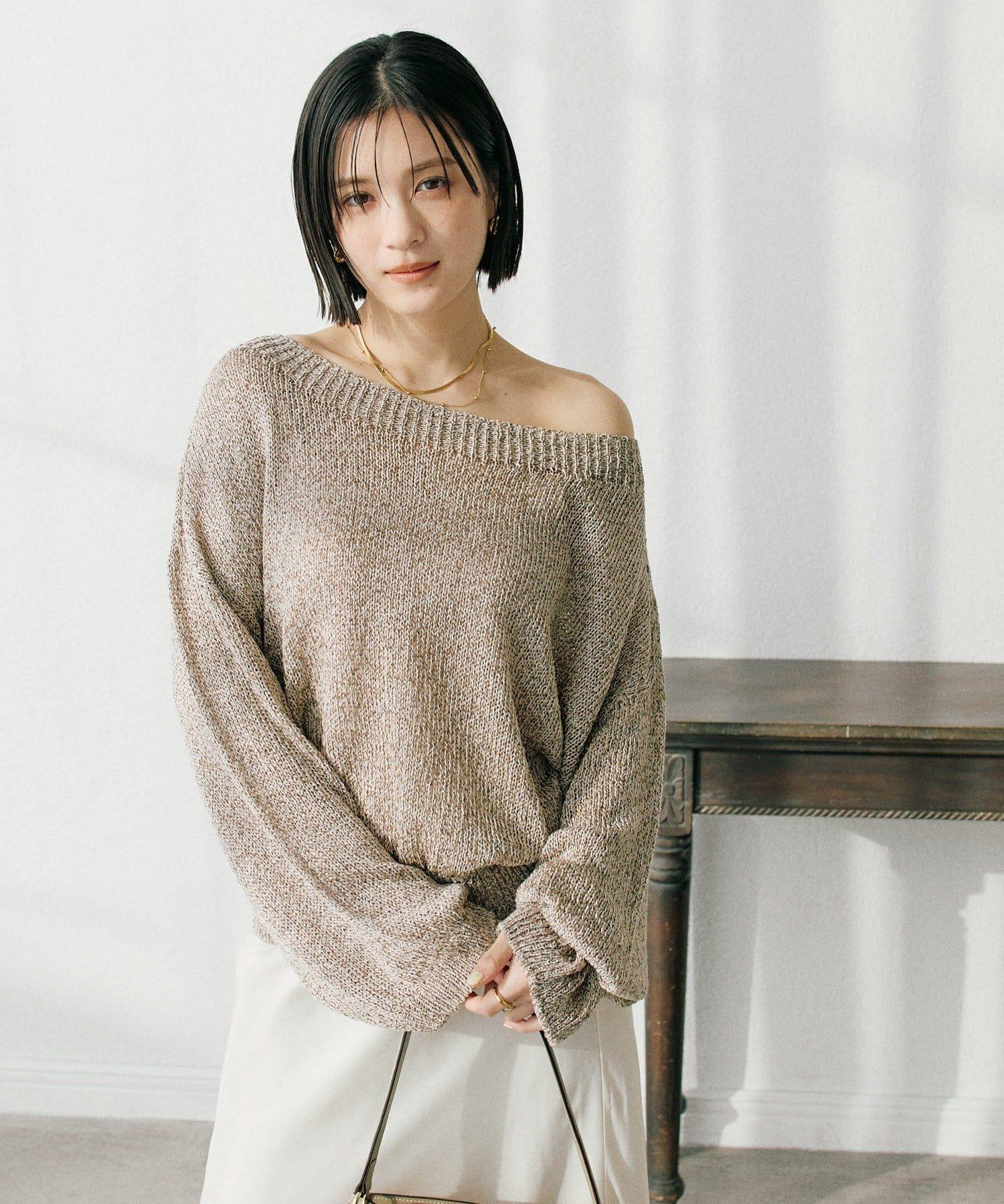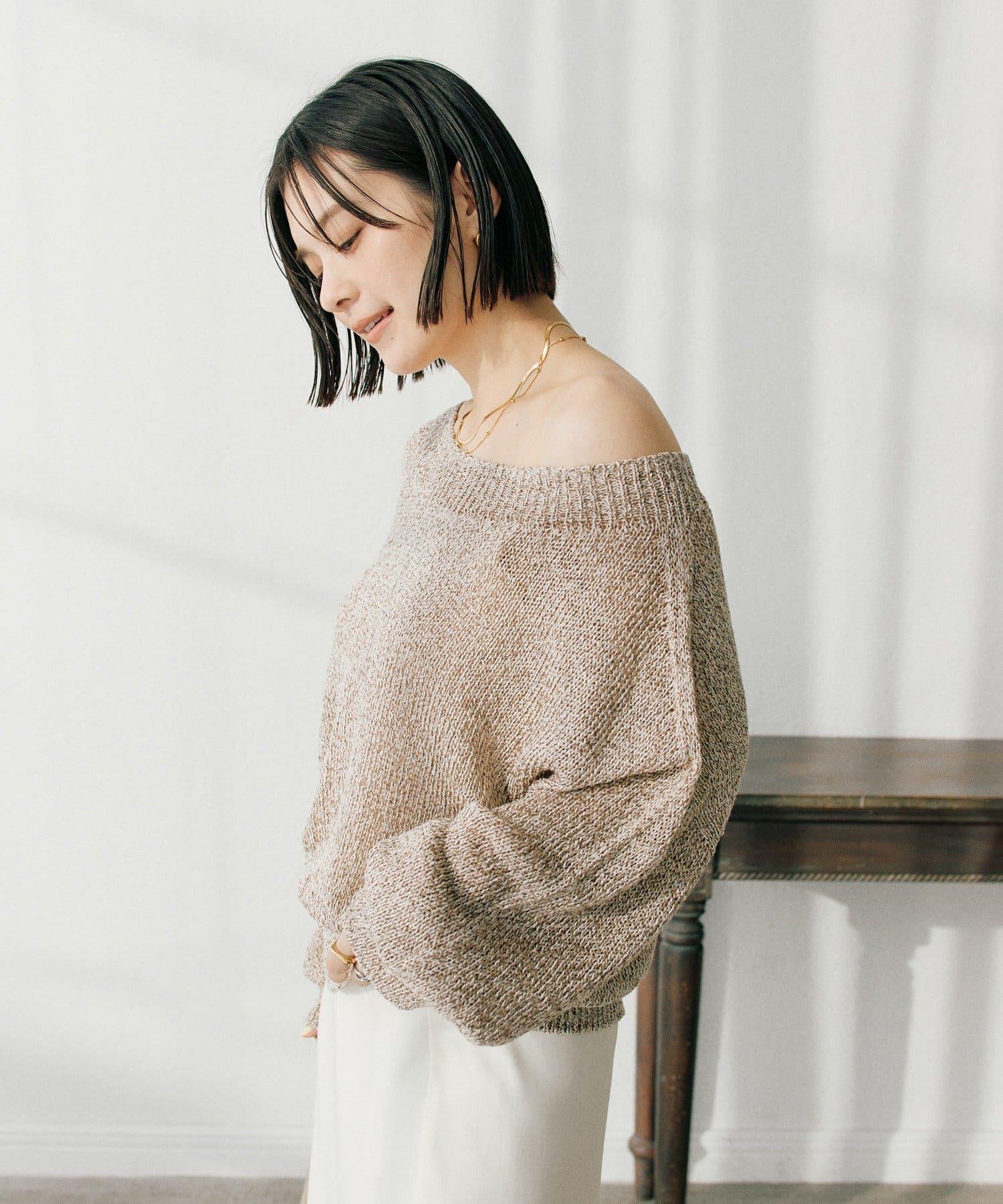 【可單肩或一字肩穿著!】混紡紙紗針織衫