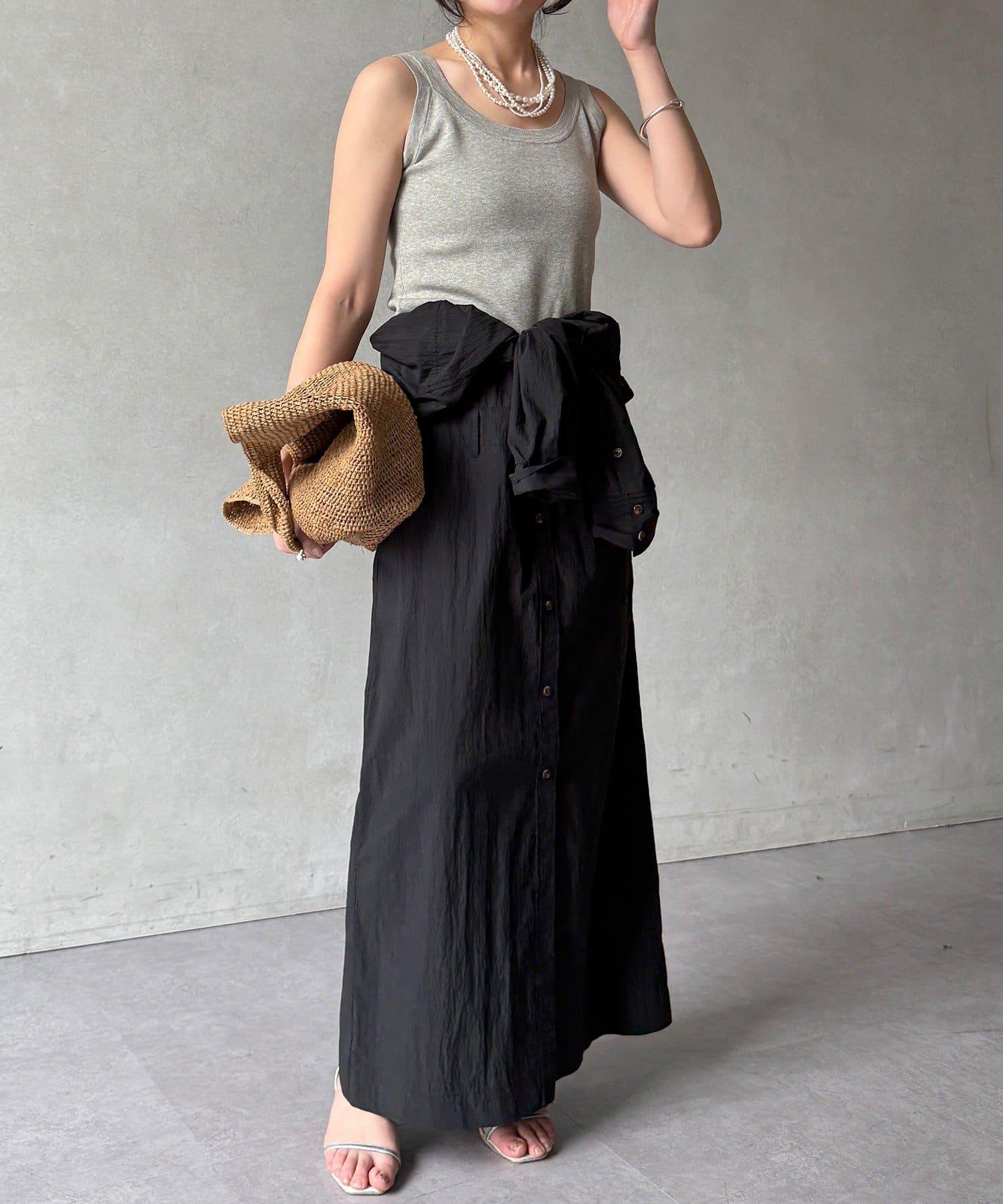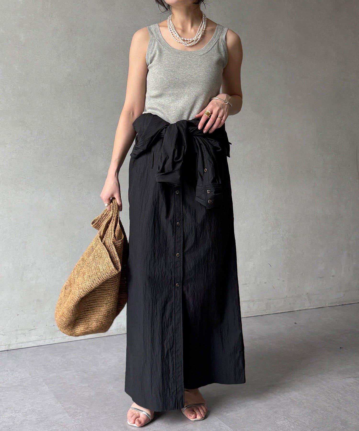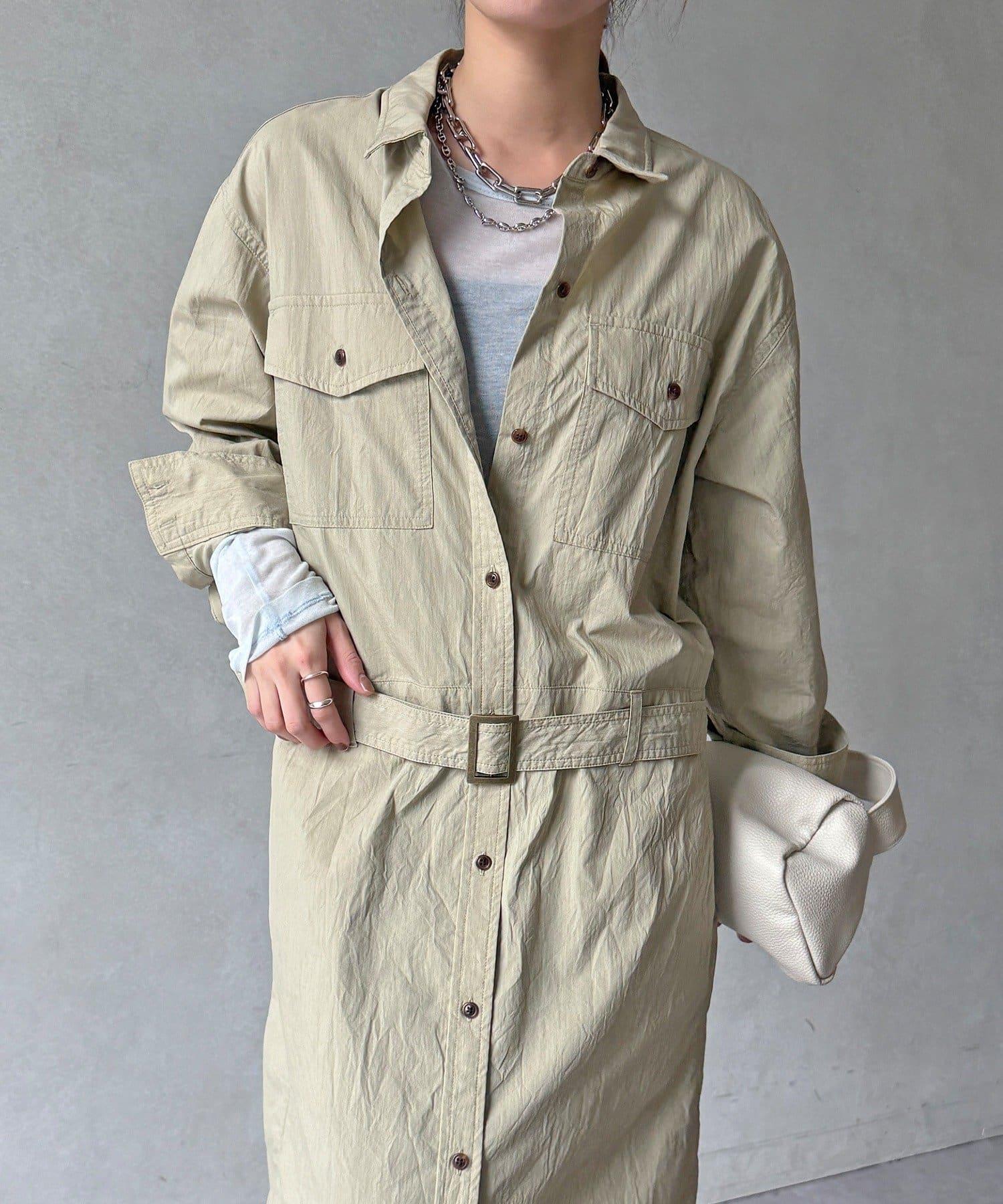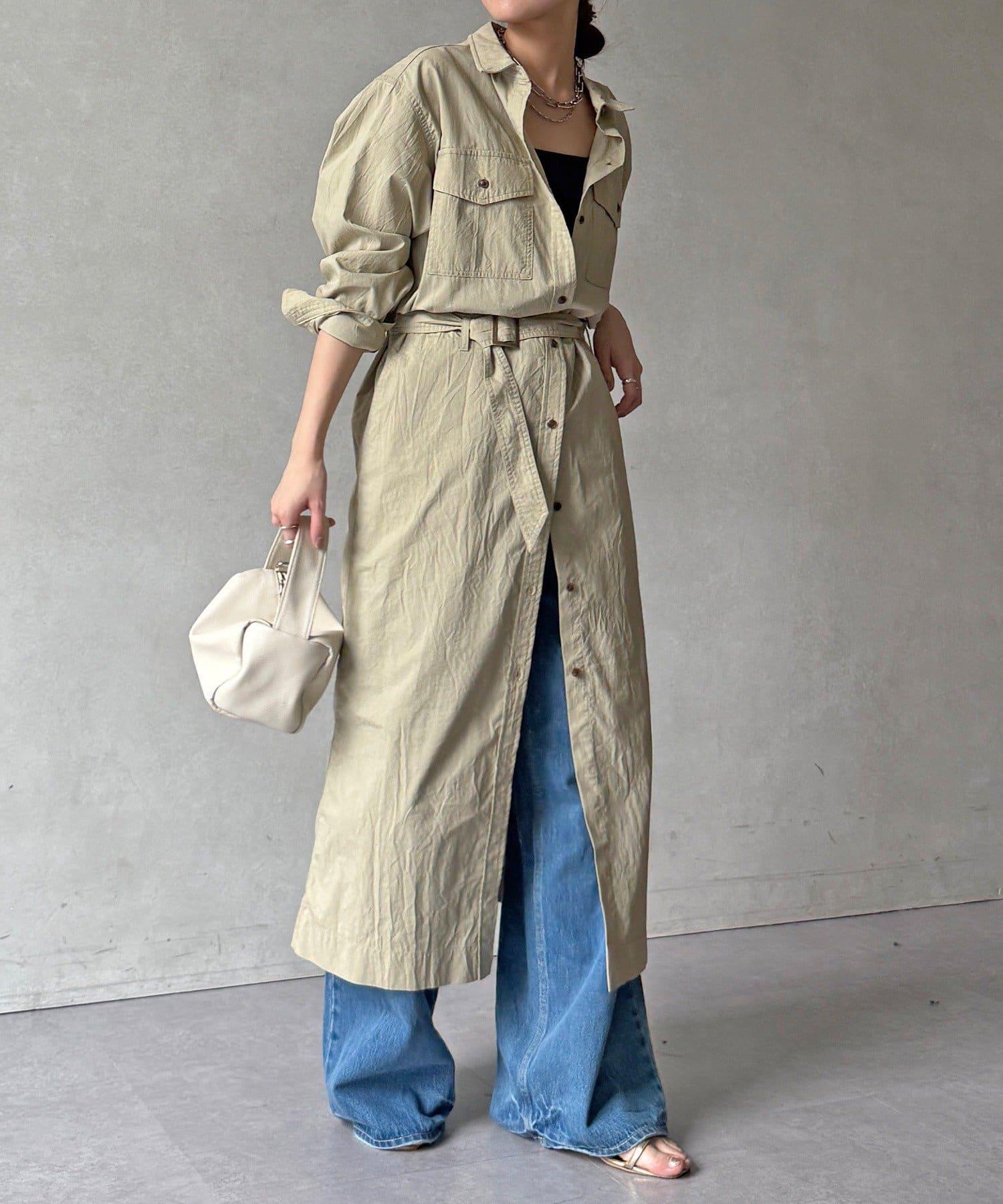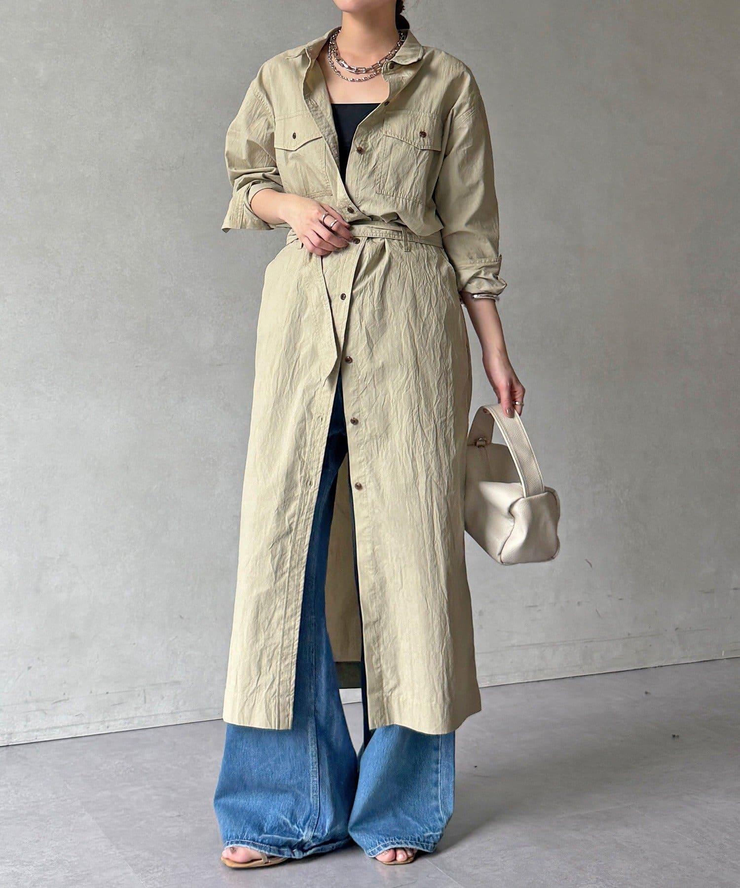 如果用附帶的腰帶在腰部做個標記,就能增加利落的輪廓感