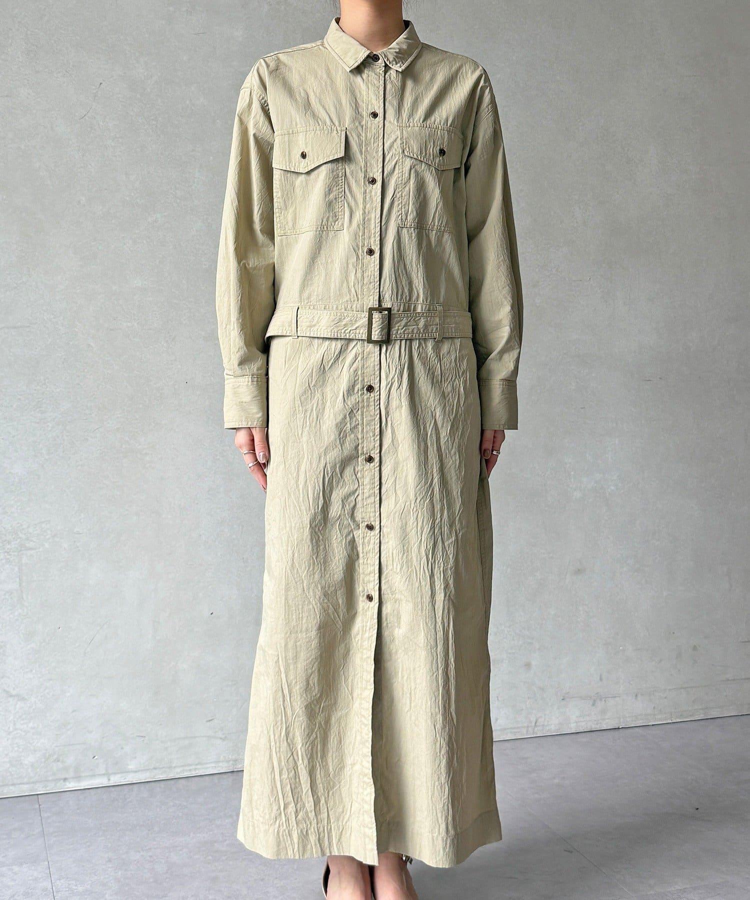 可定型領長款襯衫式連衣裙