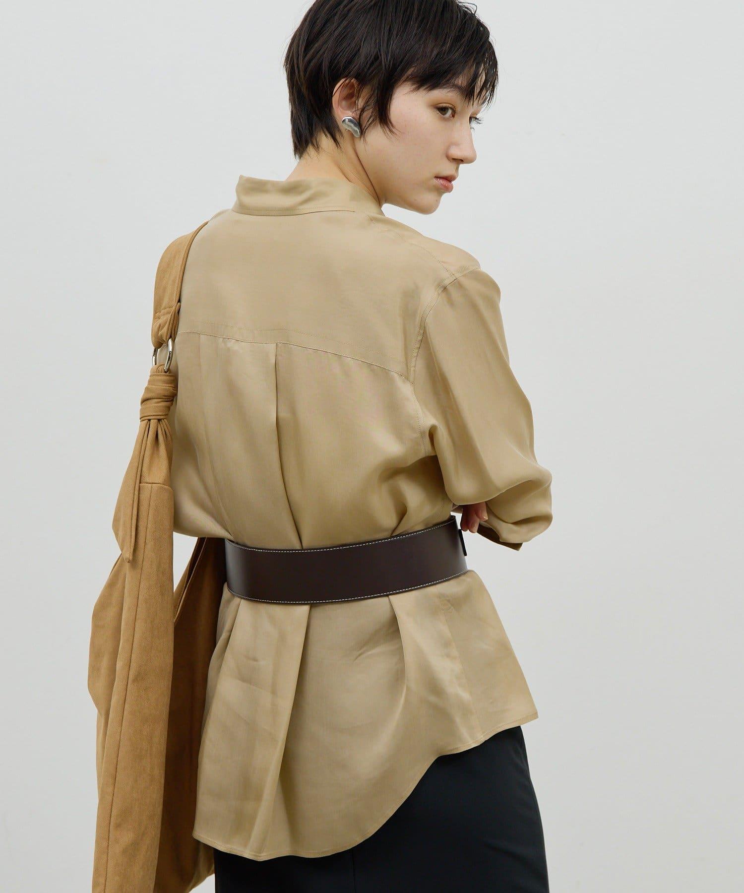 這款上衣採用光滑略帶光澤的面料,具有垂墜感,給人以都市印象。